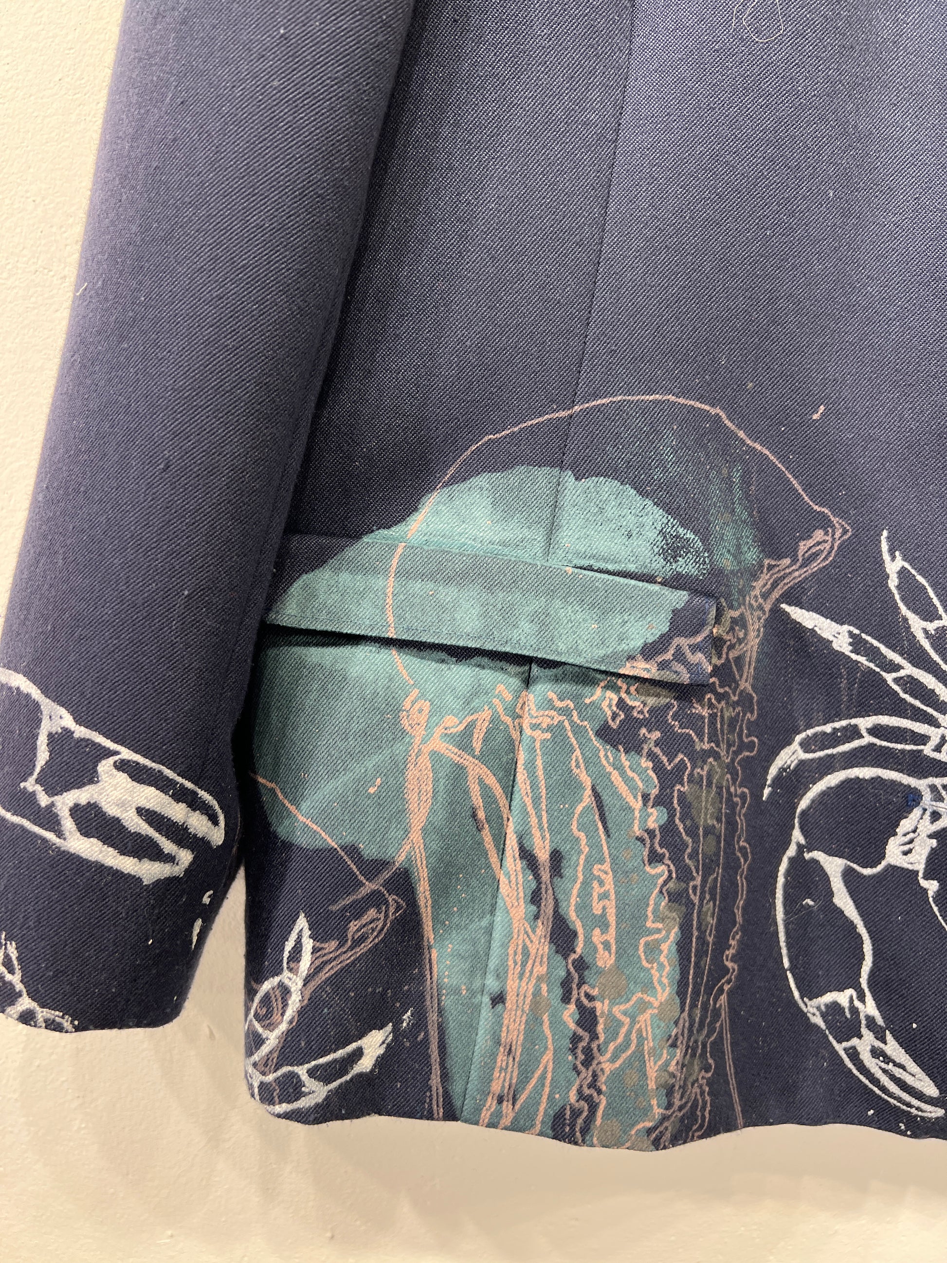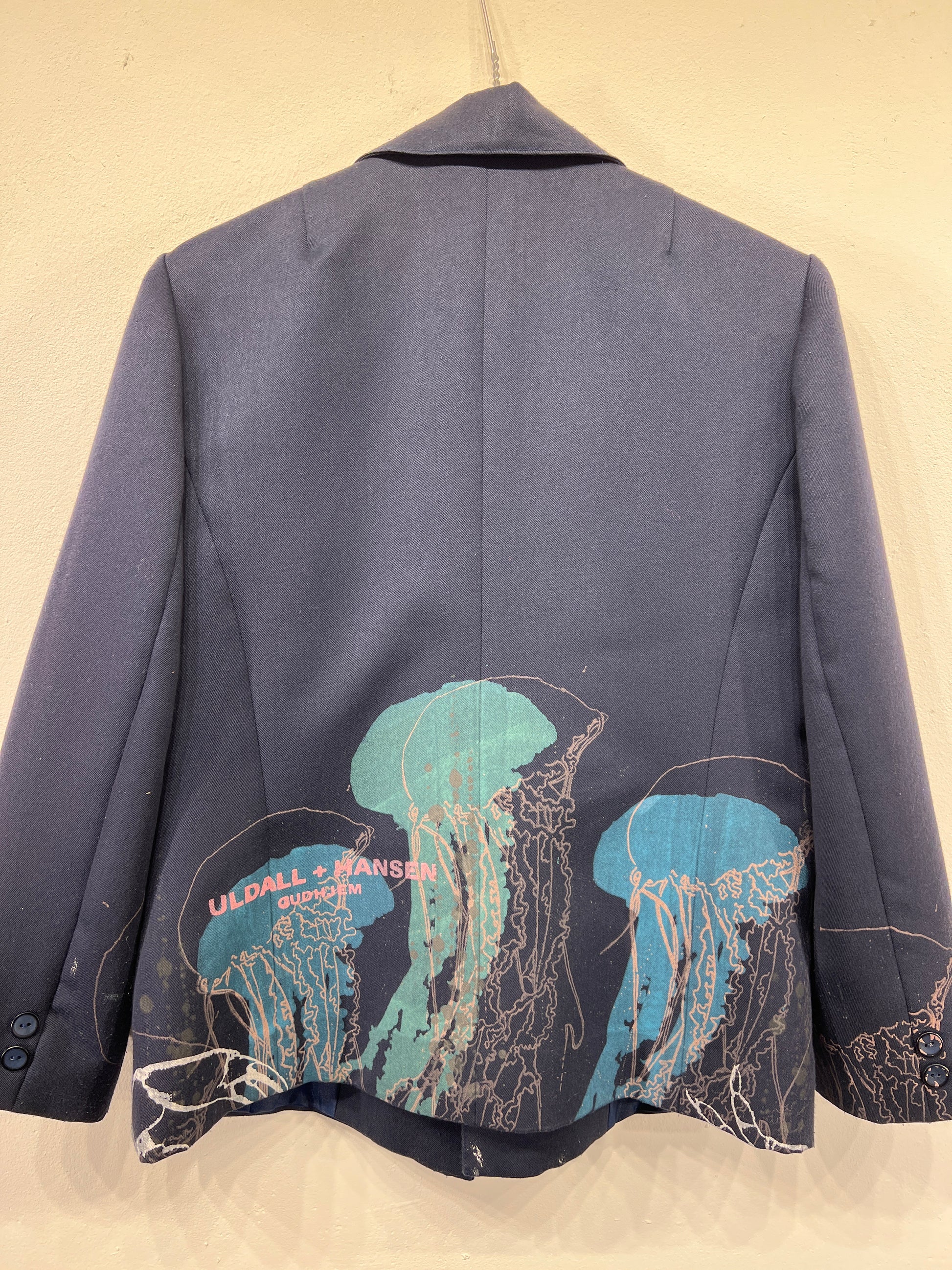 Vi upcycler eksisterende blazere og giver dem nyt liv gennem serigrafisk tryk, hvor hvert motiv bliver trykt i hånden. Det betyder, at ikke to blazere er ens – hver enkelt får sit eget udtryk, tekstur og karakter.