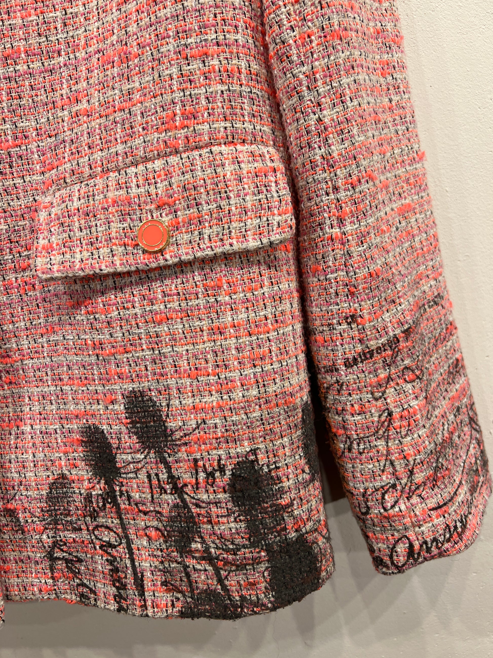 Vi upcycler eksisterende blazere og giver dem nyt liv gennem serigrafisk tryk, hvor hvert motiv bliver trykt i hånden. Det betyder, at ikke to blazere er ens – hver enkelt får sit eget udtryk, tekstur og karakter.