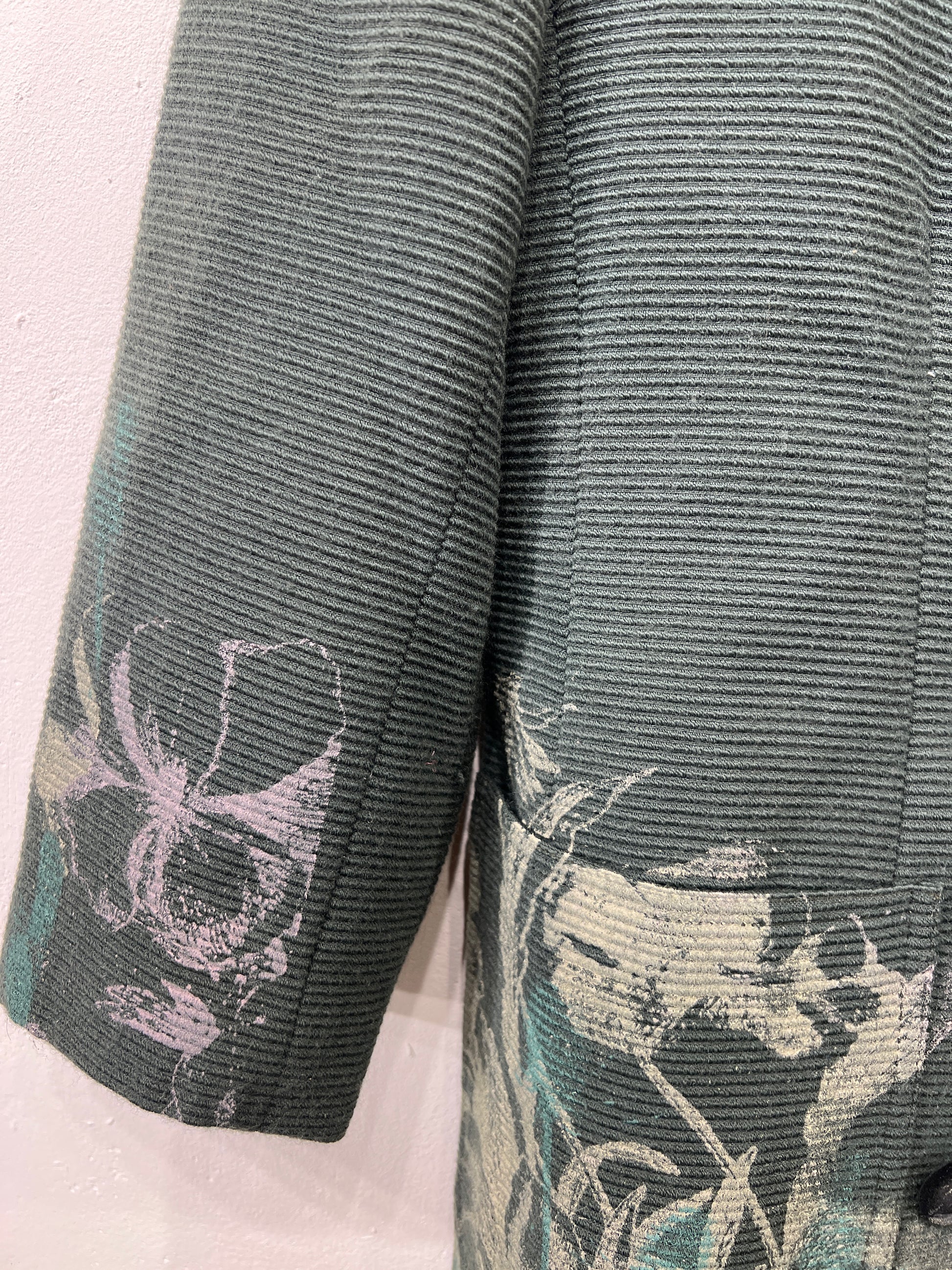 Vi upcycler eksisterende blazere og giver dem nyt liv gennem serigrafisk tryk, hvor hvert motiv bliver trykt i hånden. Det betyder, at ikke to blazere er ens – hver enkelt får sit eget udtryk, tekstur og karakter.