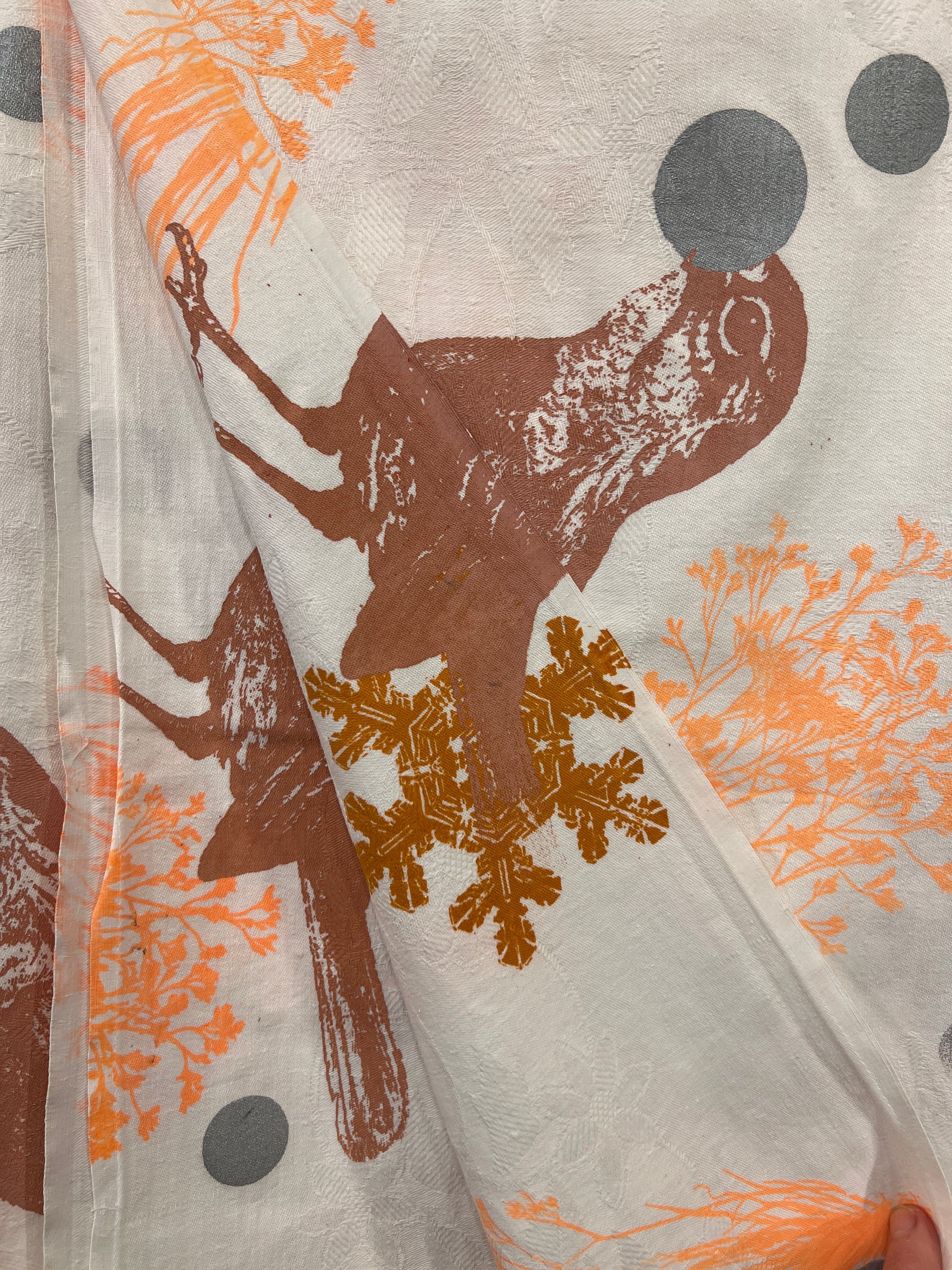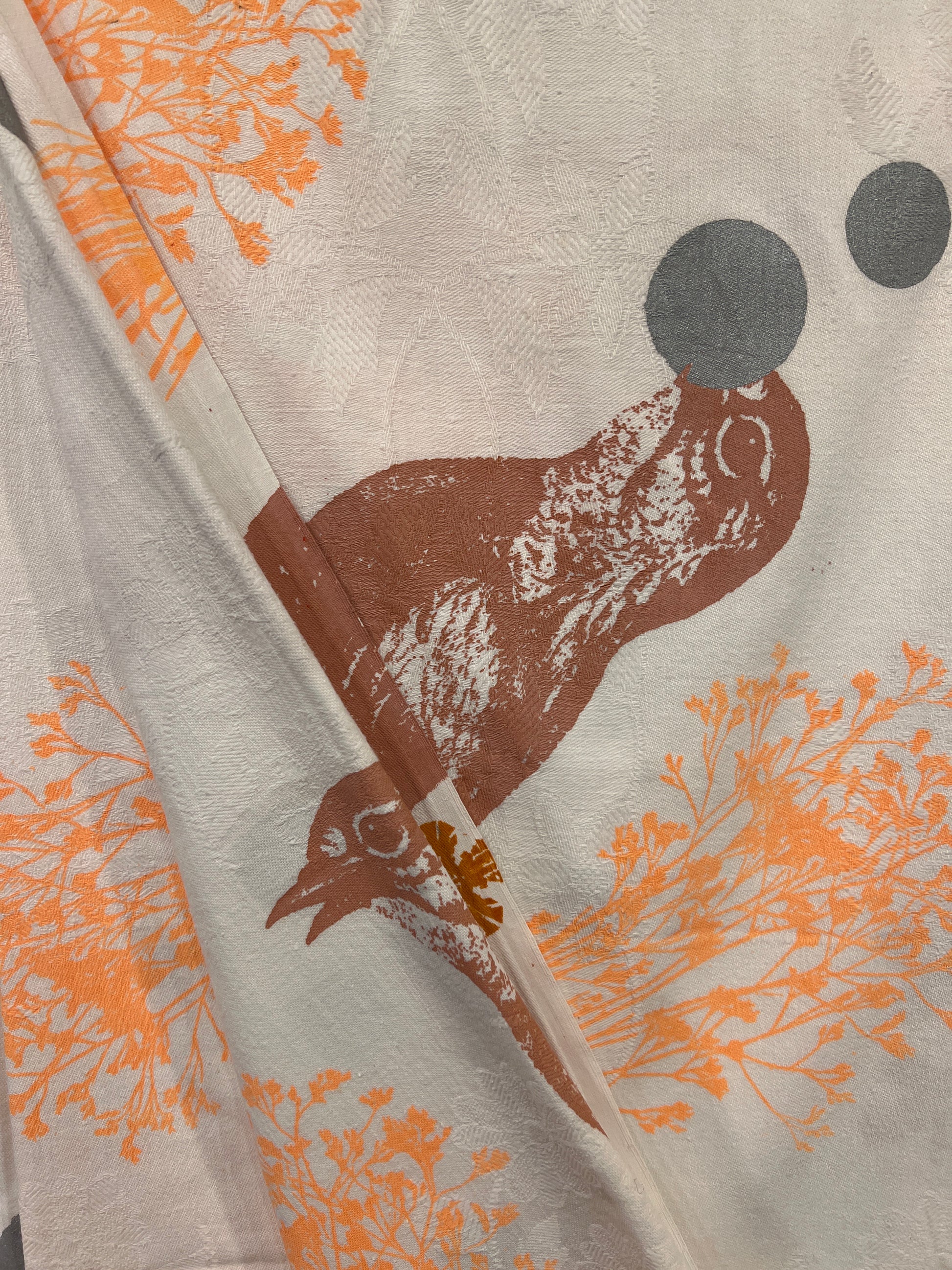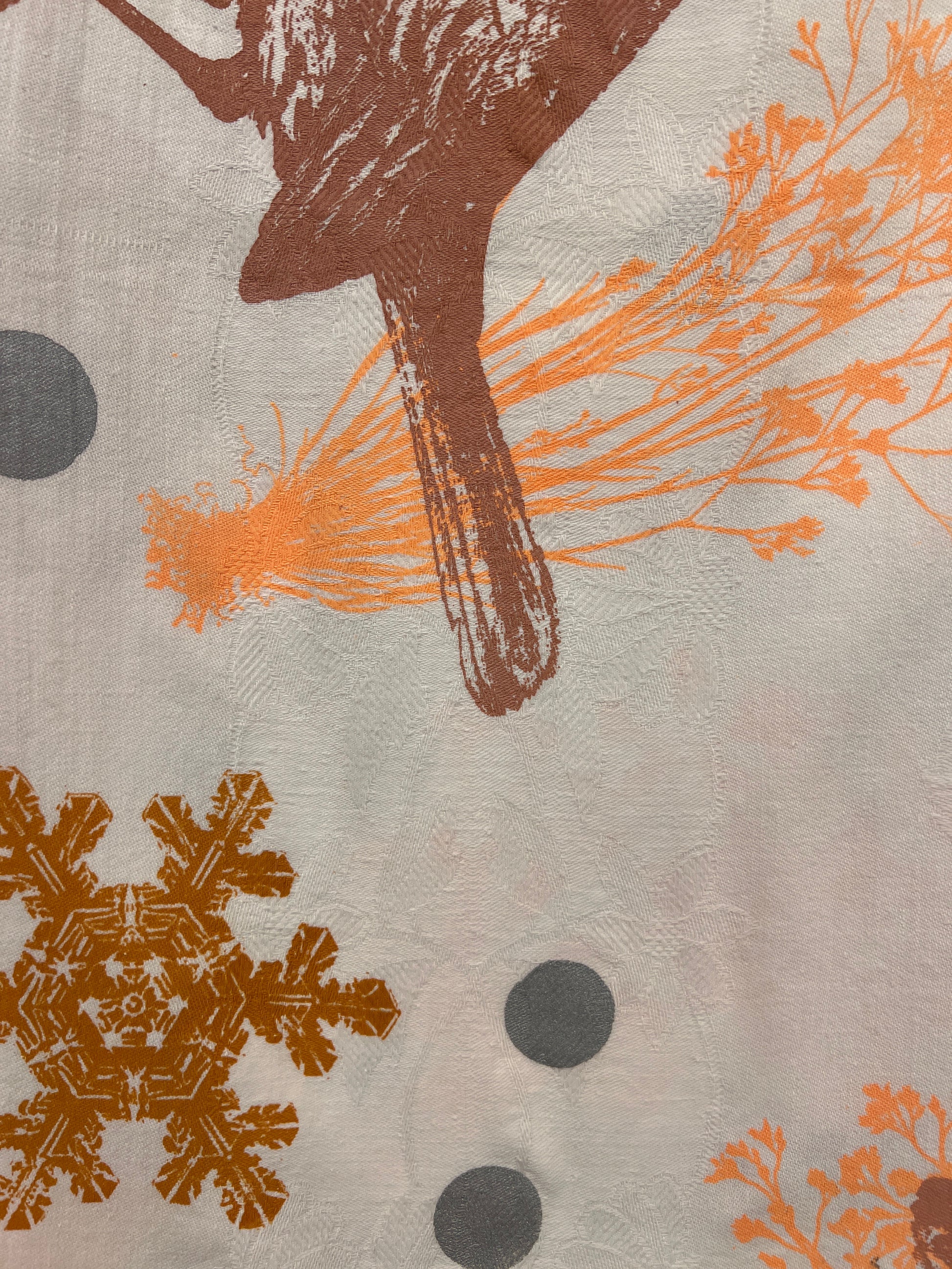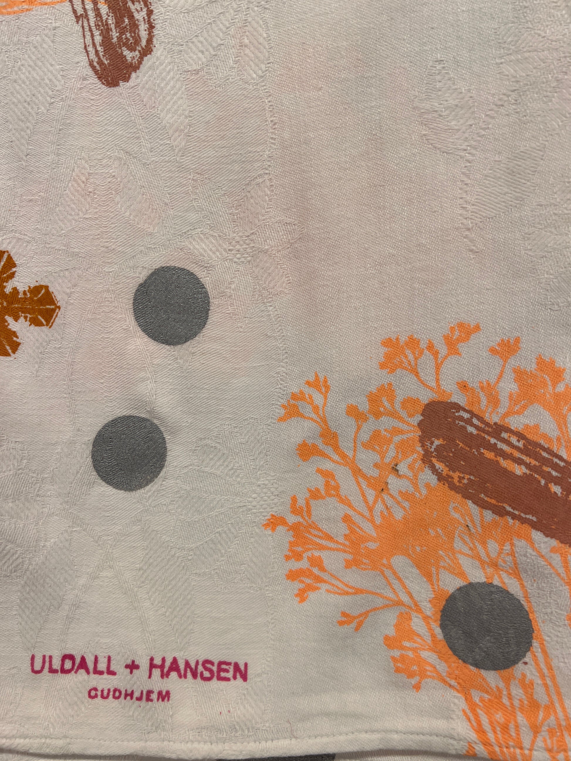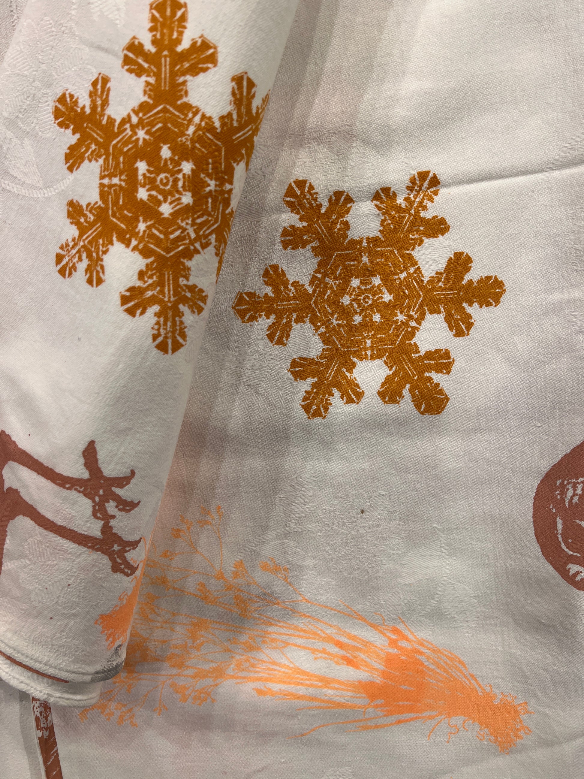 Håndtrykt dug ( gammel kvalitet s duge) med smukke motiver. Trykt på bomuld, der tåler vask på 40 -60 grader. Efter først at have stryget den, på højste varme.