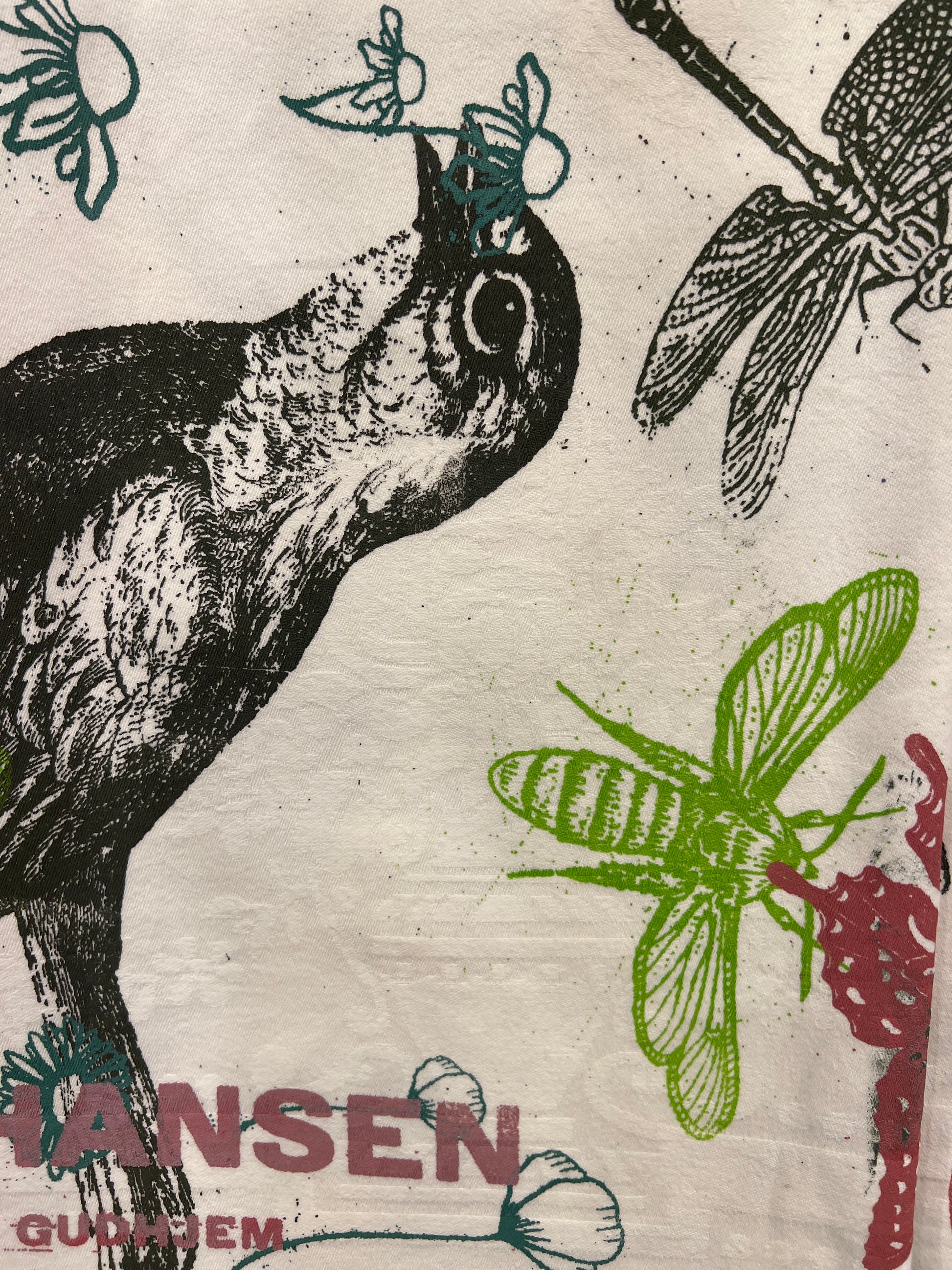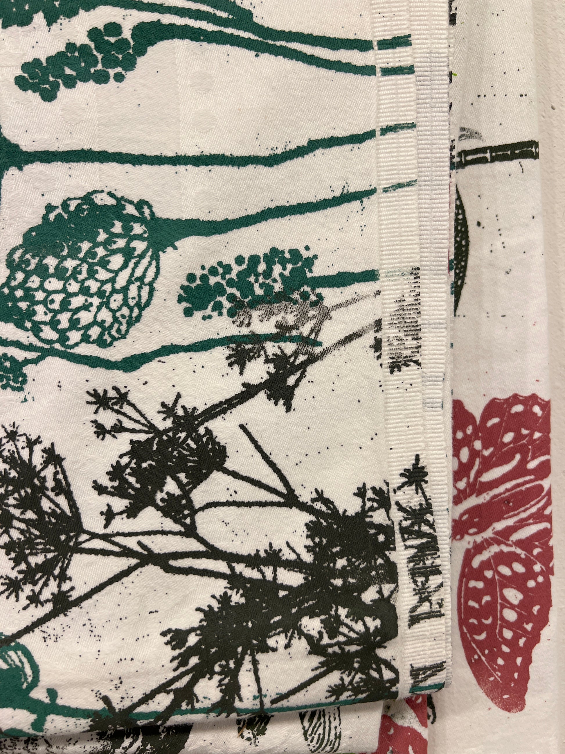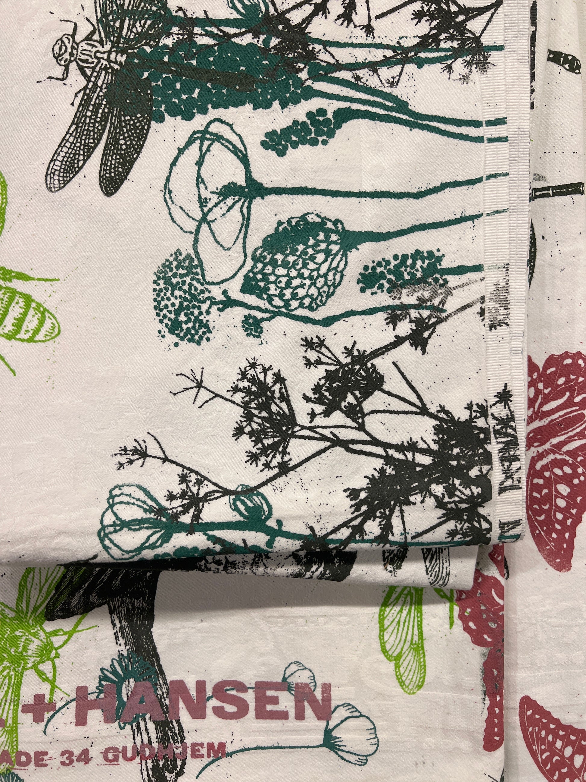 Håndtrykt dug ( gammel kvalitet s duge) med smukke motiver. Trykt på bomuld, der tåler vask på 40 -60 grader. Efter først at have stryget den, på højste varme.