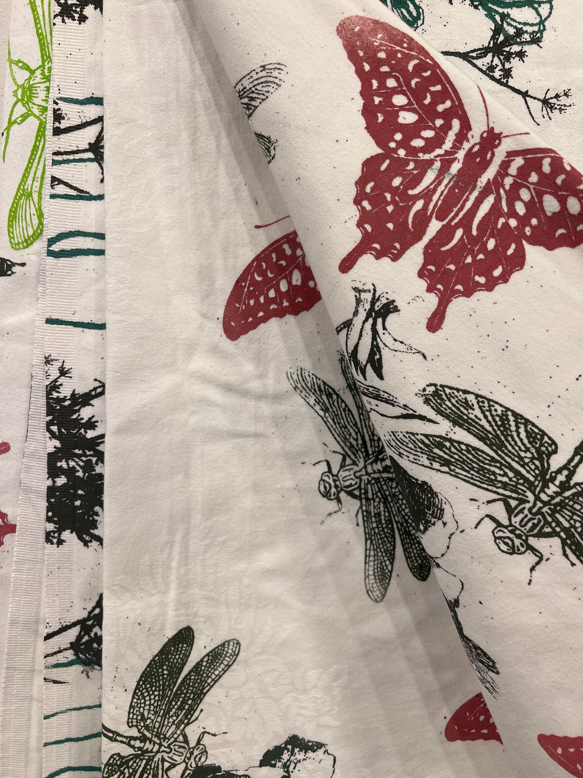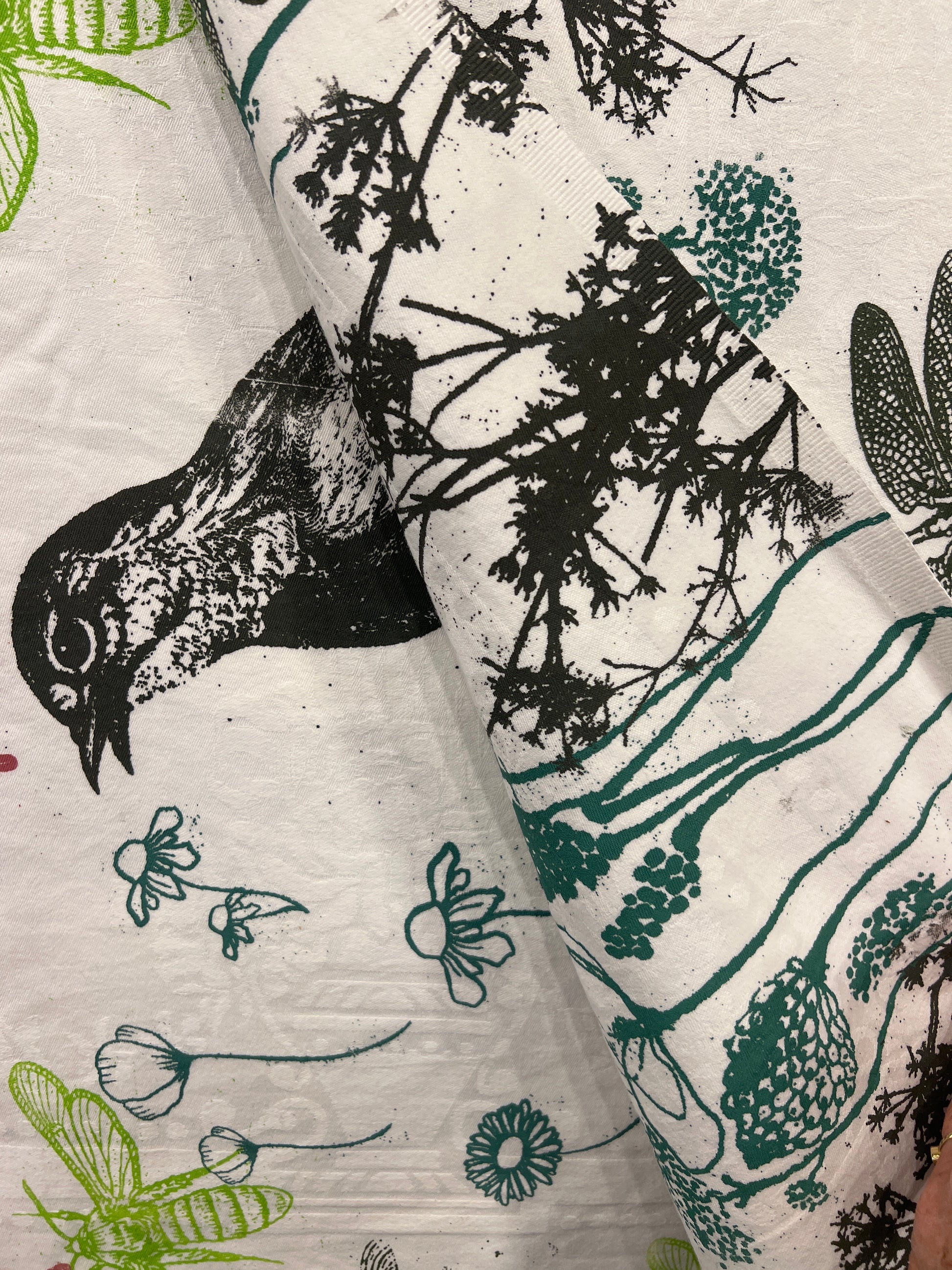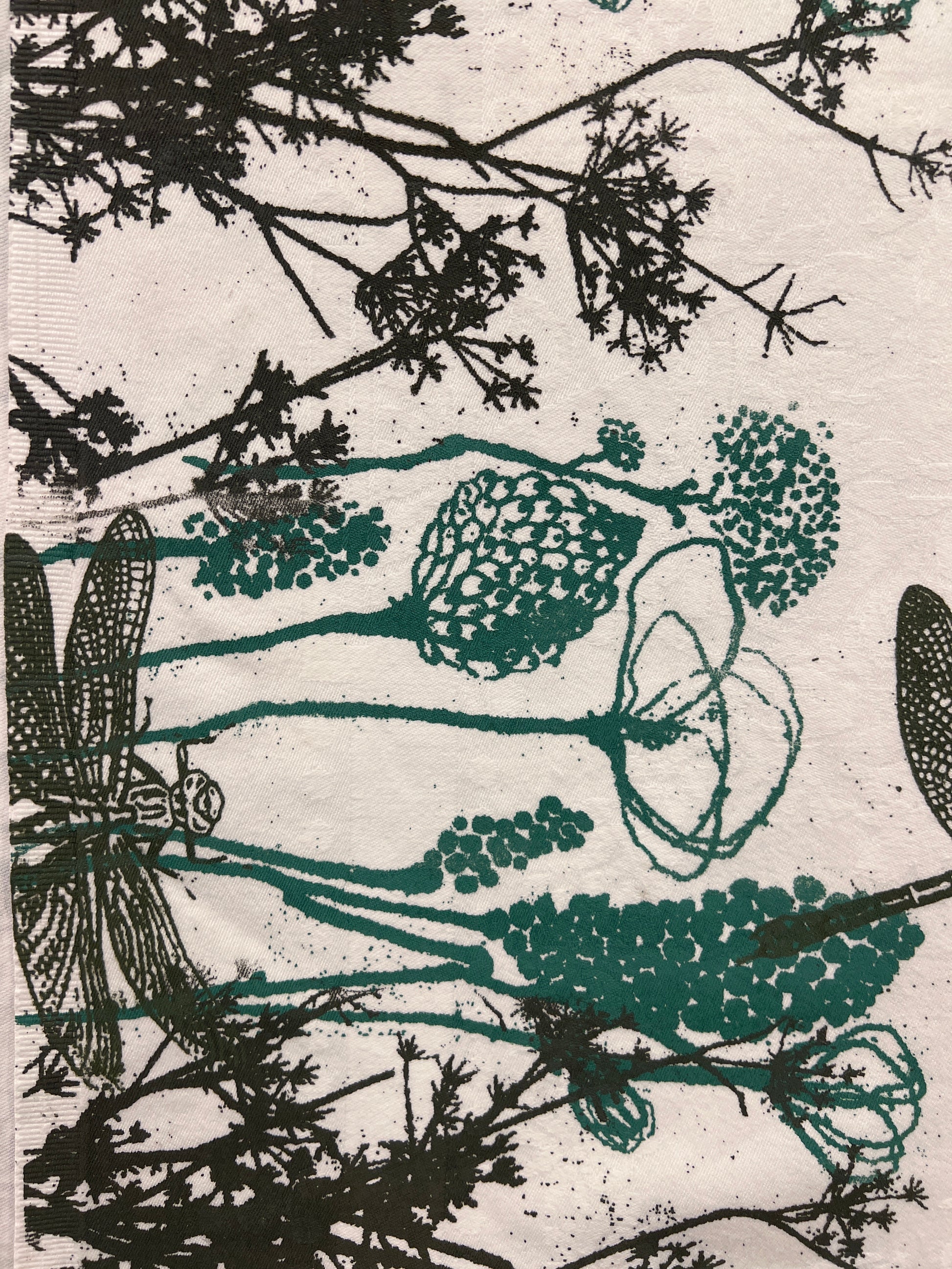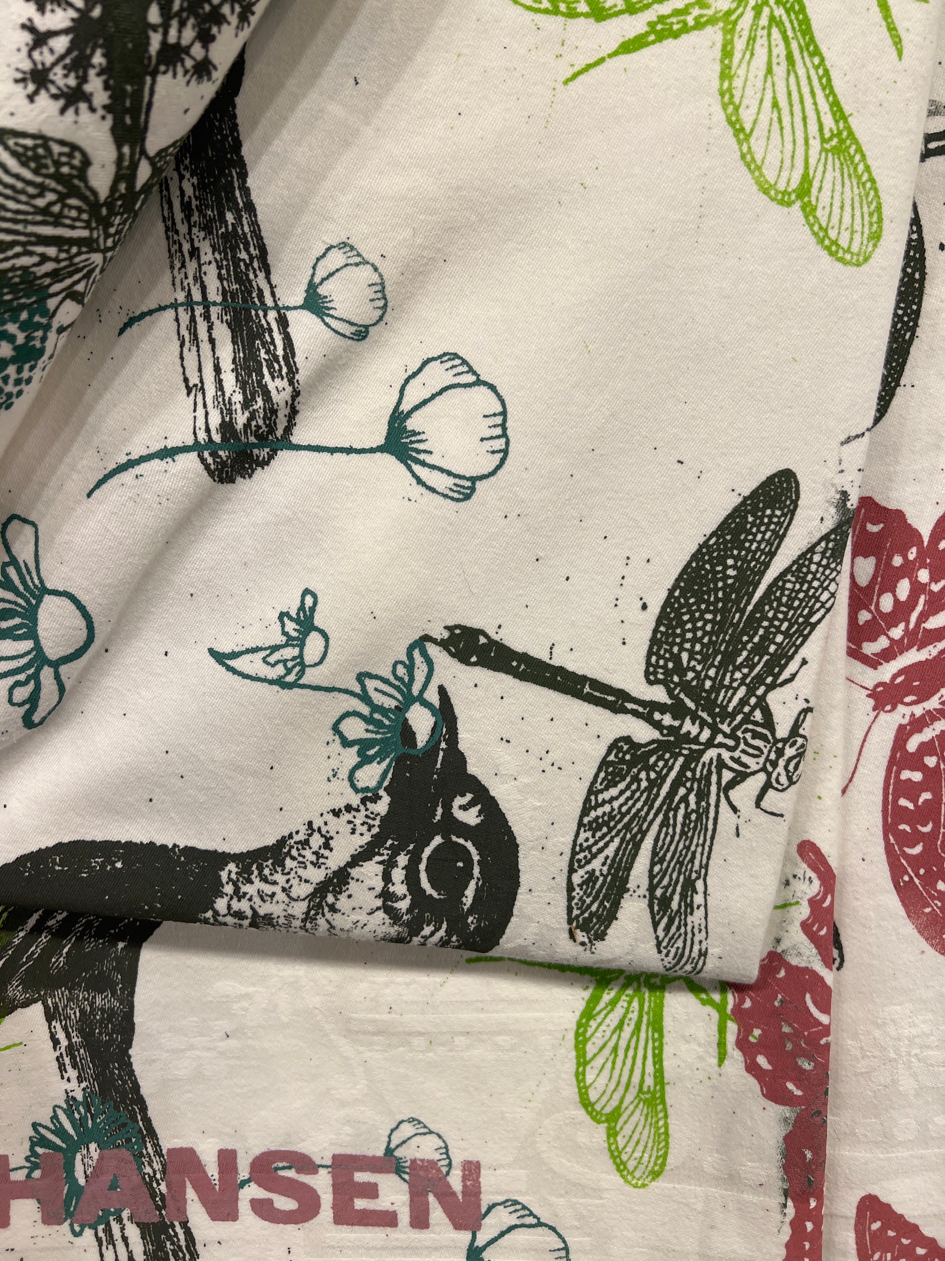 Håndtrykt dug ( gammel kvalitet s duge) med smukke motiver. Trykt på bomuld, der tåler vask på 40 -60 grader. Efter først at have stryget den, på højste varme.