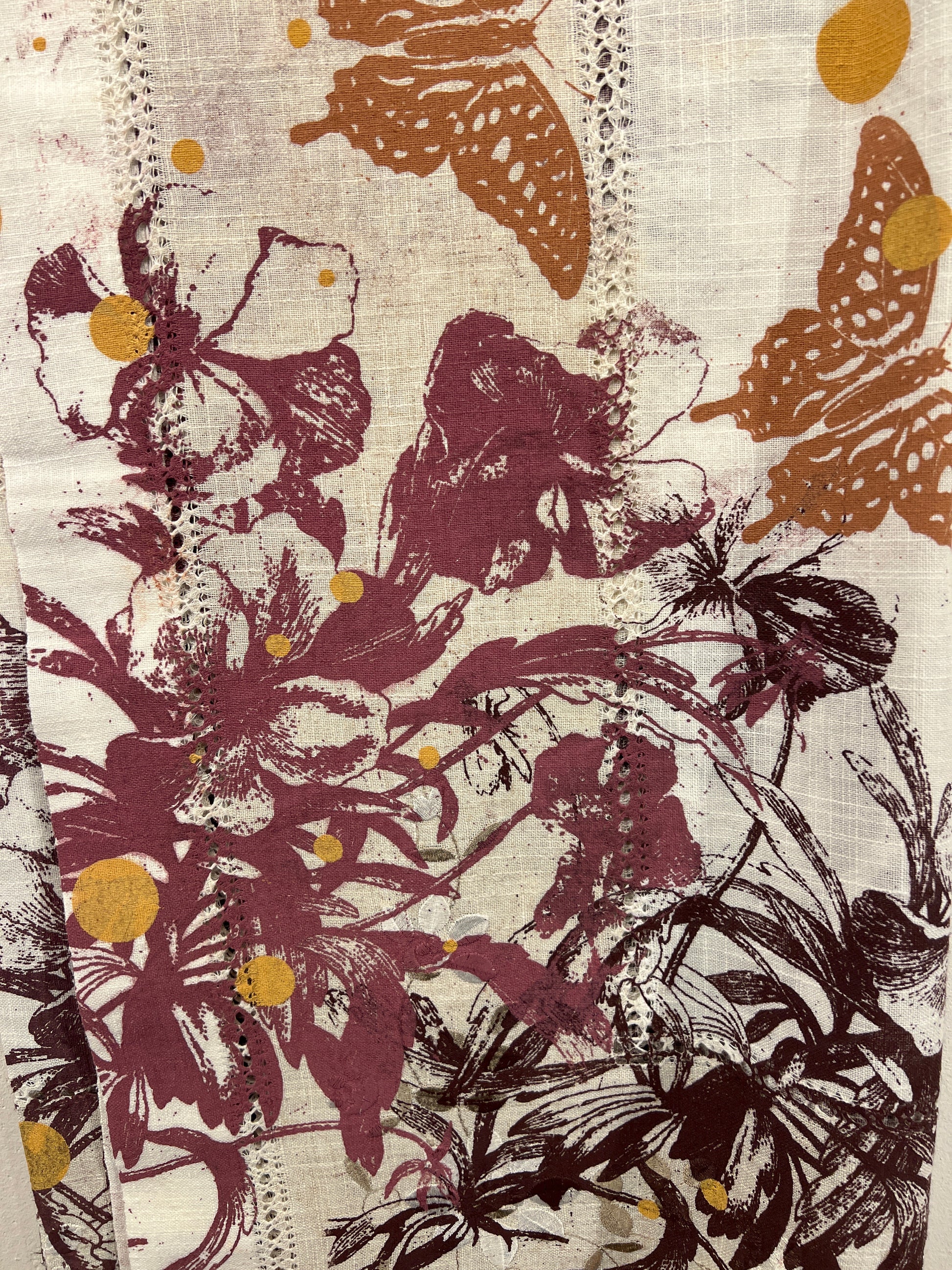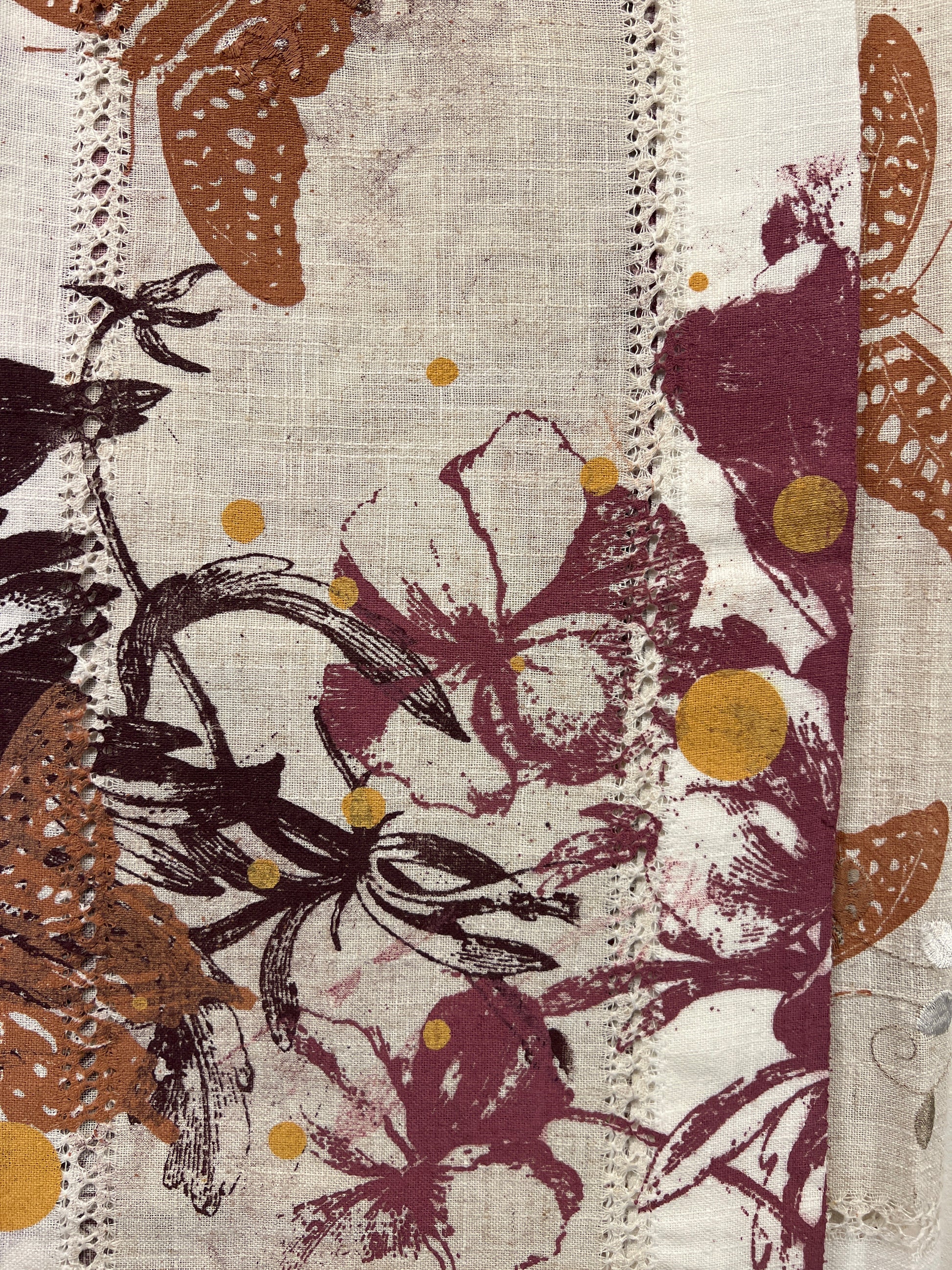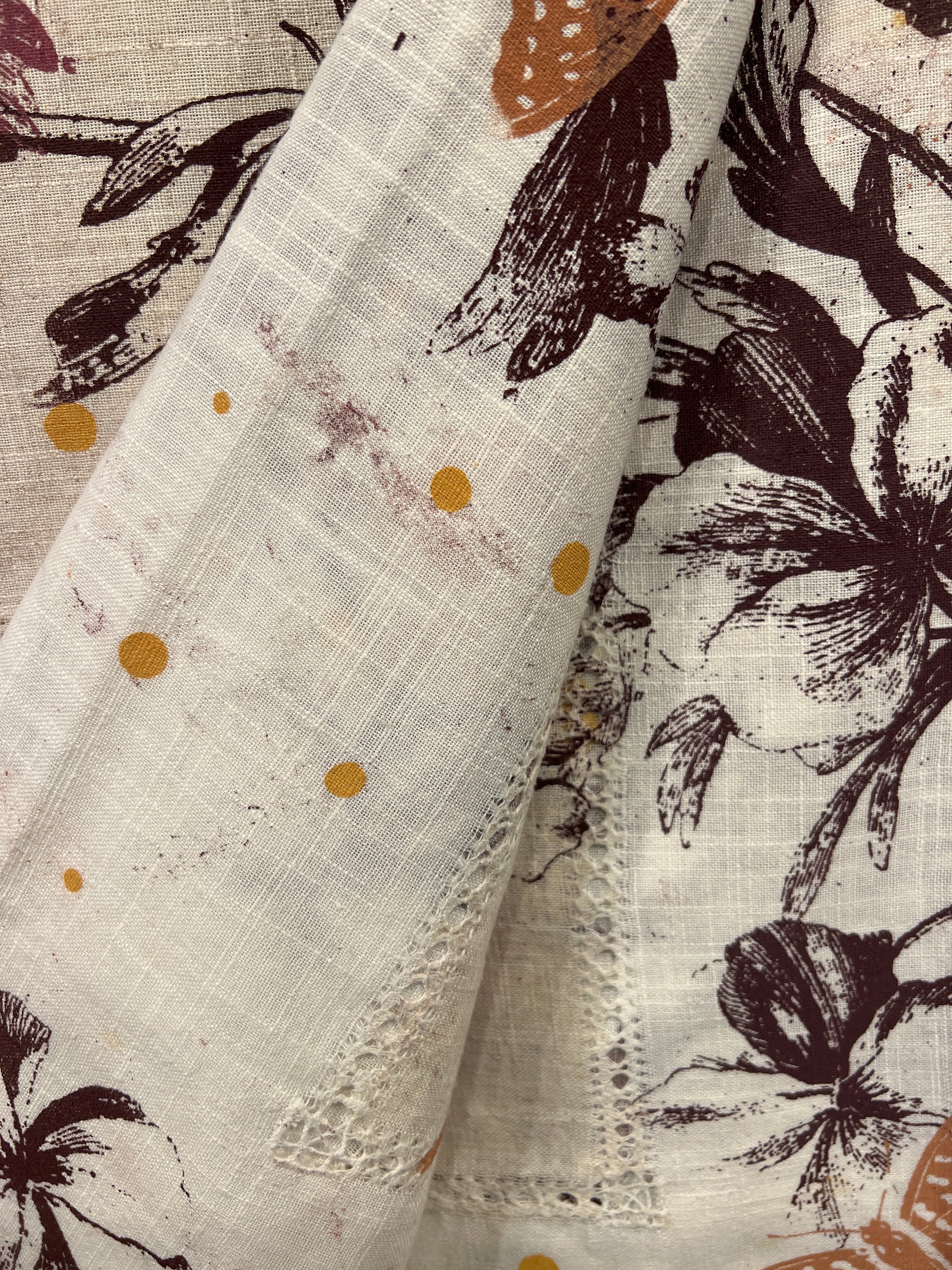 Håndtrykt dug ( gammel kvalitet s duge) med smukke motiver. Trykt på bomuld, der tåler vask på 40 -60 grader. Efter først at have stryget den, på højste varme.