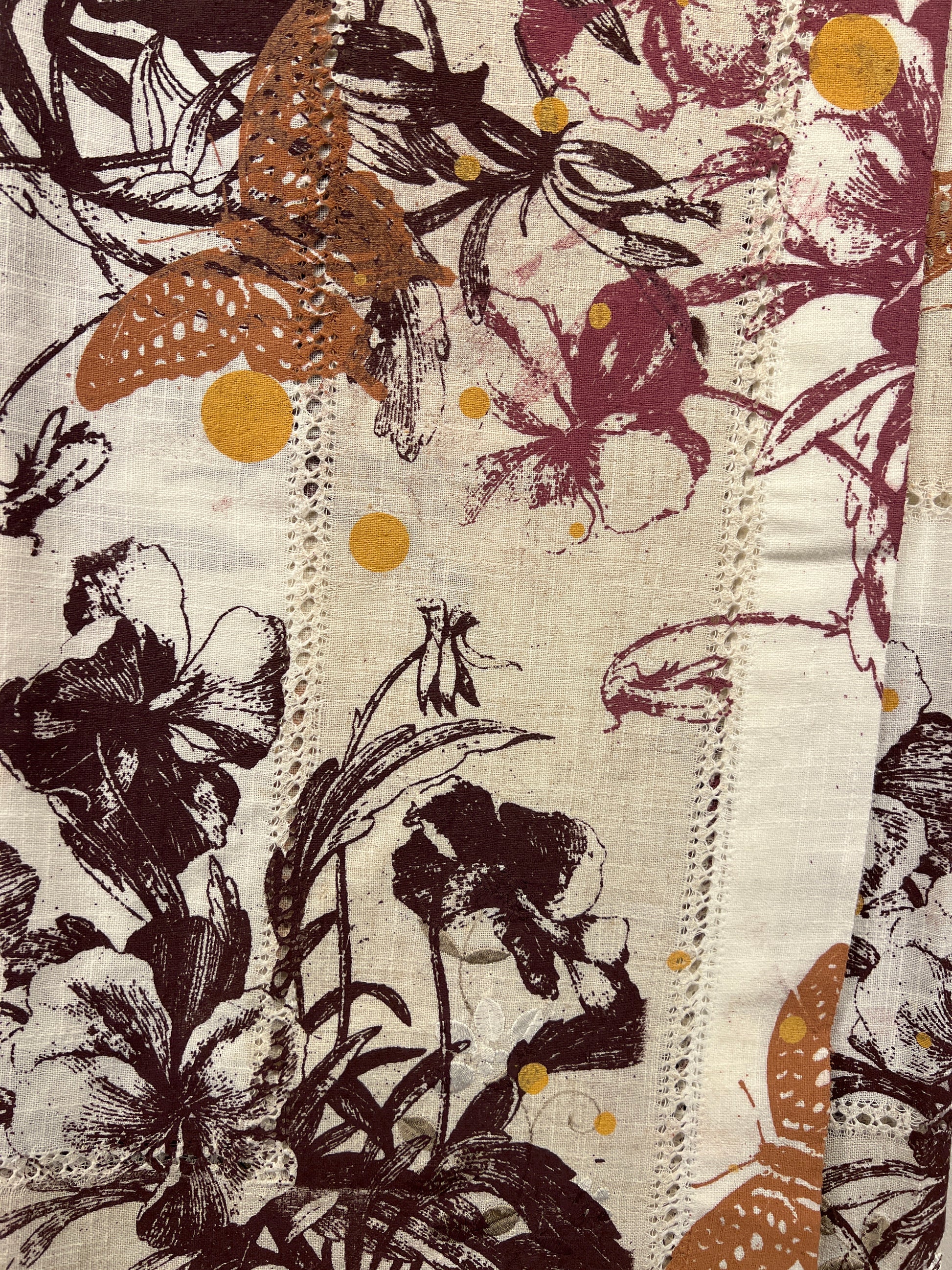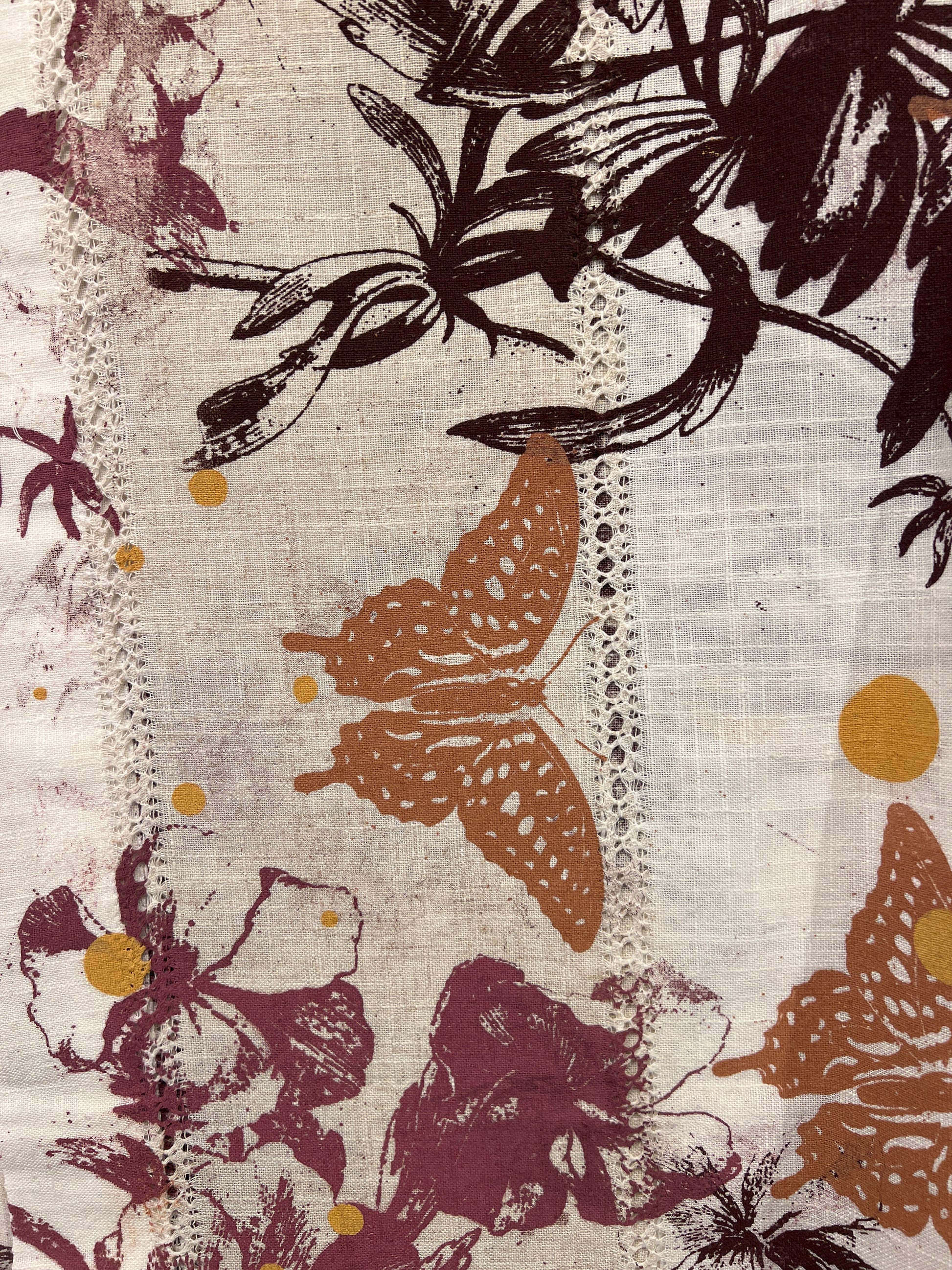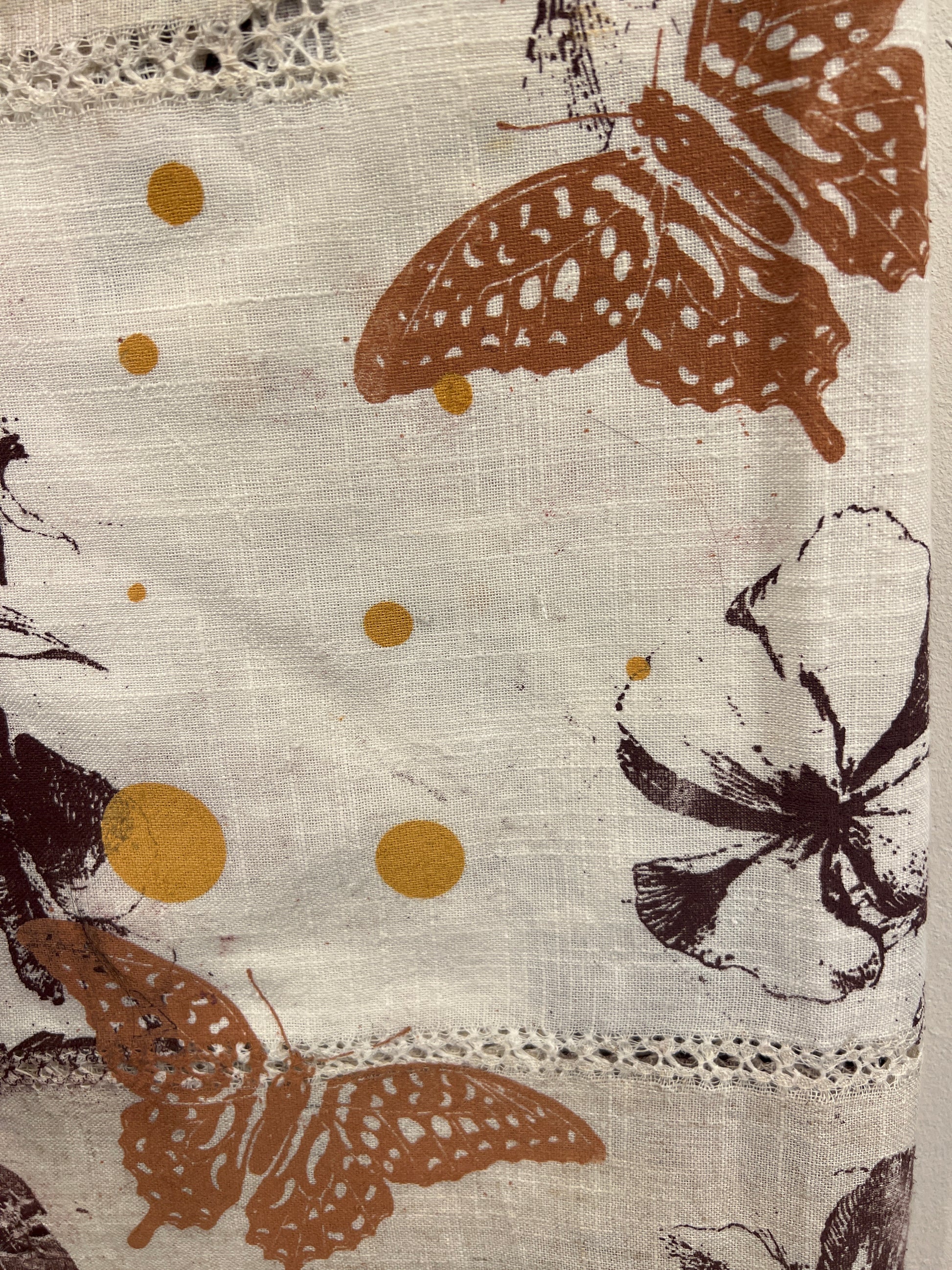 Håndtrykt dug ( gammel kvalitet s duge) med smukke motiver. Trykt på bomuld, der tåler vask på 40 -60 grader. Efter først at have stryget den, på højste varme.