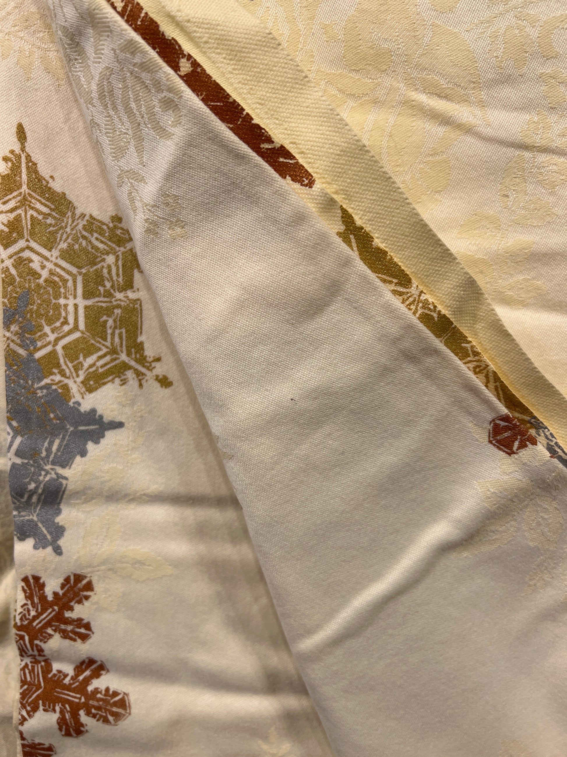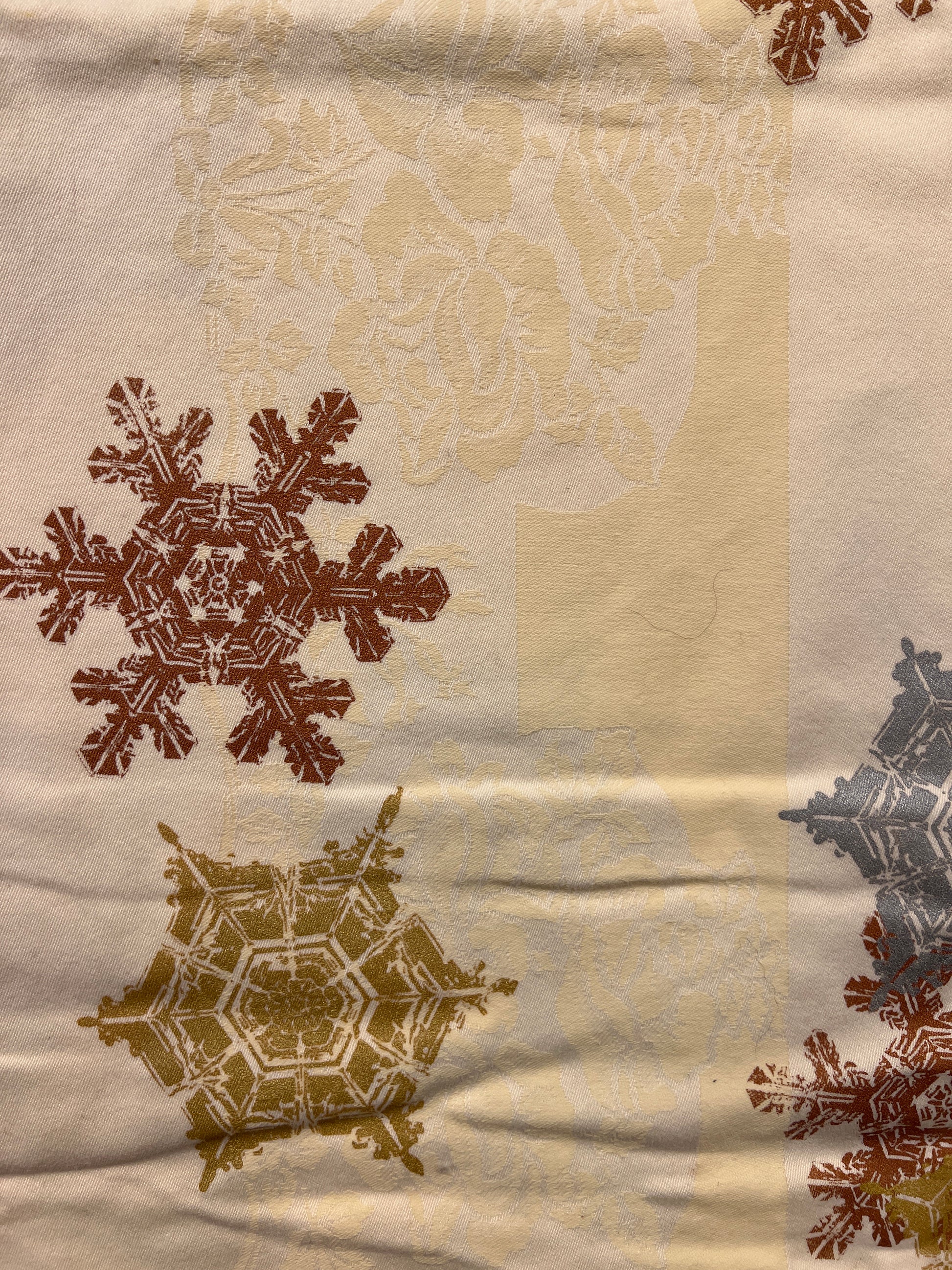 Håndtrykt dug ( gammel kvalitet s duge) med smukke motiver. Trykt på bomuld, der tåler vask på 40 -60 grader. Efter først at have stryget den, på højste varme.