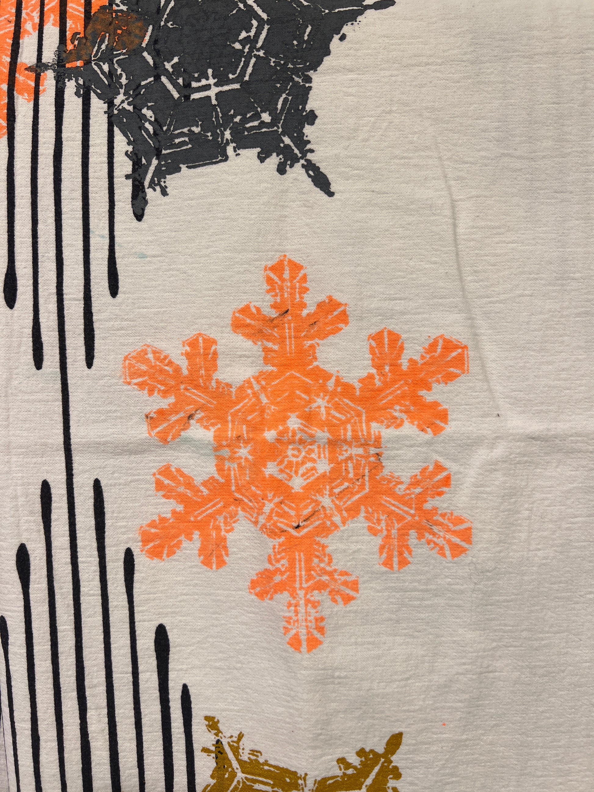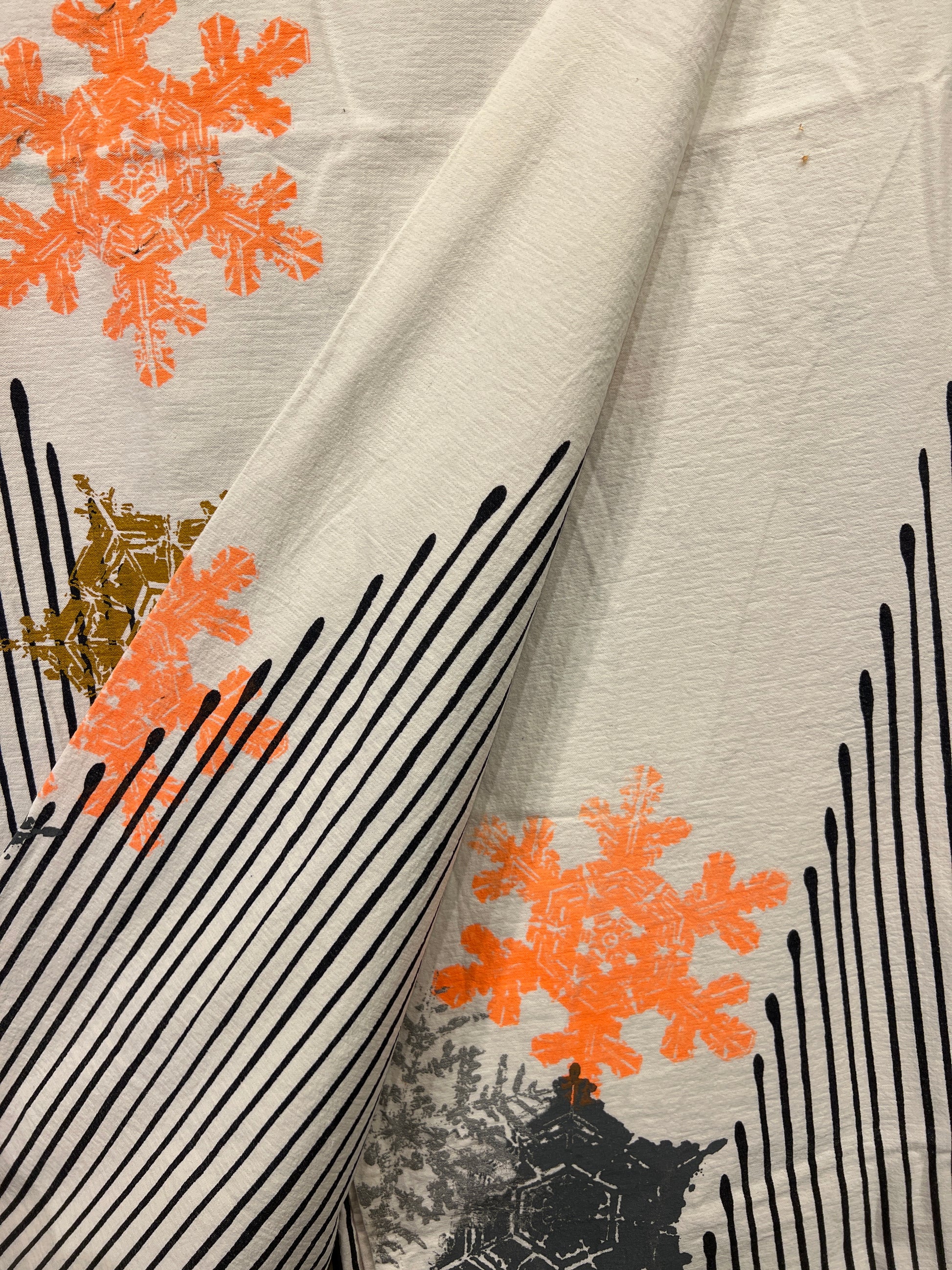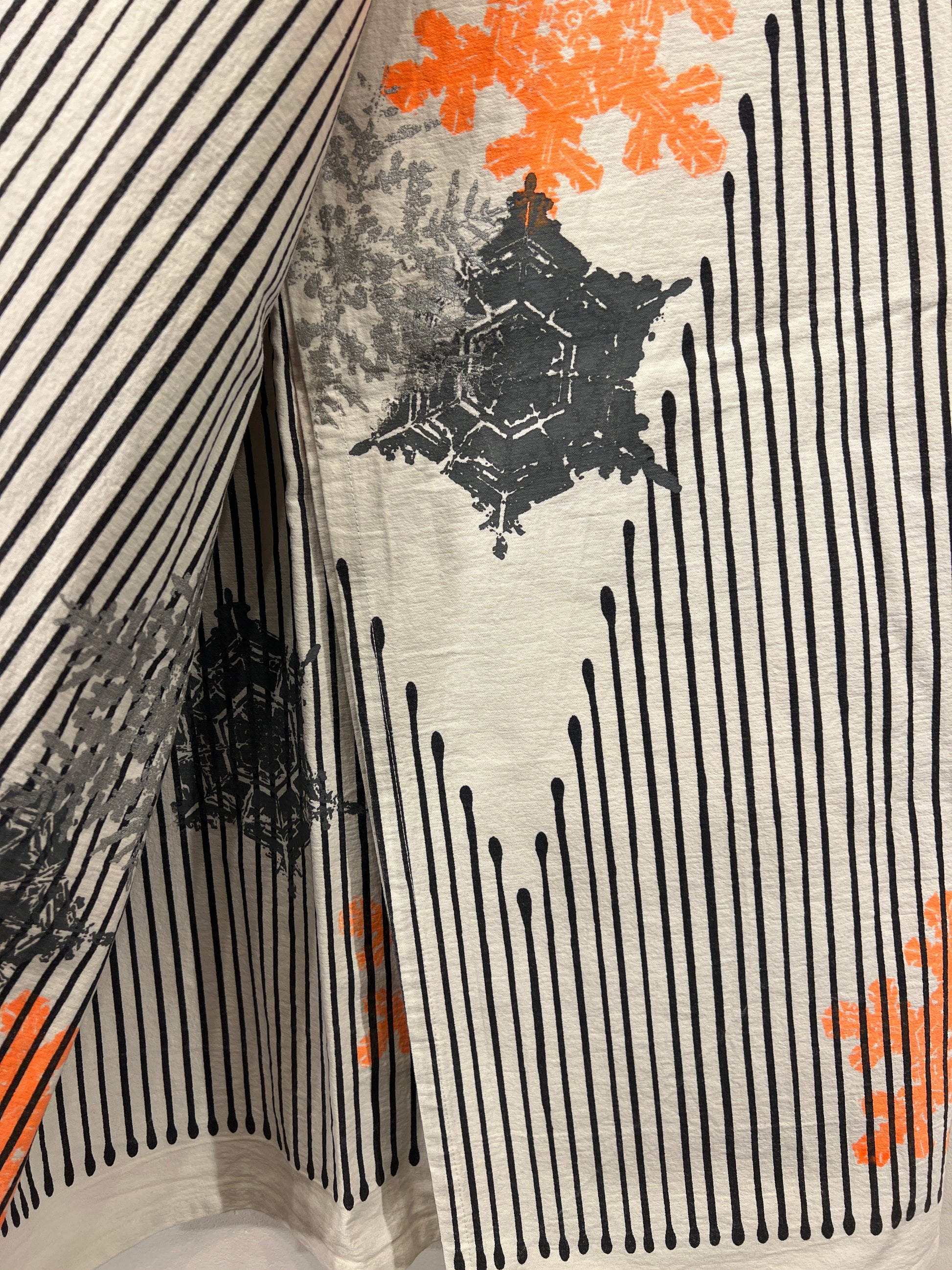 Håndtrykt dug ( gammel kvalitet s duge) med smukke motiver. Trykt på bomuld, der tåler vask på 40 -60 grader. Efter først at have stryget den, på højste varme.