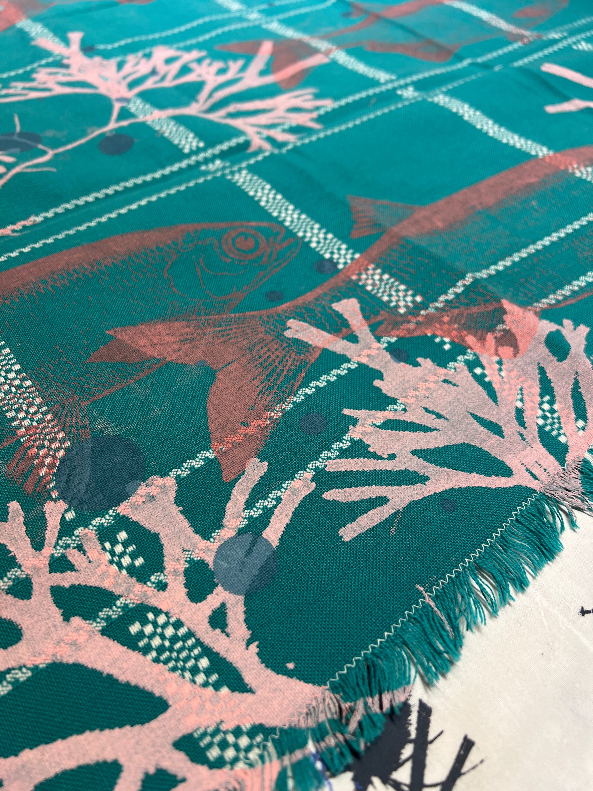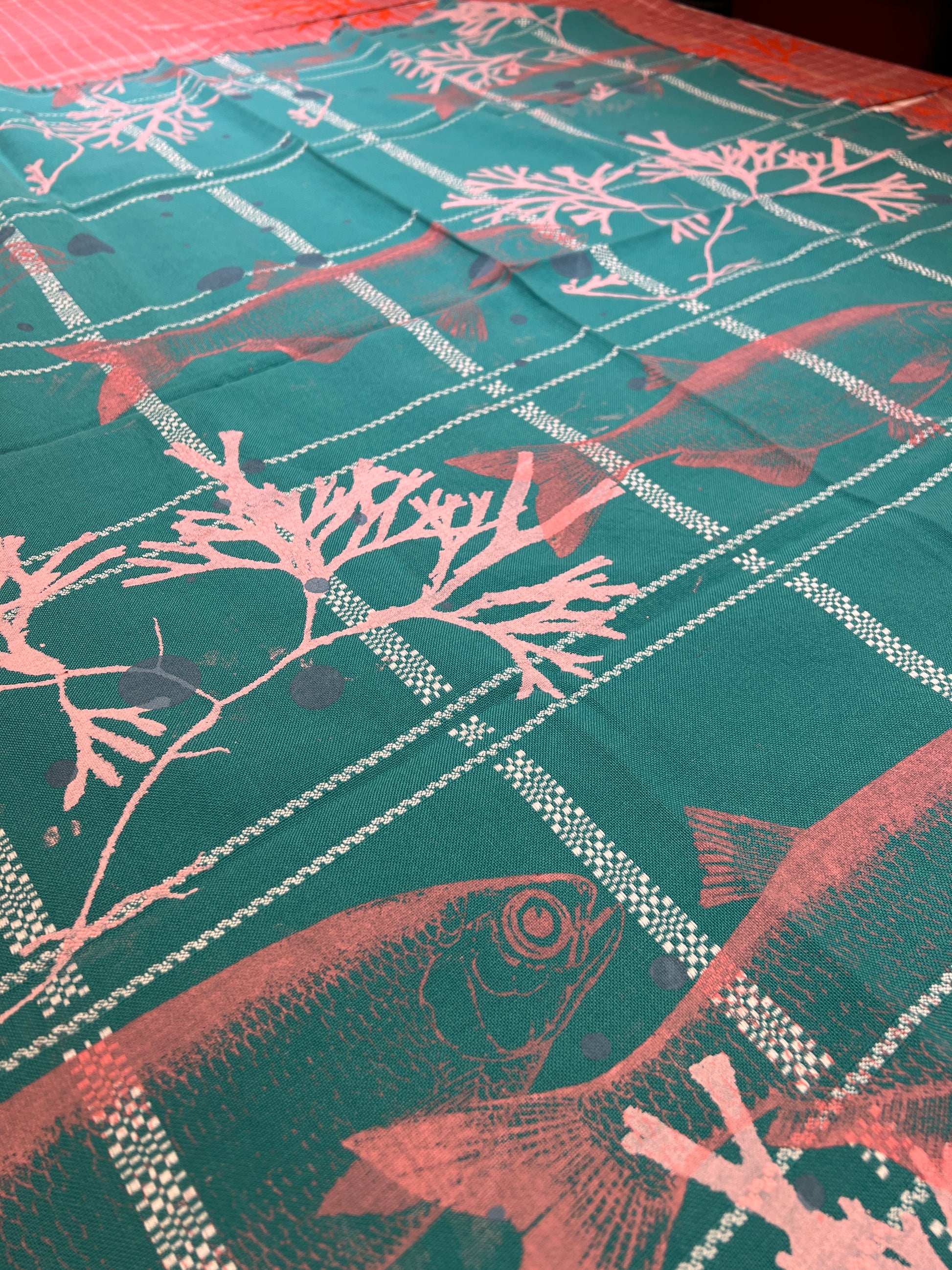 Håndtrykt dug ( gammel kvalitet s duge) med smukke motiver. Trykt på bomuld, der tåler vask på 40 -60 grader. Efter først at have stryget den, på højste varme.