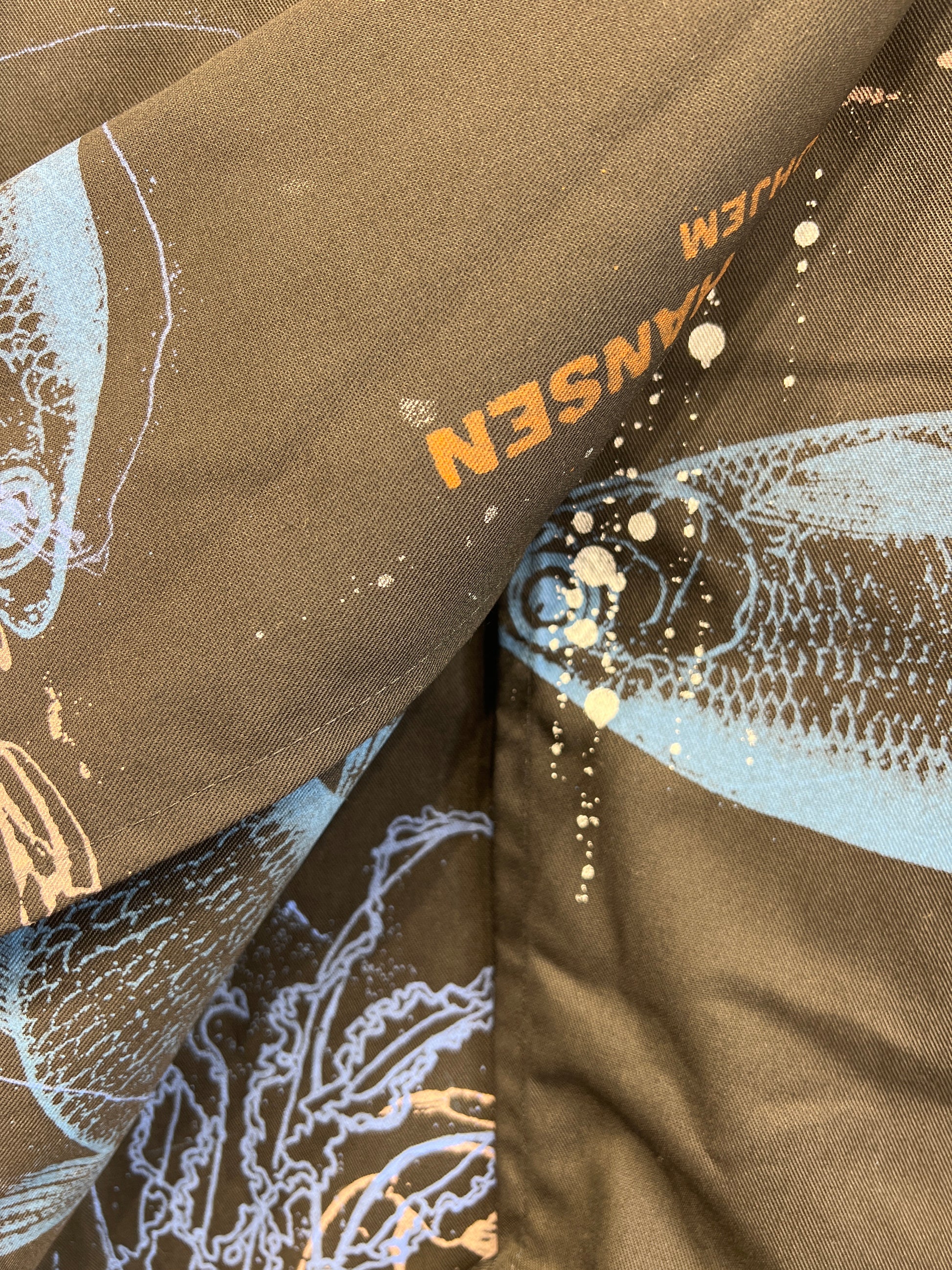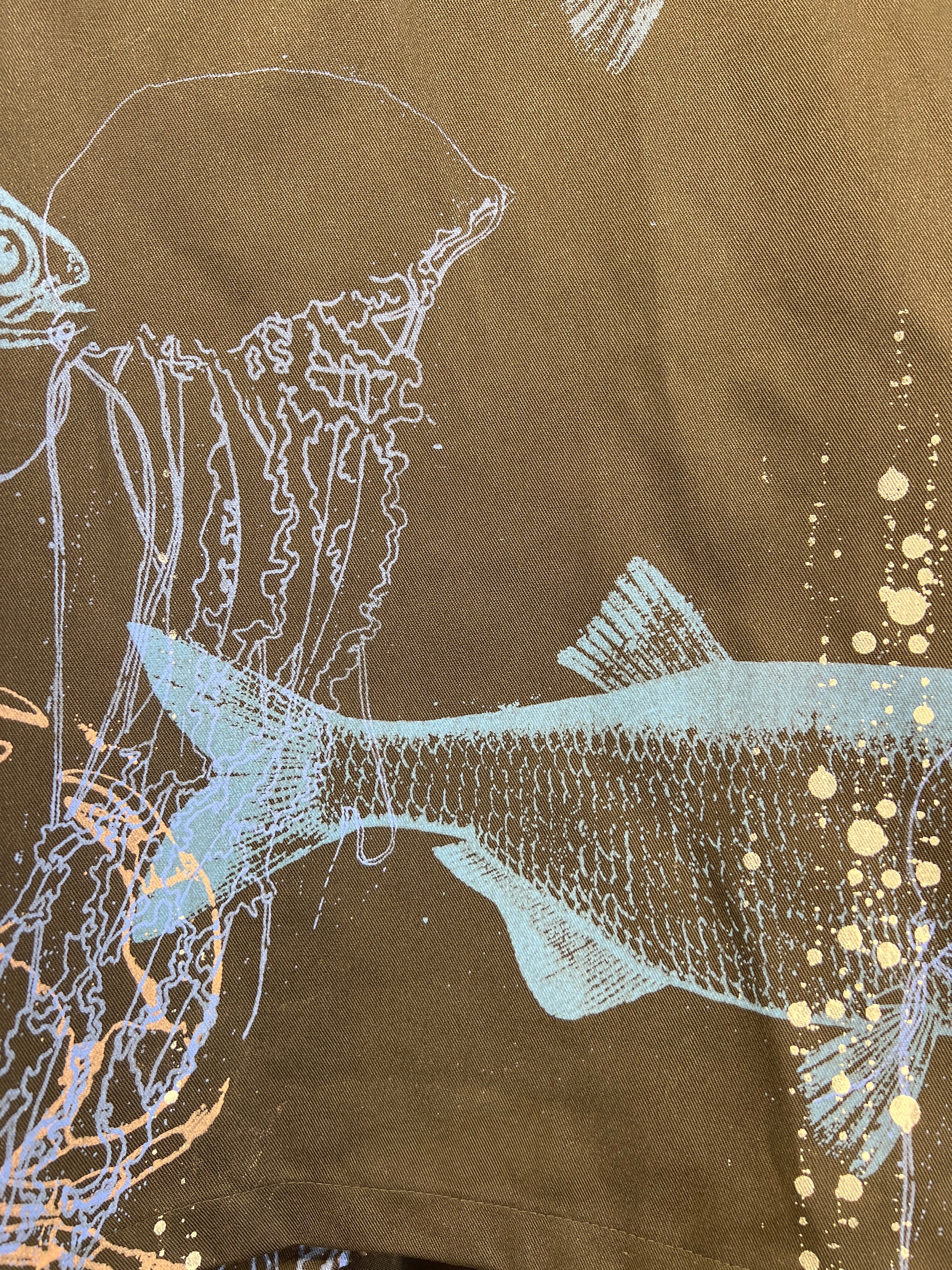 I samarbejde med Elis modtager vi udtjente duge, forklæder og andre tekstiler, som ikke længere kan bruges i deres oprindelige form. I stedet for at ende som affald, får materialerne et nyt liv hos os. Vi sÆ forarbejder og trykker på tekstilerne – så de bliver til unikke produkter med historie, karakter og lang levetid.