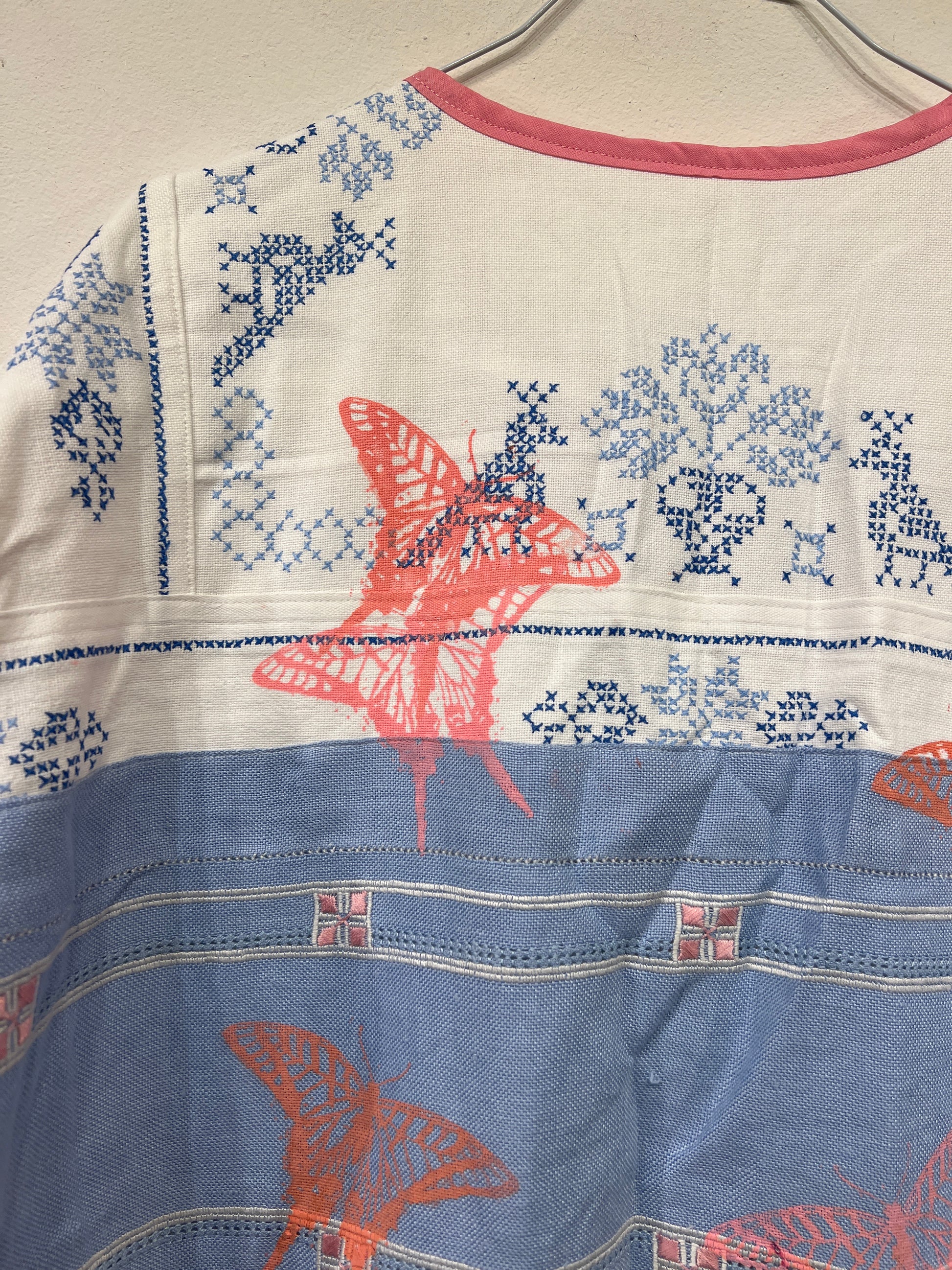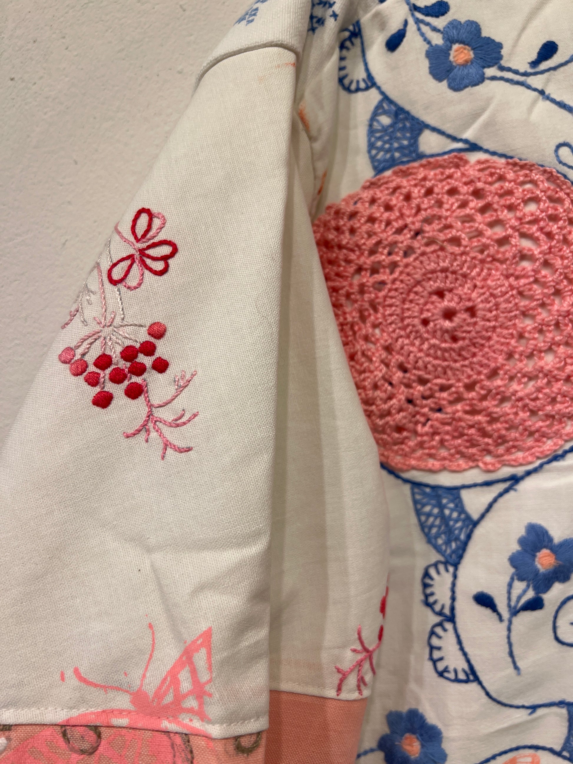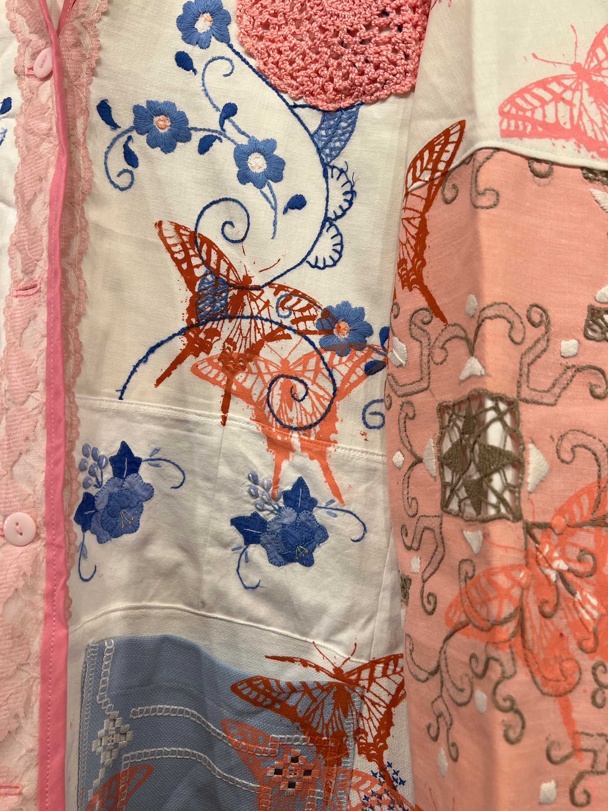 Resultatet er en bæredygtig og kunstnerisk fortolkning af den klassiske jakke, hvor håndværk, kreativitet og genbrug går op i en tidløs helhed.
