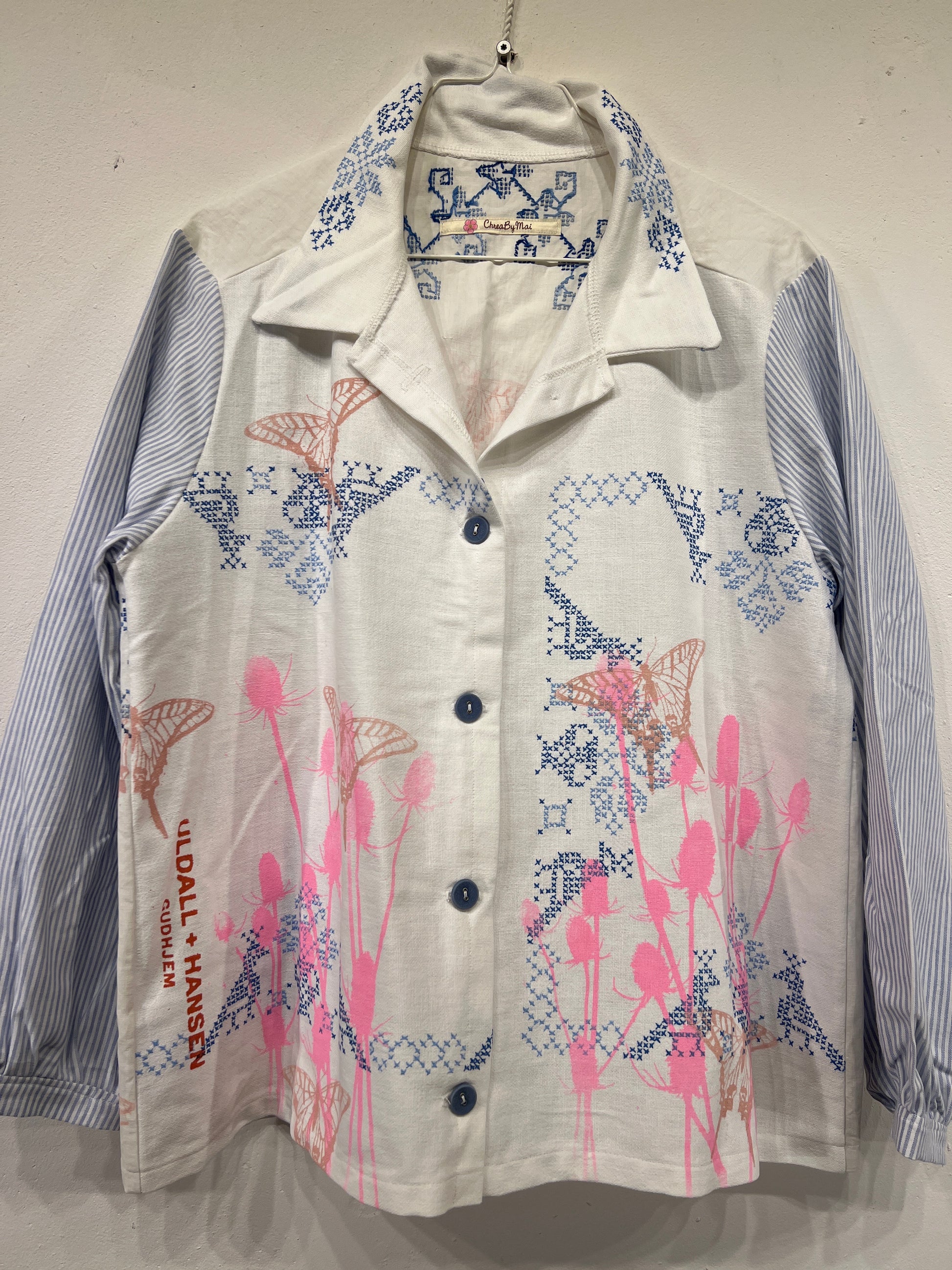 Vi designer unikke upcycling-jakker skabt af genbrugsstof, hvor vi forvandler eksisterende materialer og giver dem nyt liv. Hver jakke bliver serigrafisk håndtrykt med motiver, der skabes ét ad gangen – hvilket betyder, at ingen jakker er ens. Hver enkelt får sin egen struktur, visuelle identitet og unikke karakter.