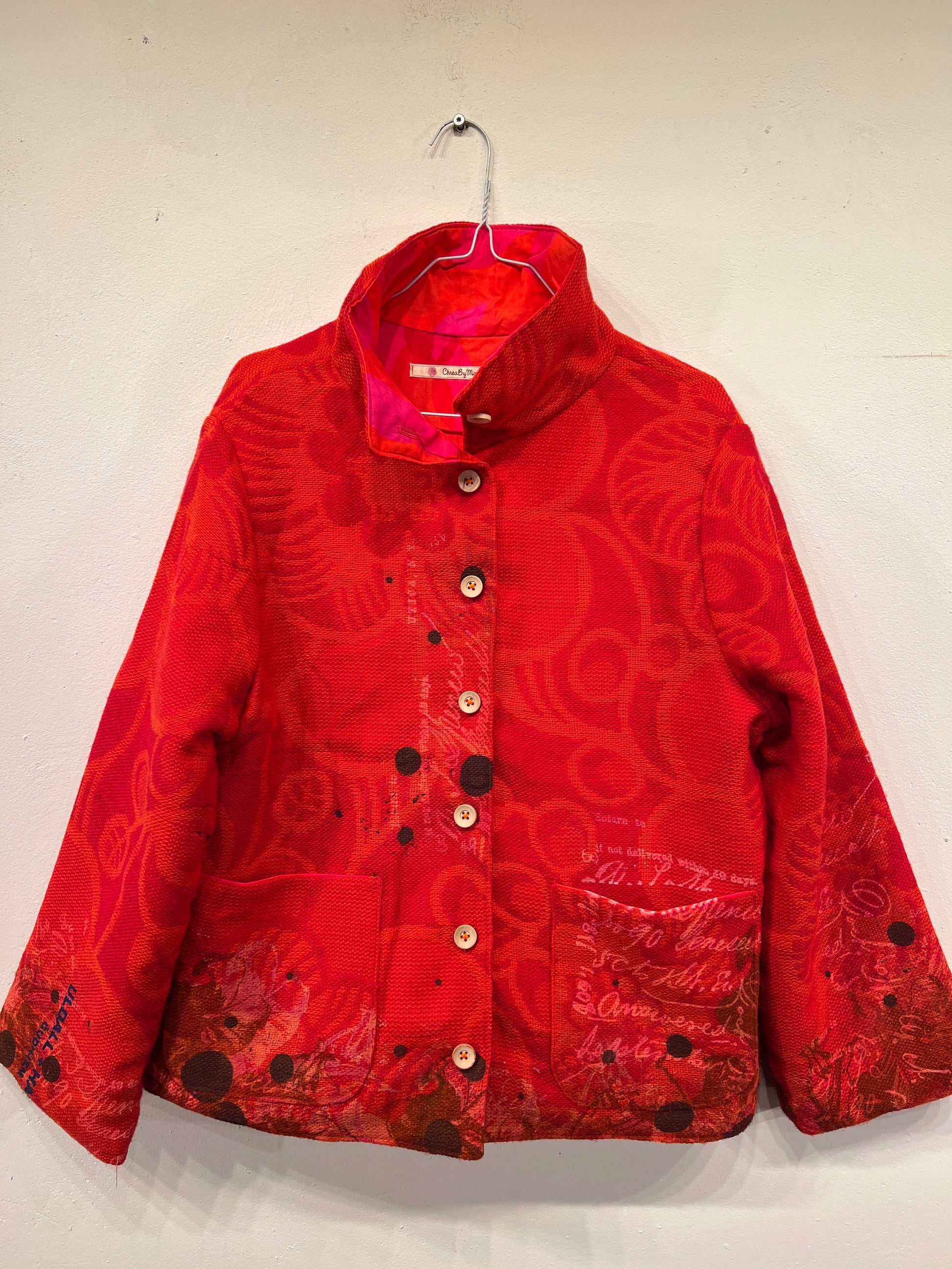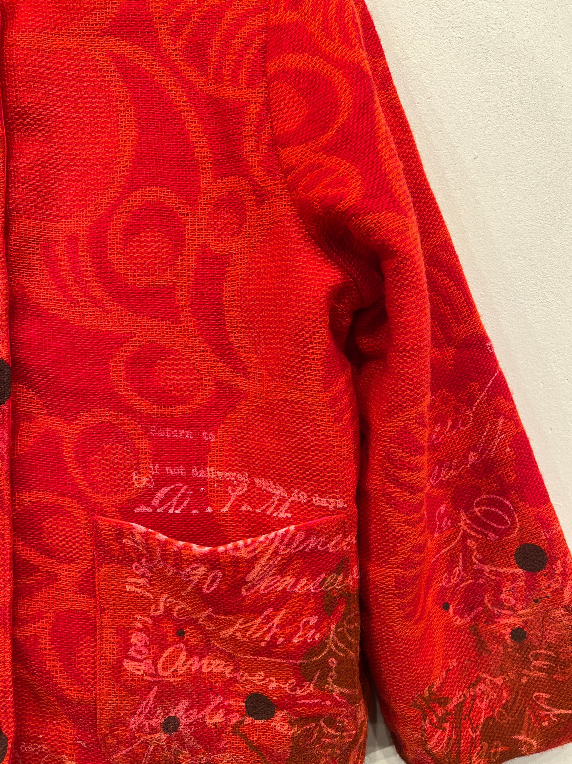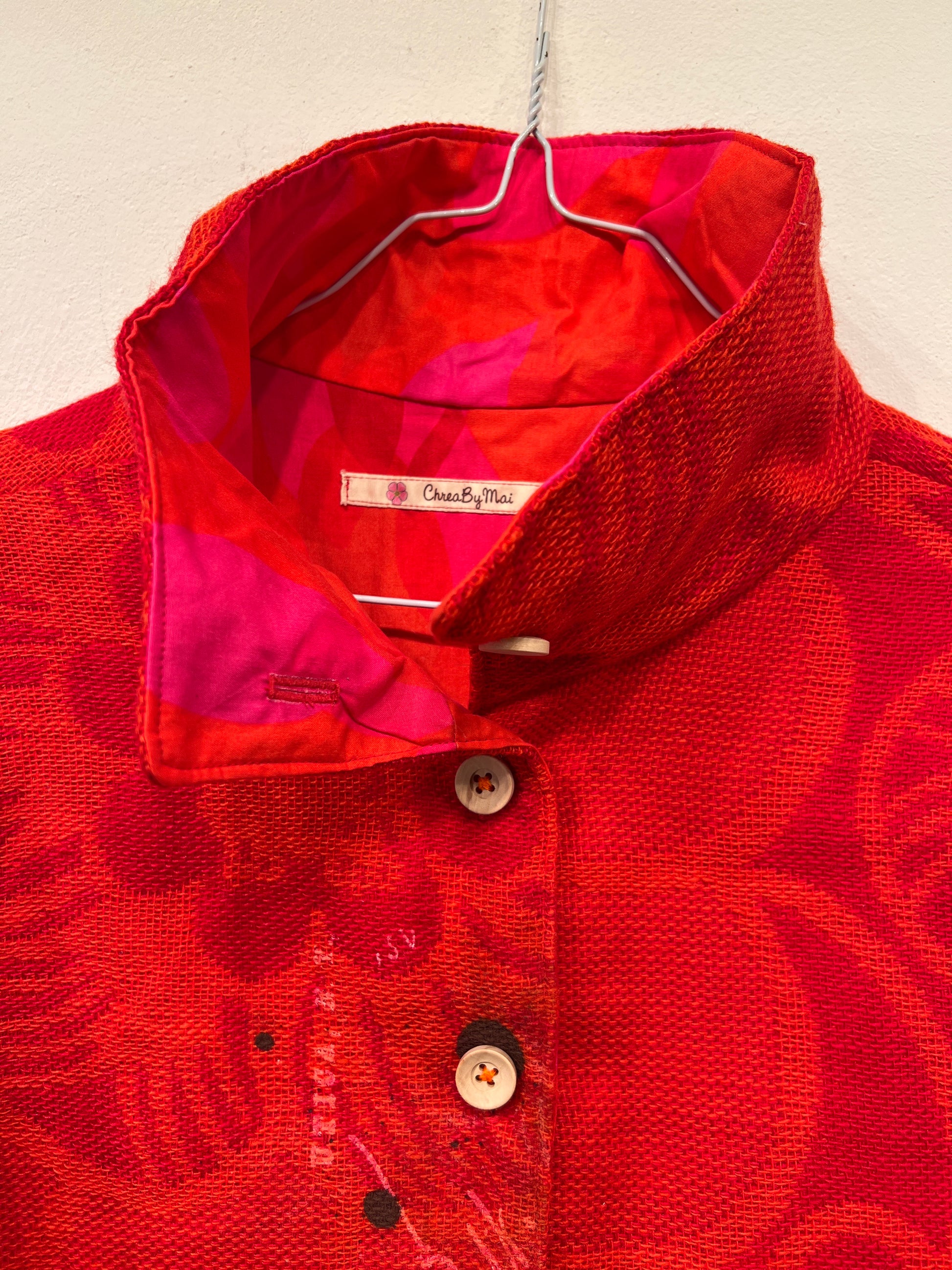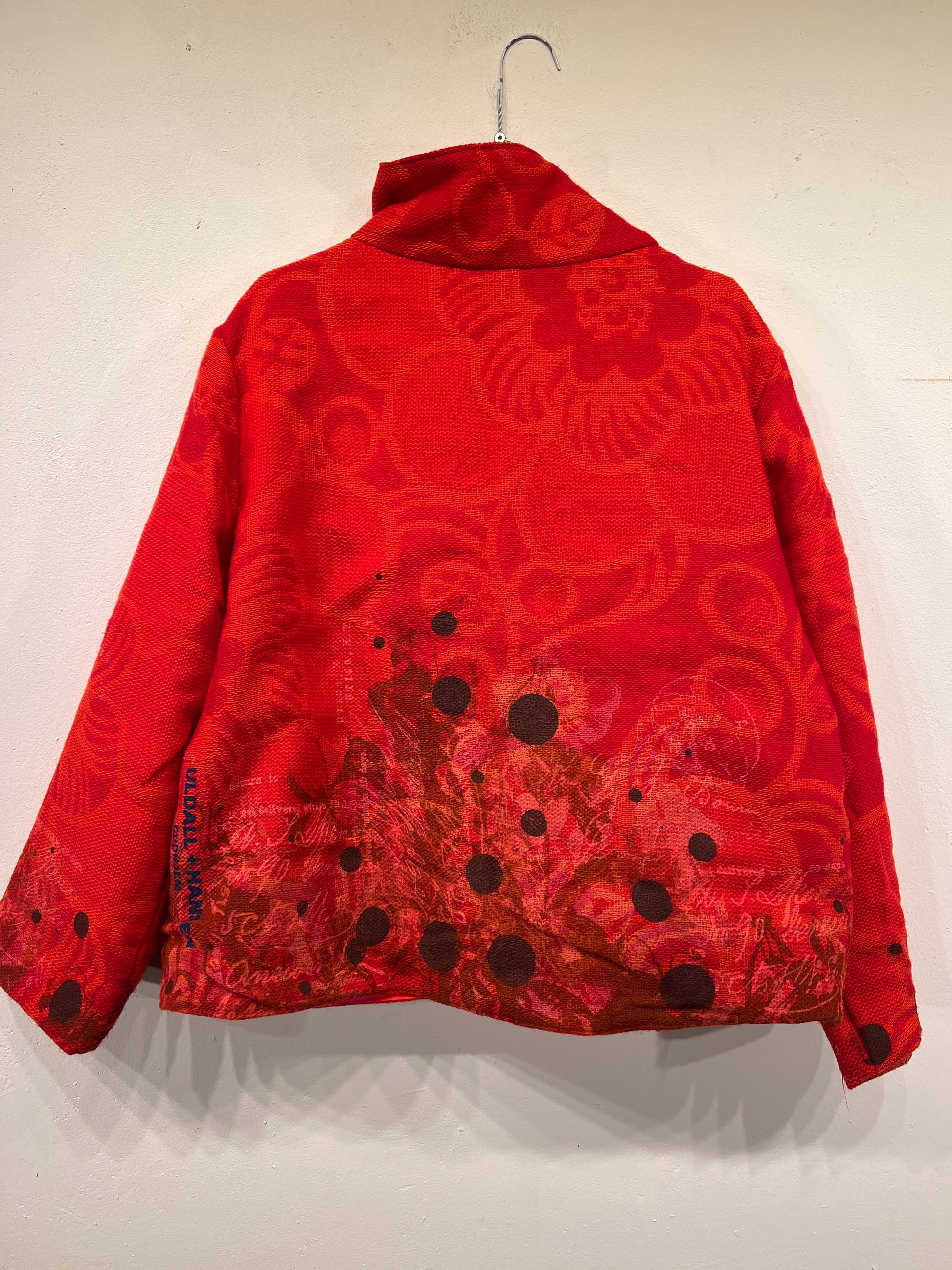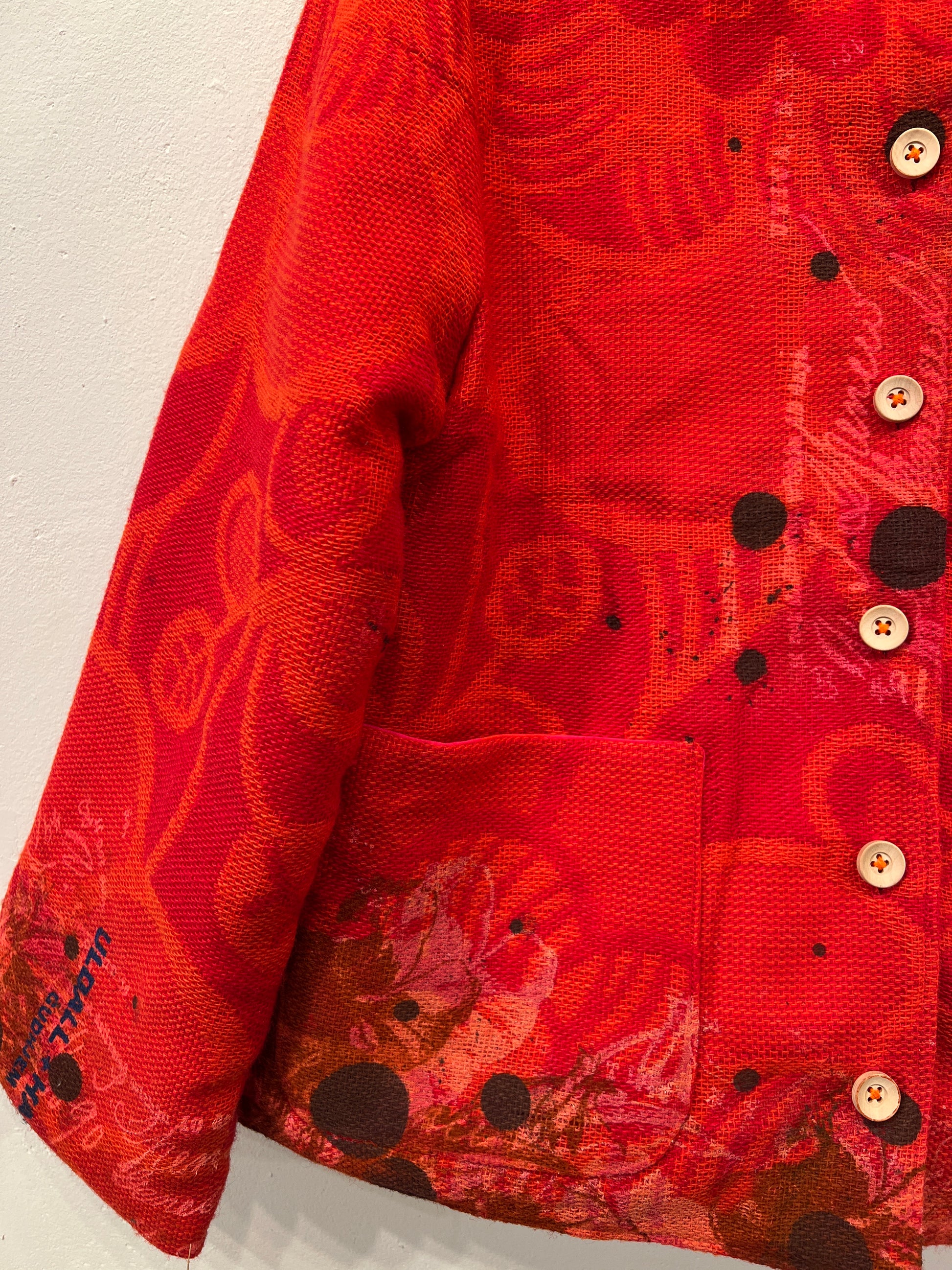 Resultatet er en bæredygtig og kunstnerisk fortolkning af den klassiske jakke, hvor håndværk, kreativitet og genbrug går op i en tidløs helhed.