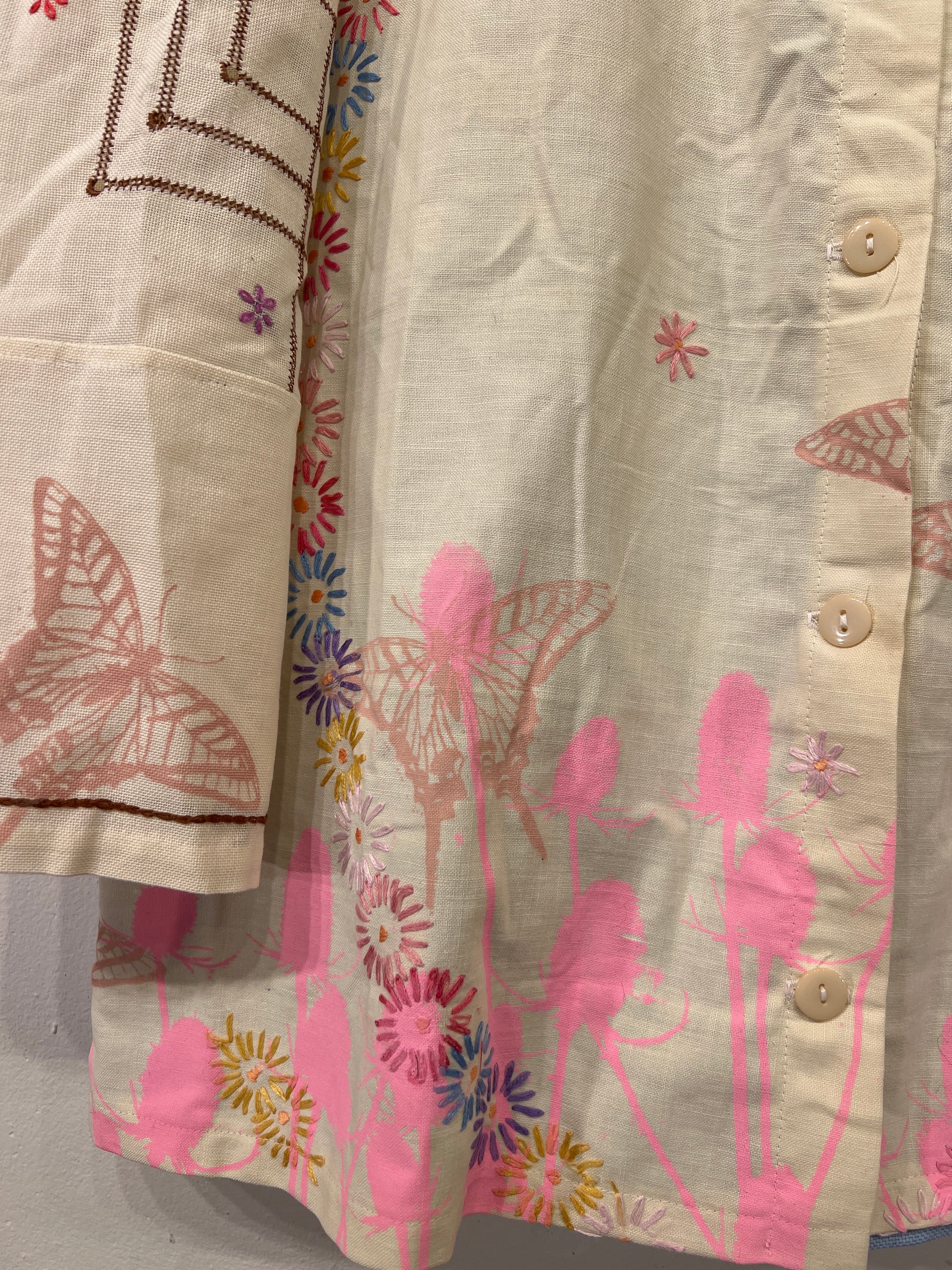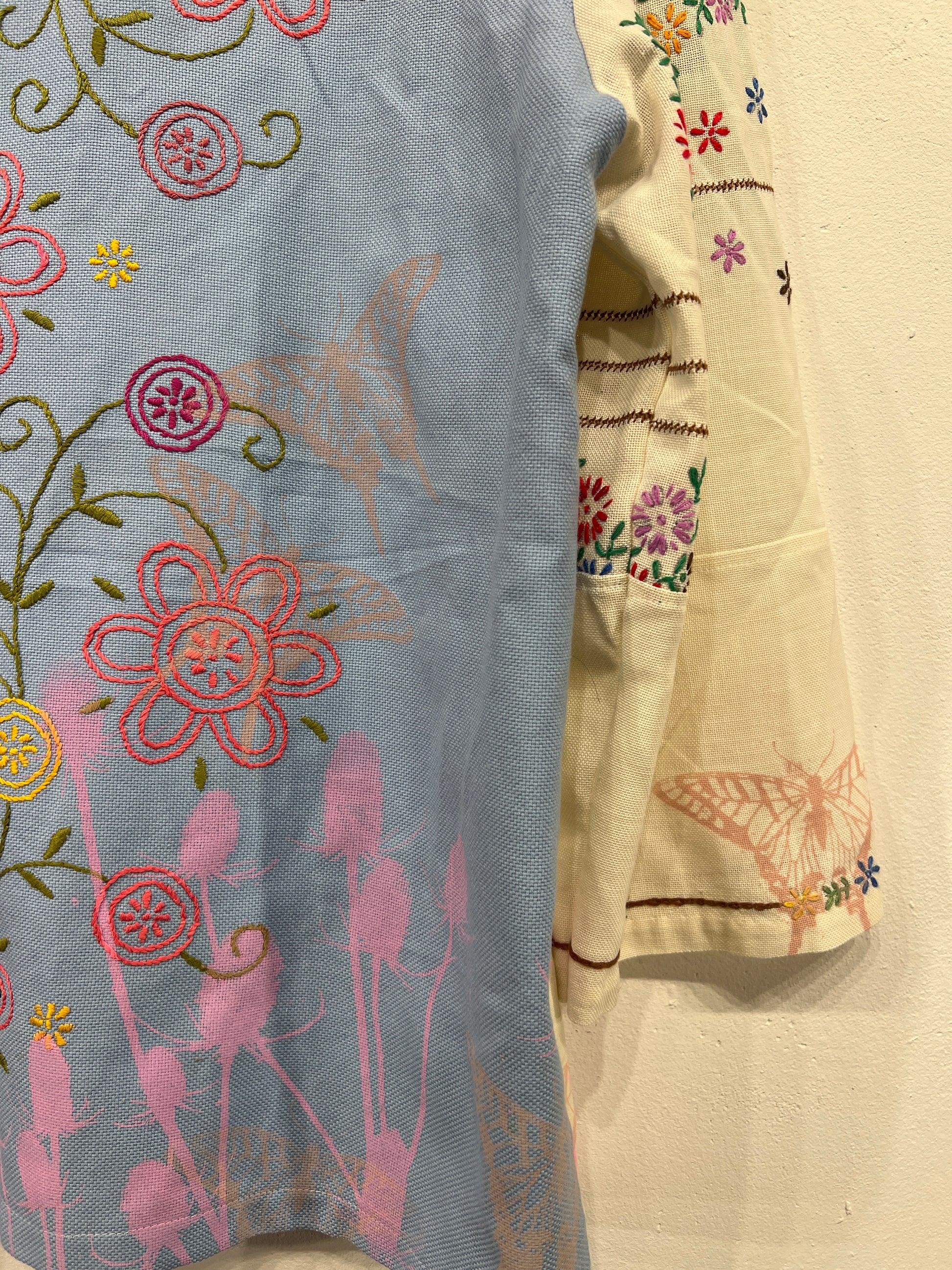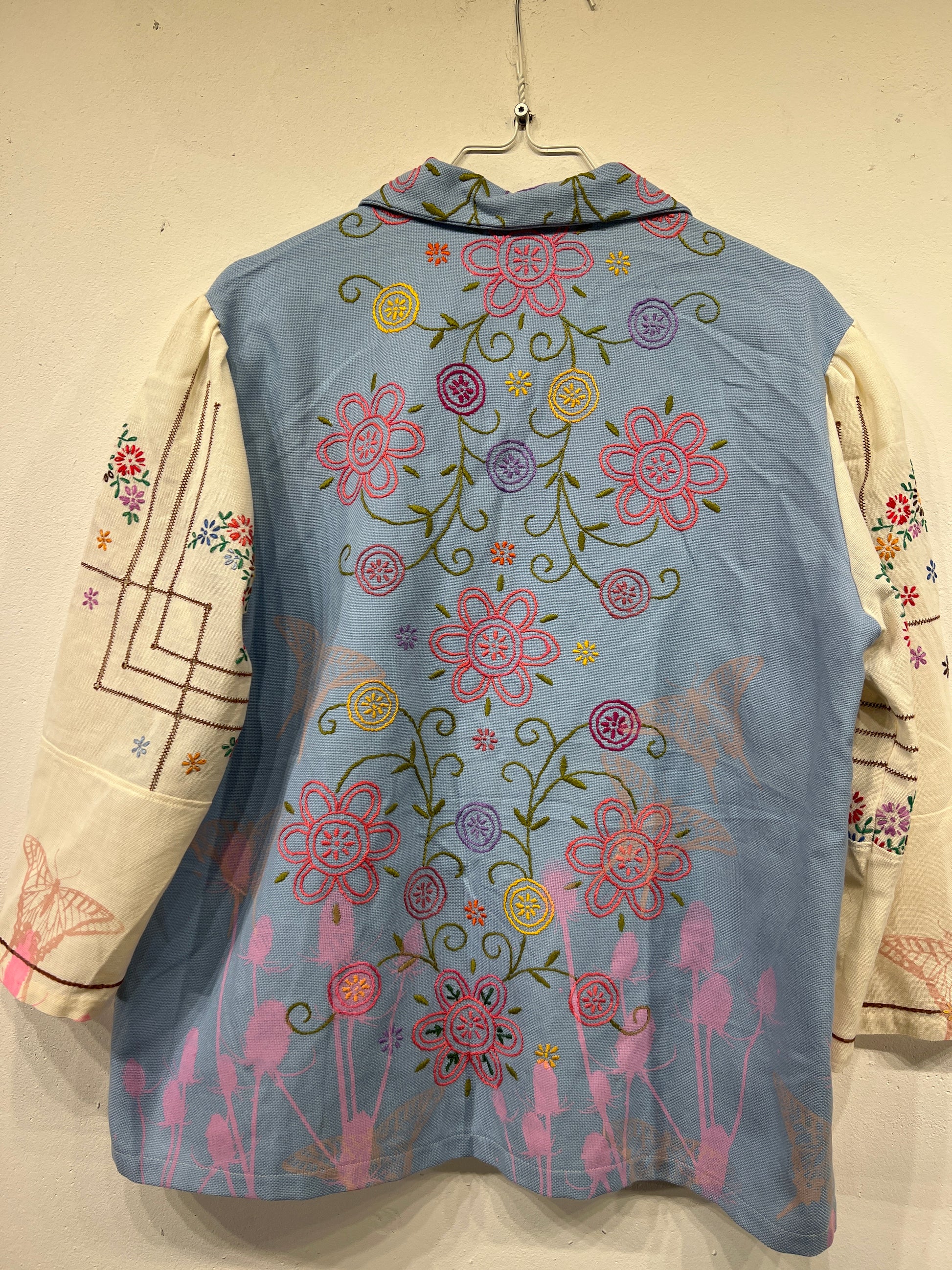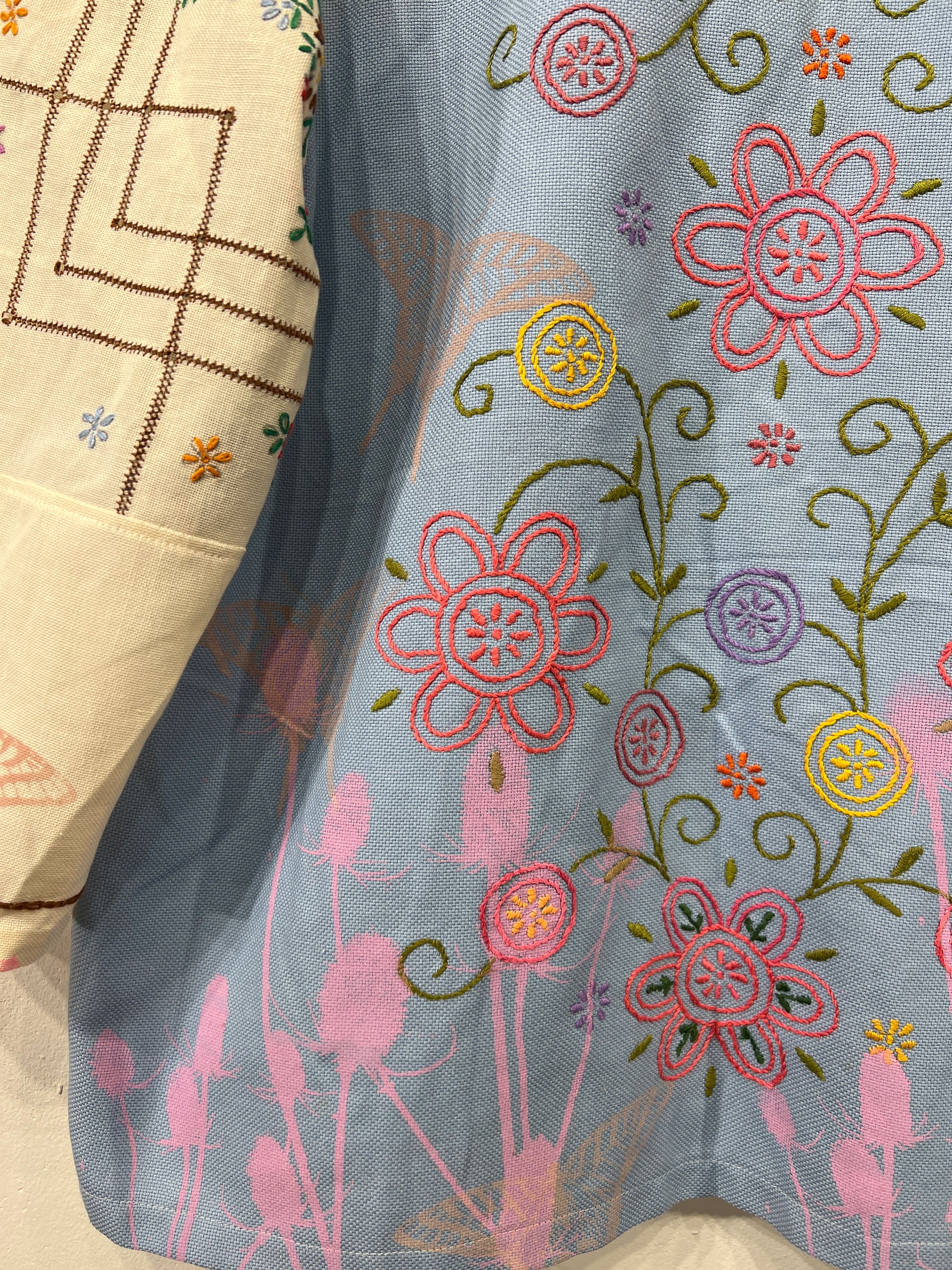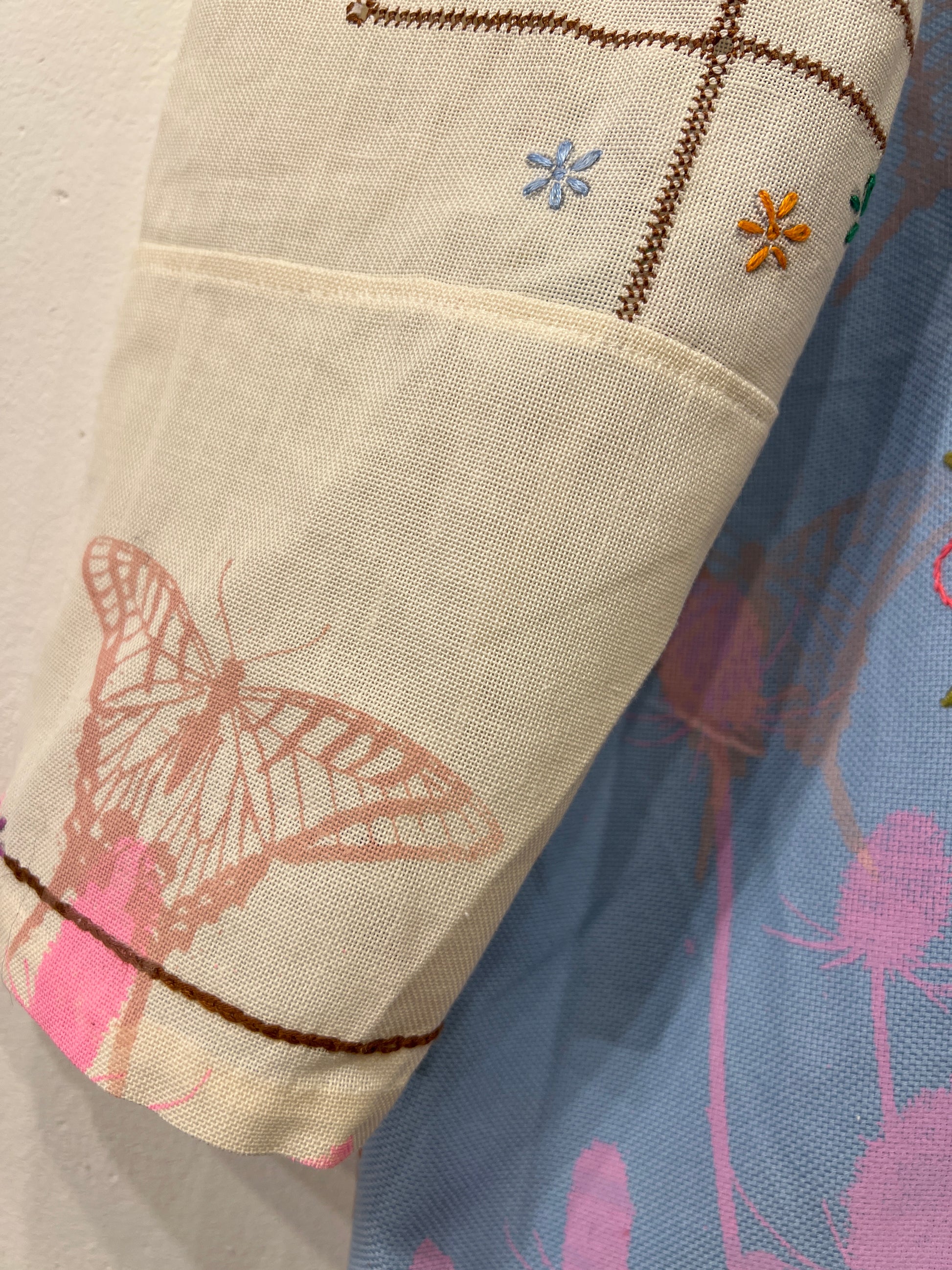 Resultatet er en bæredygtig og kunstnerisk fortolkning af den klassiske jakke, hvor håndværk, kreativitet og genbrug går op i en tidløs helhed.