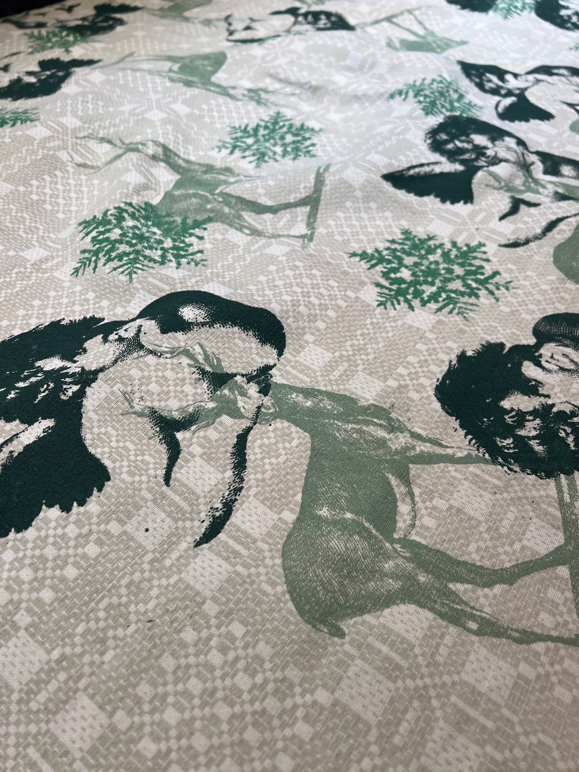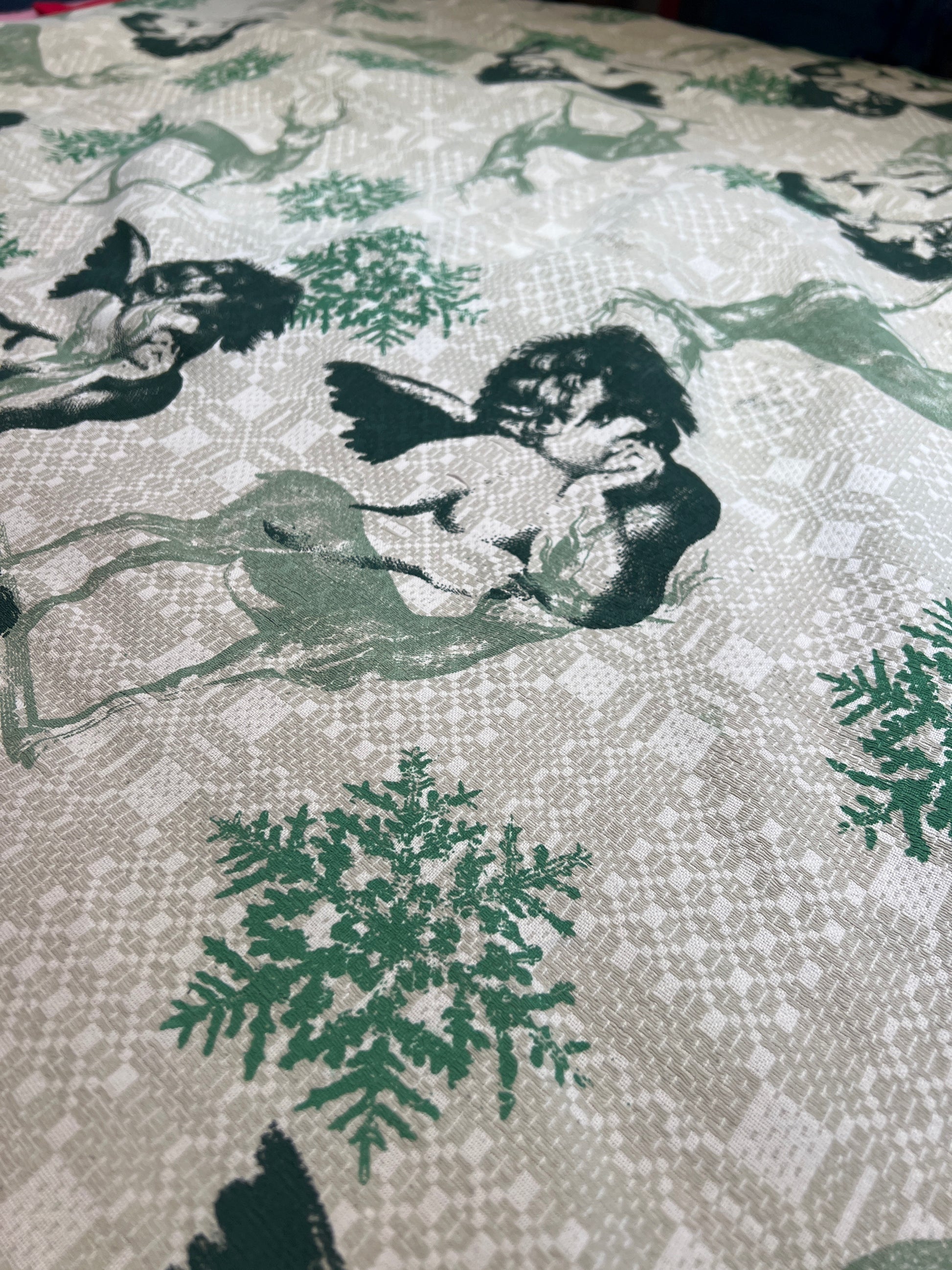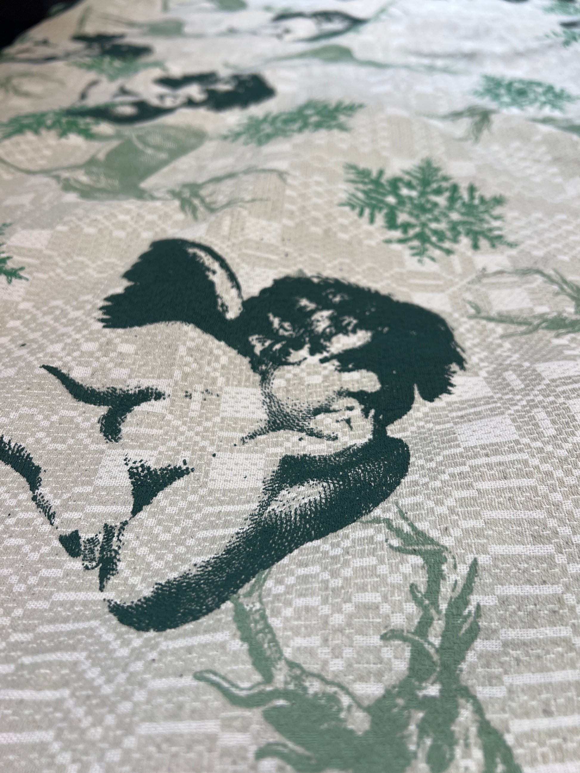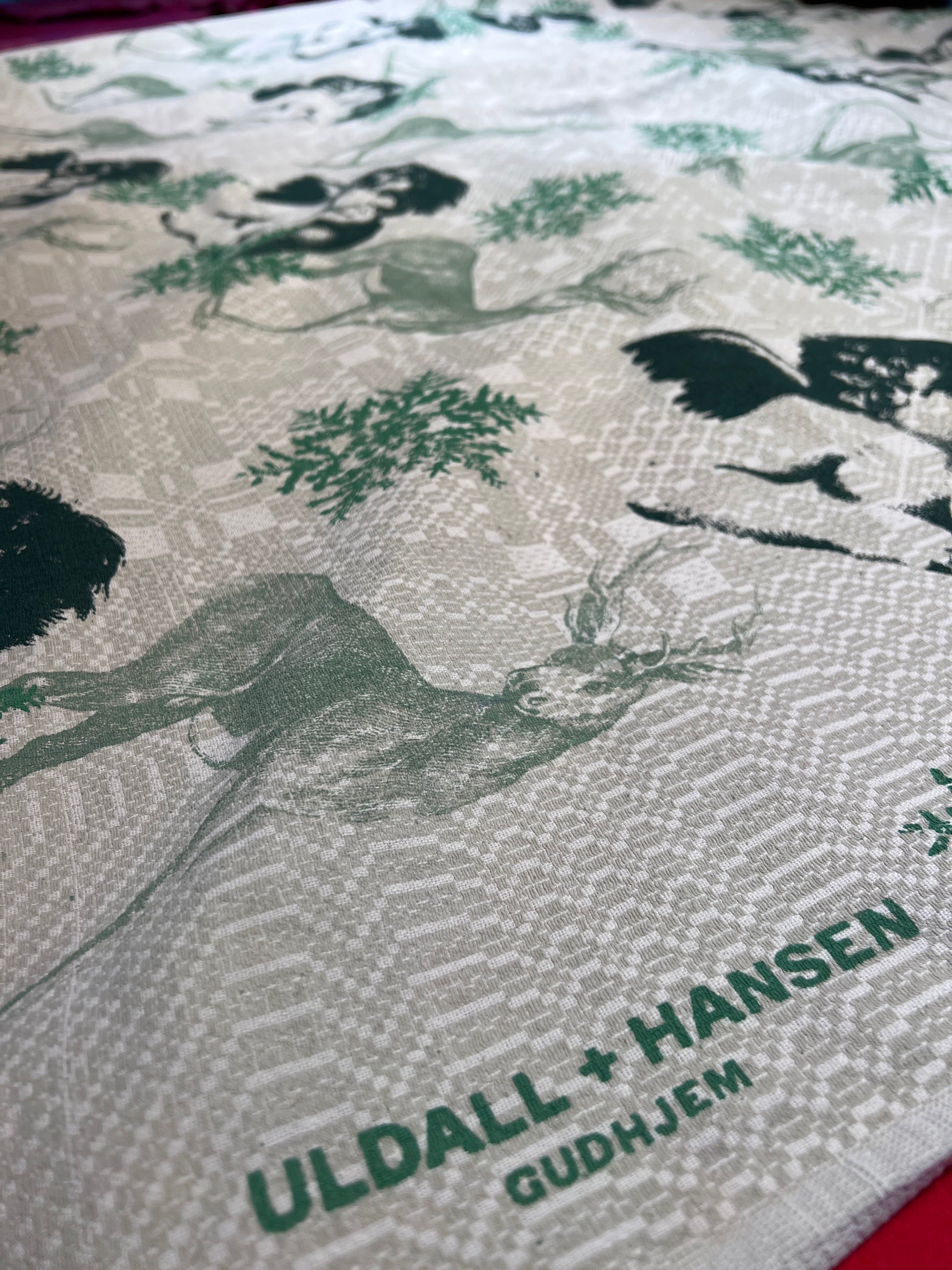 Håndtrykt dug ( gammel kvalitet s duge) med smukke motiver. Trykt på bomuld, der tåler vask på 40 -60 grader. Efter først at have stryget den, på højste varme.