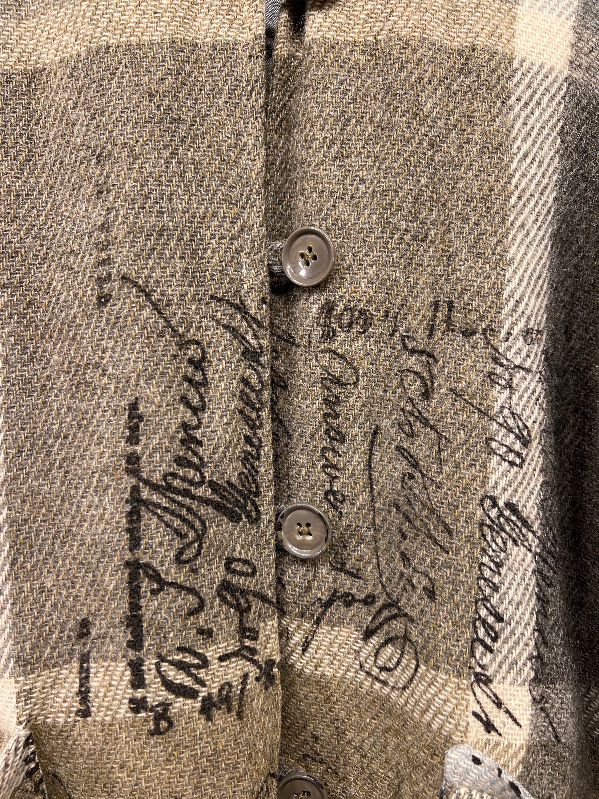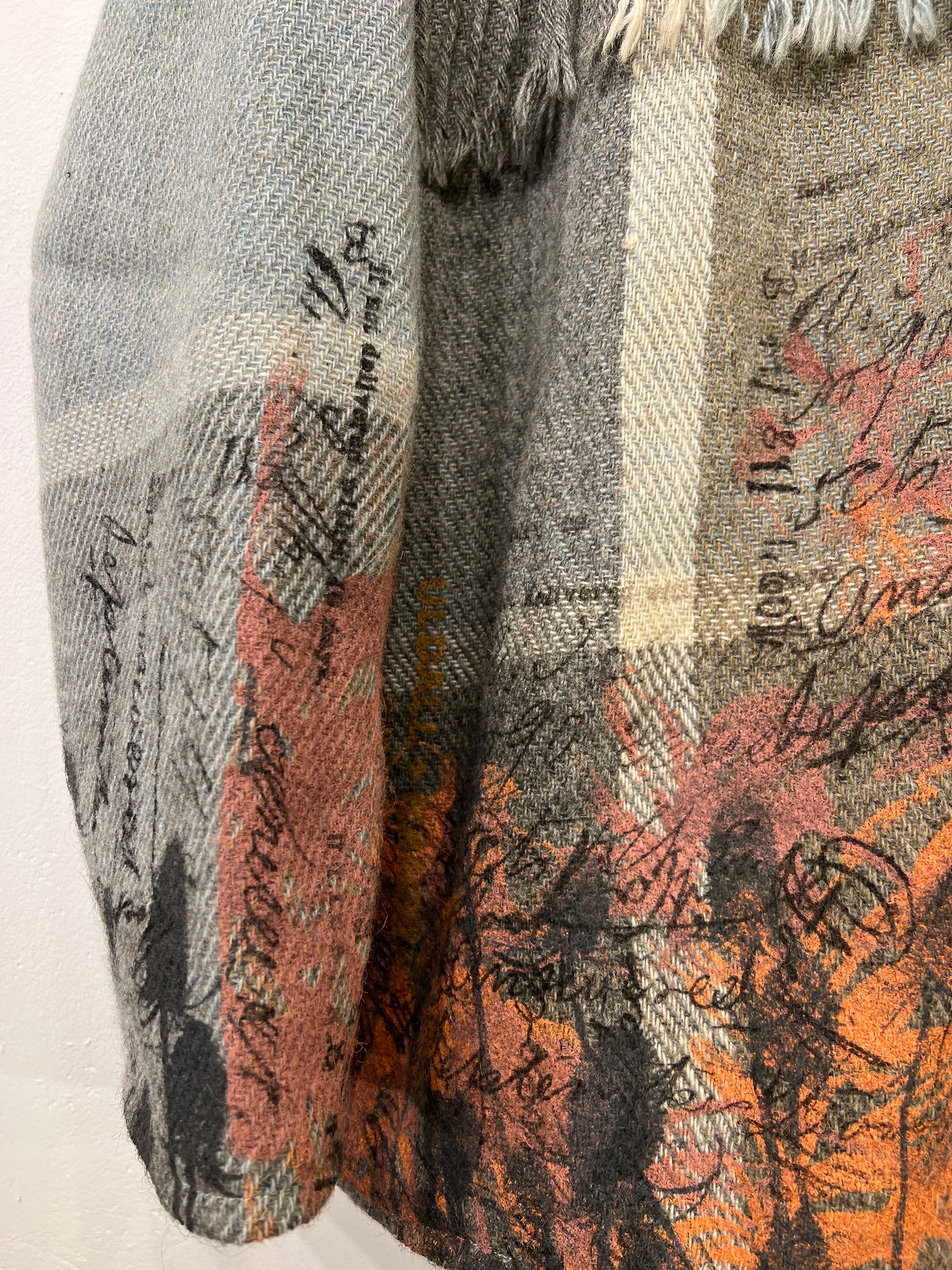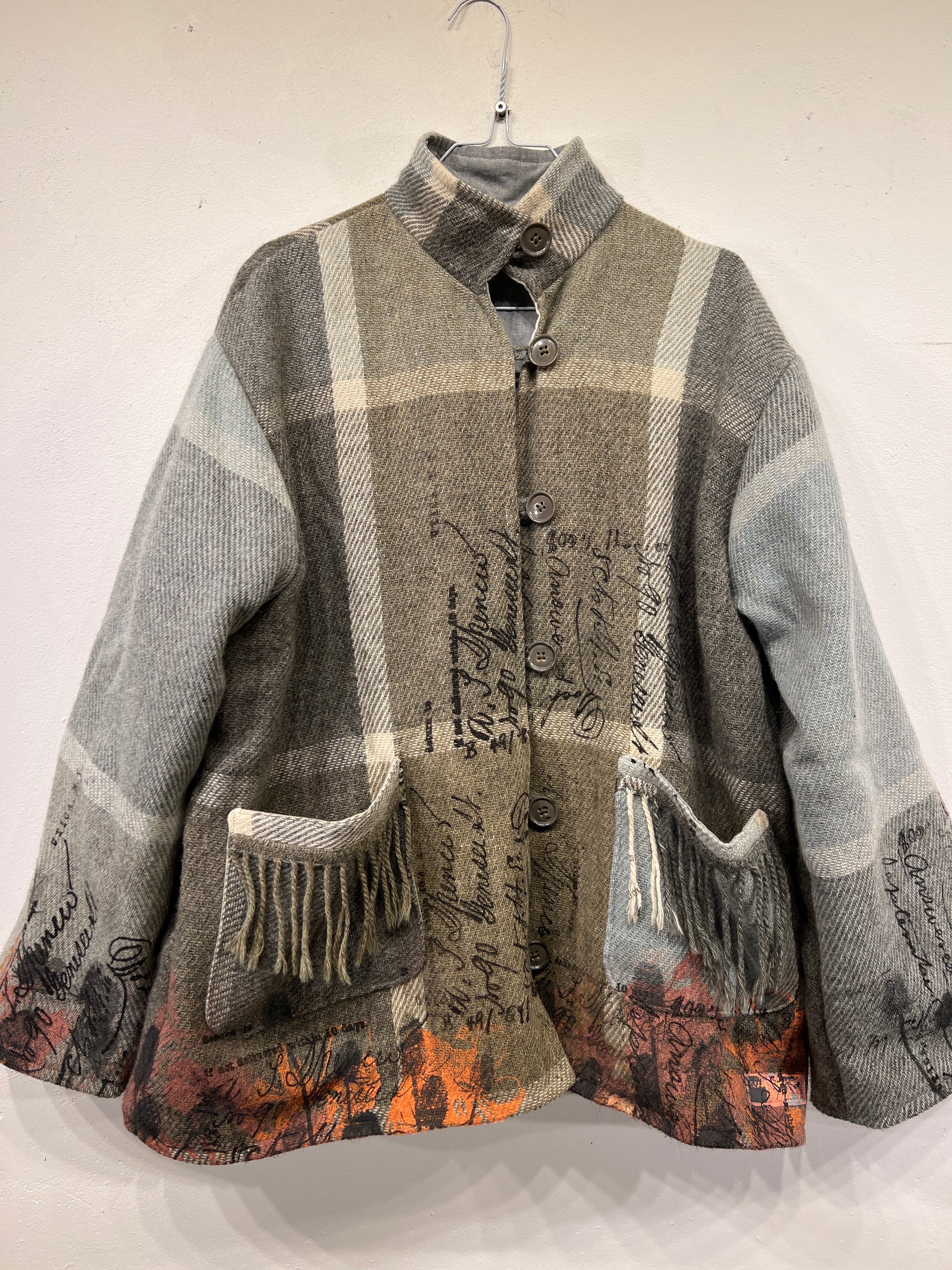 Resultatet er en bæredygtig og kunstnerisk fortolkning af den klassiske jakke, hvor håndværk, kreativitet og genbrug går op i en tidløs helhed.