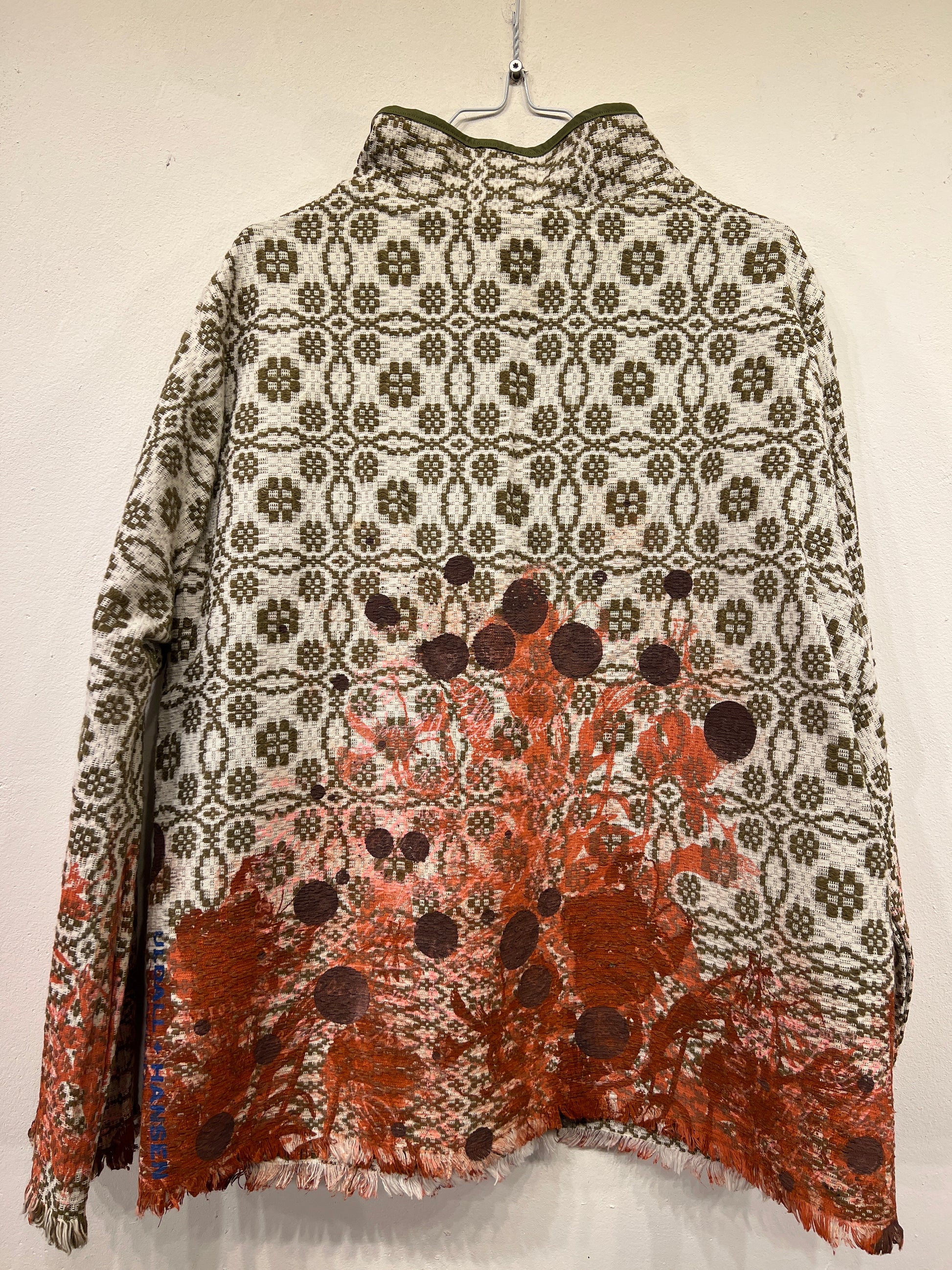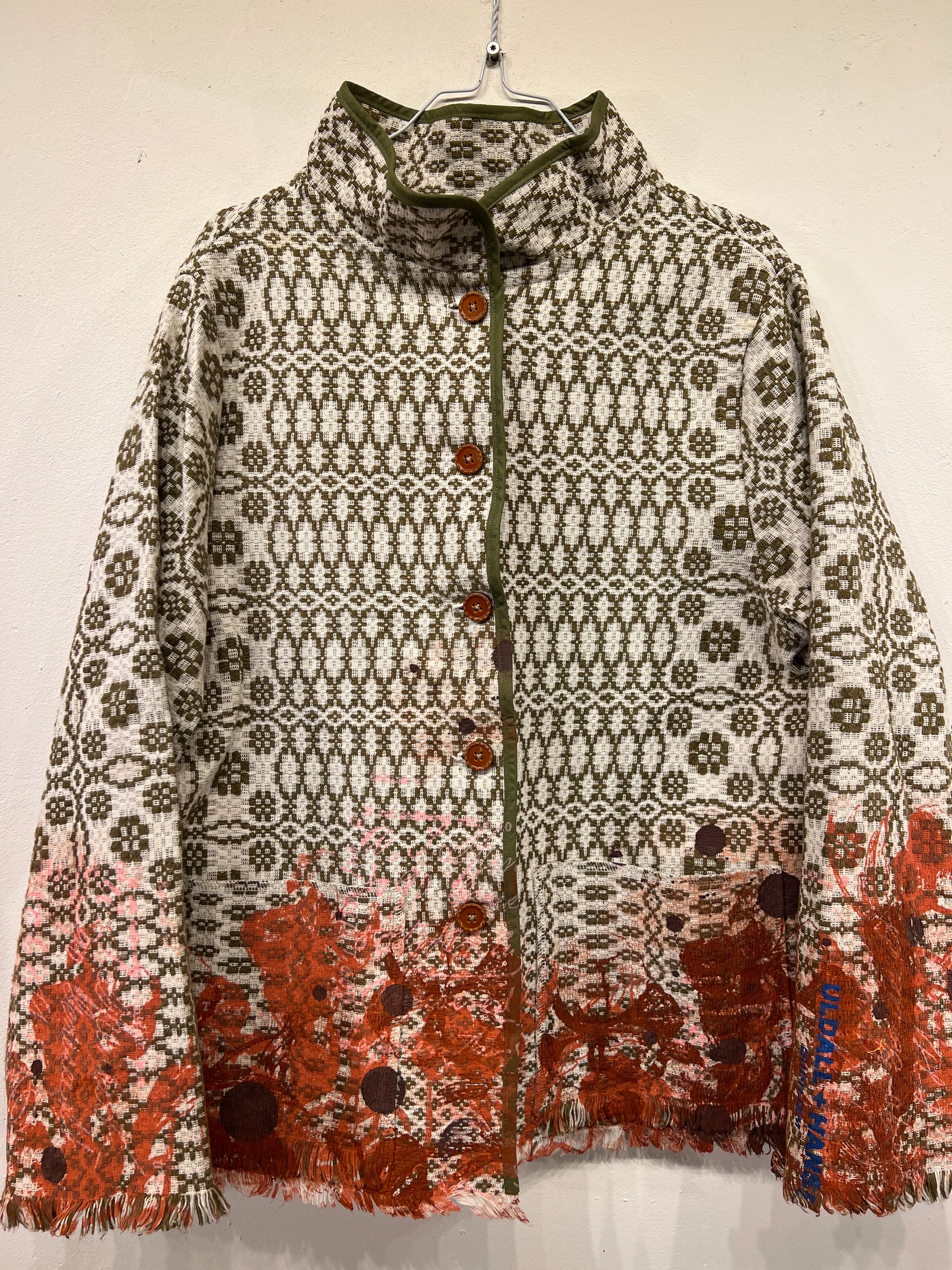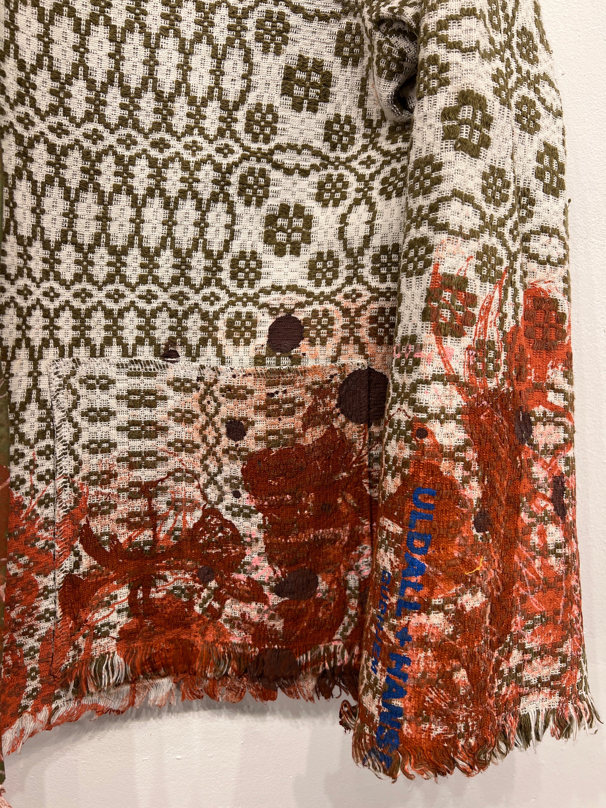 Resultatet er en bæredygtig og kunstnerisk fortolkning af den klassiske jakke, hvor håndværk, kreativitet og genbrug går op i en tidløs helhed.