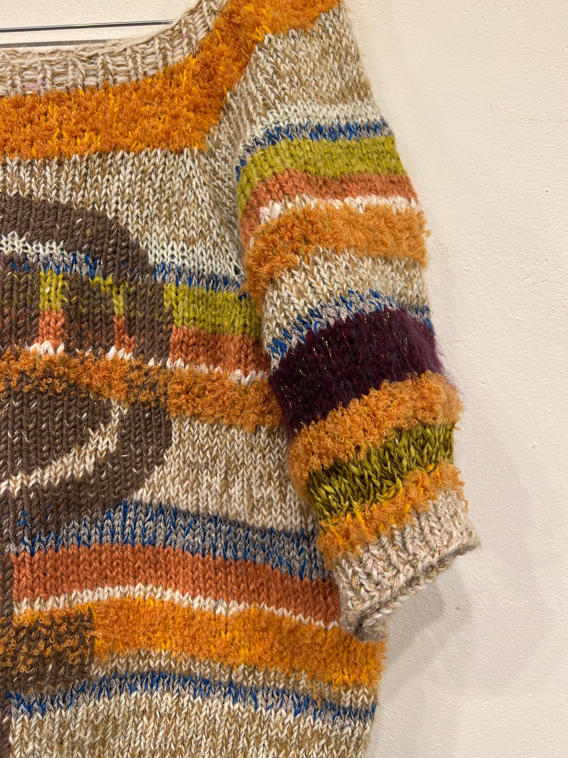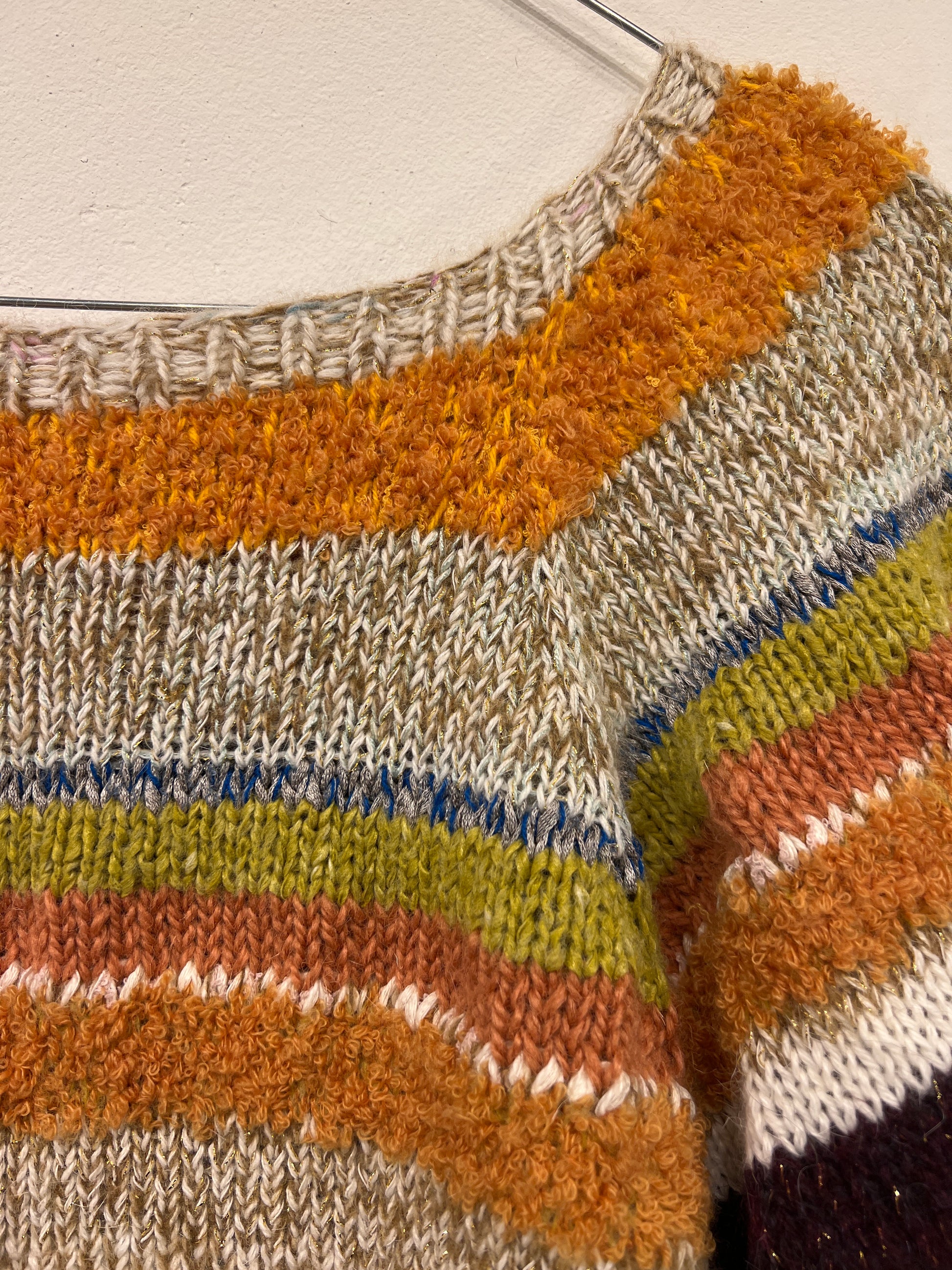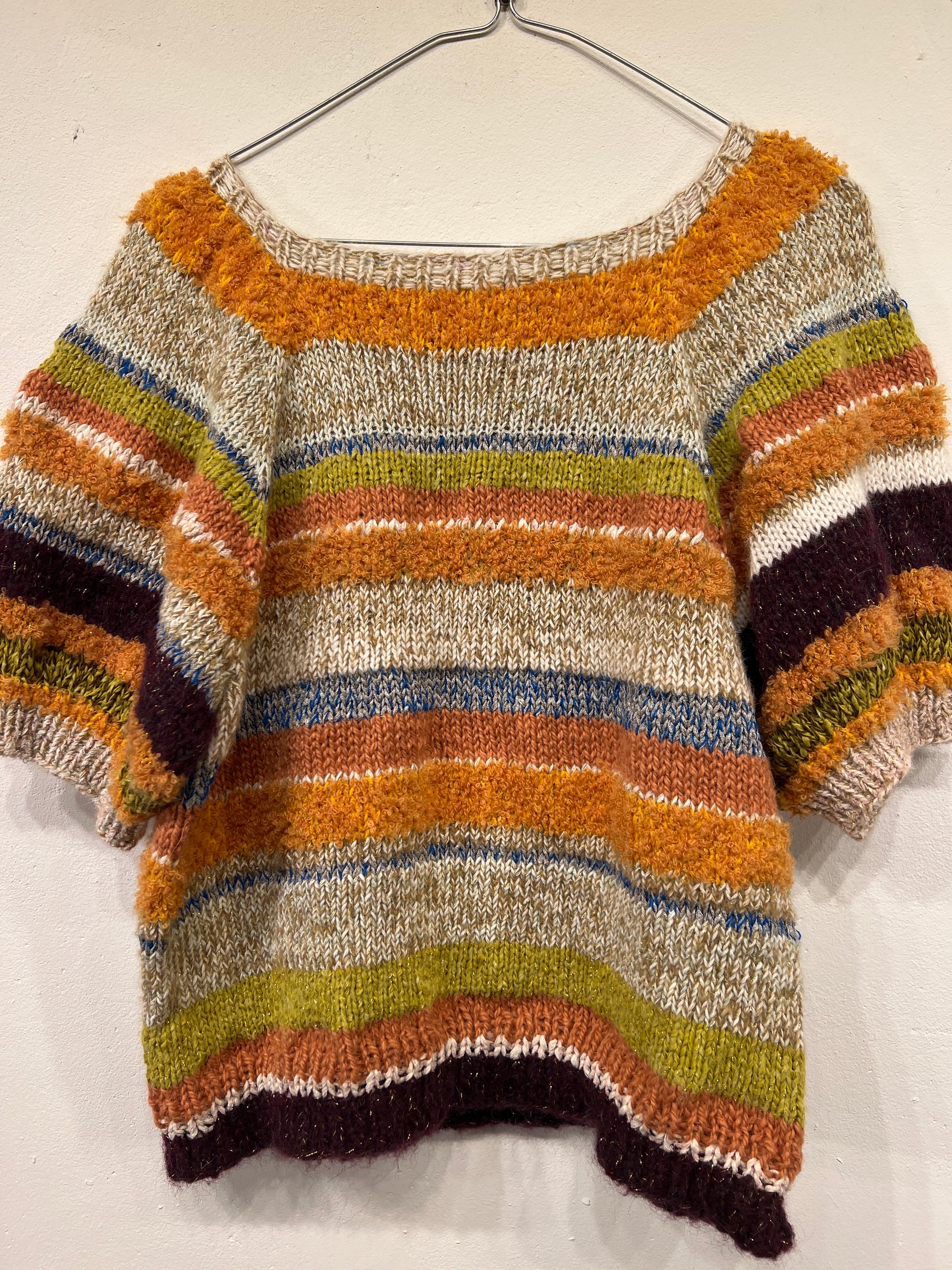 Unikt håndstrikket design, lavet af overskuds uld nøje udvalgt af mig, Jeanette.