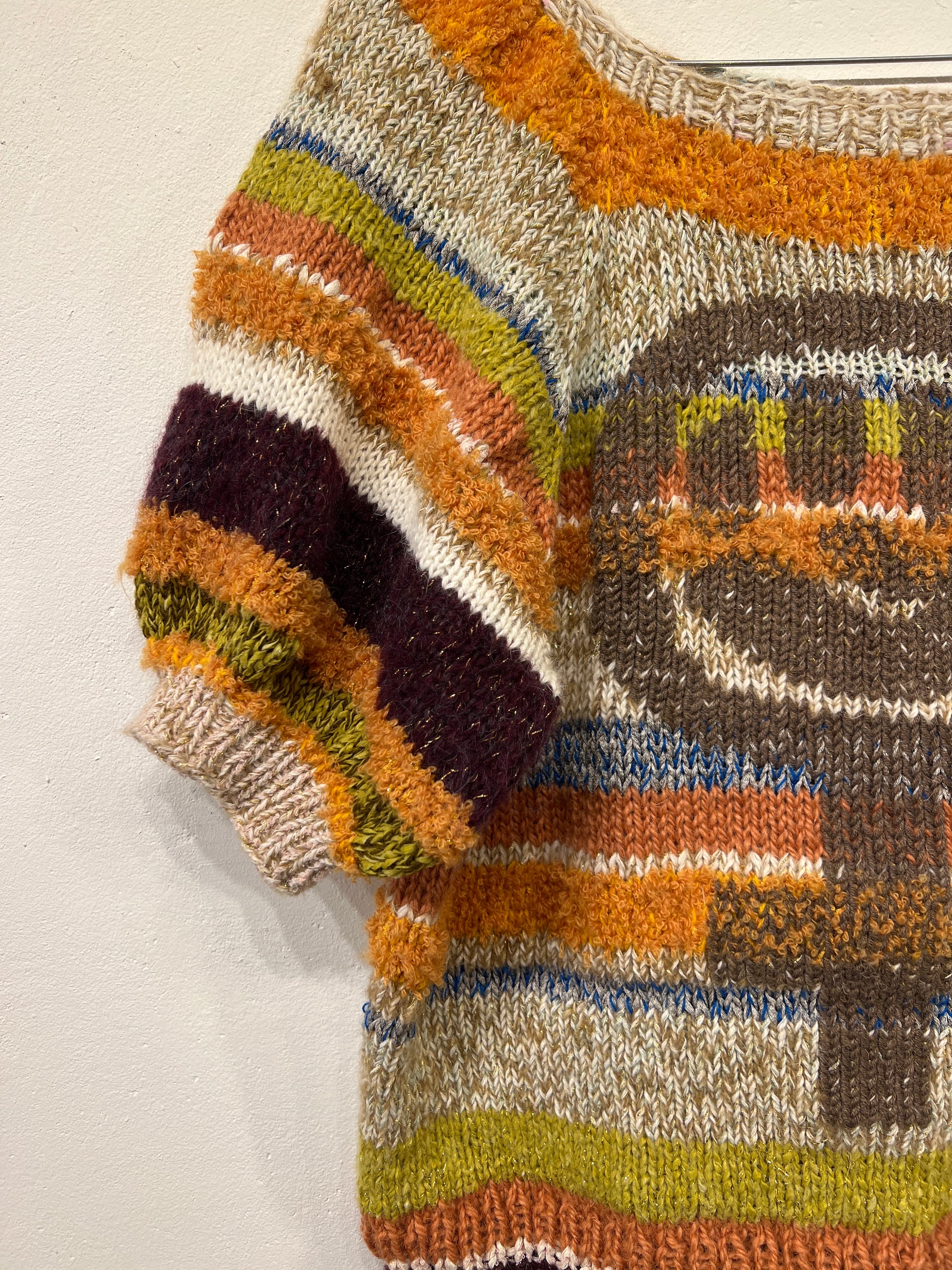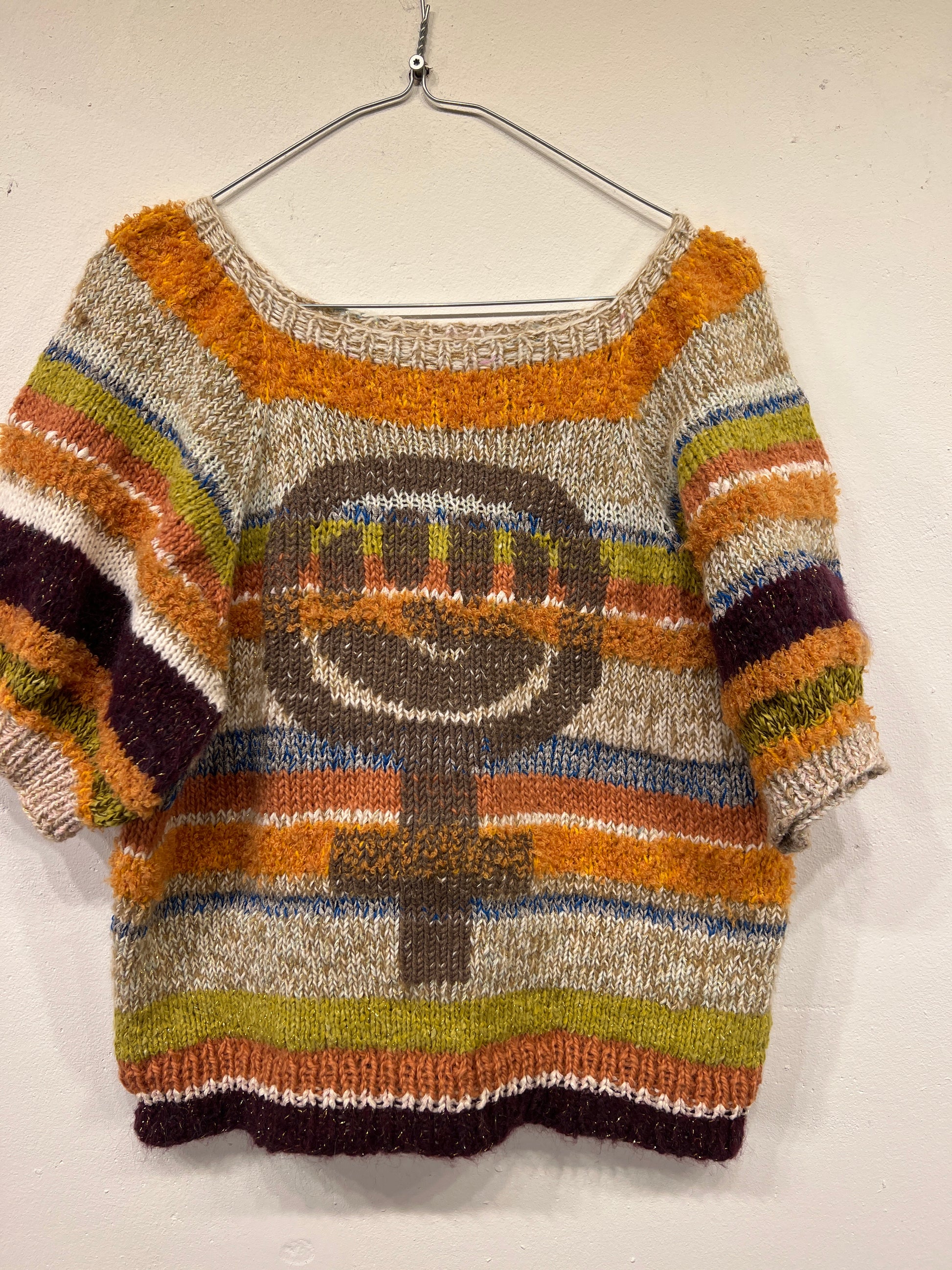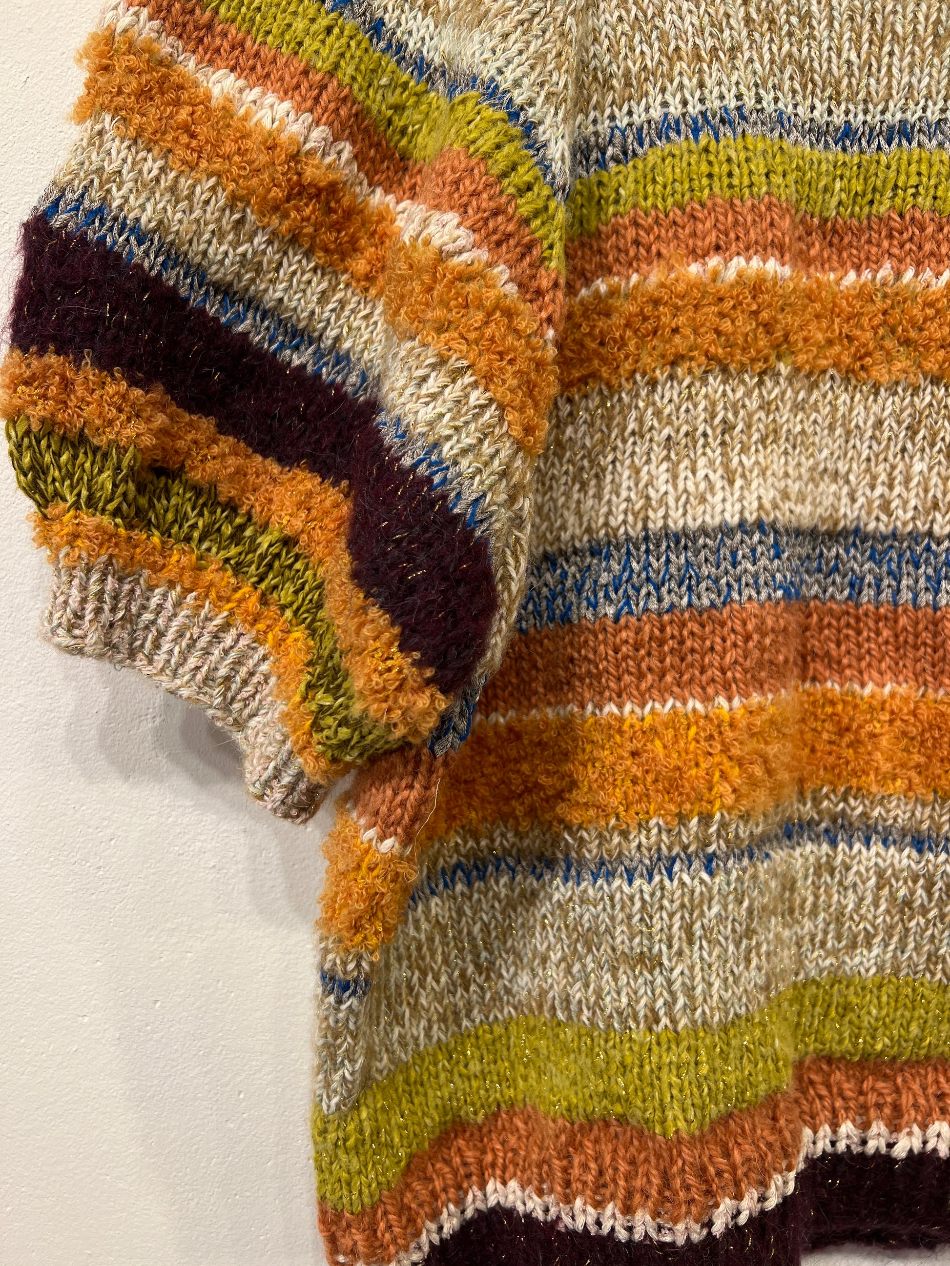 Unikt håndstrikket design, lavet af overskuds uld nøje udvalgt af mig, Jeanette.