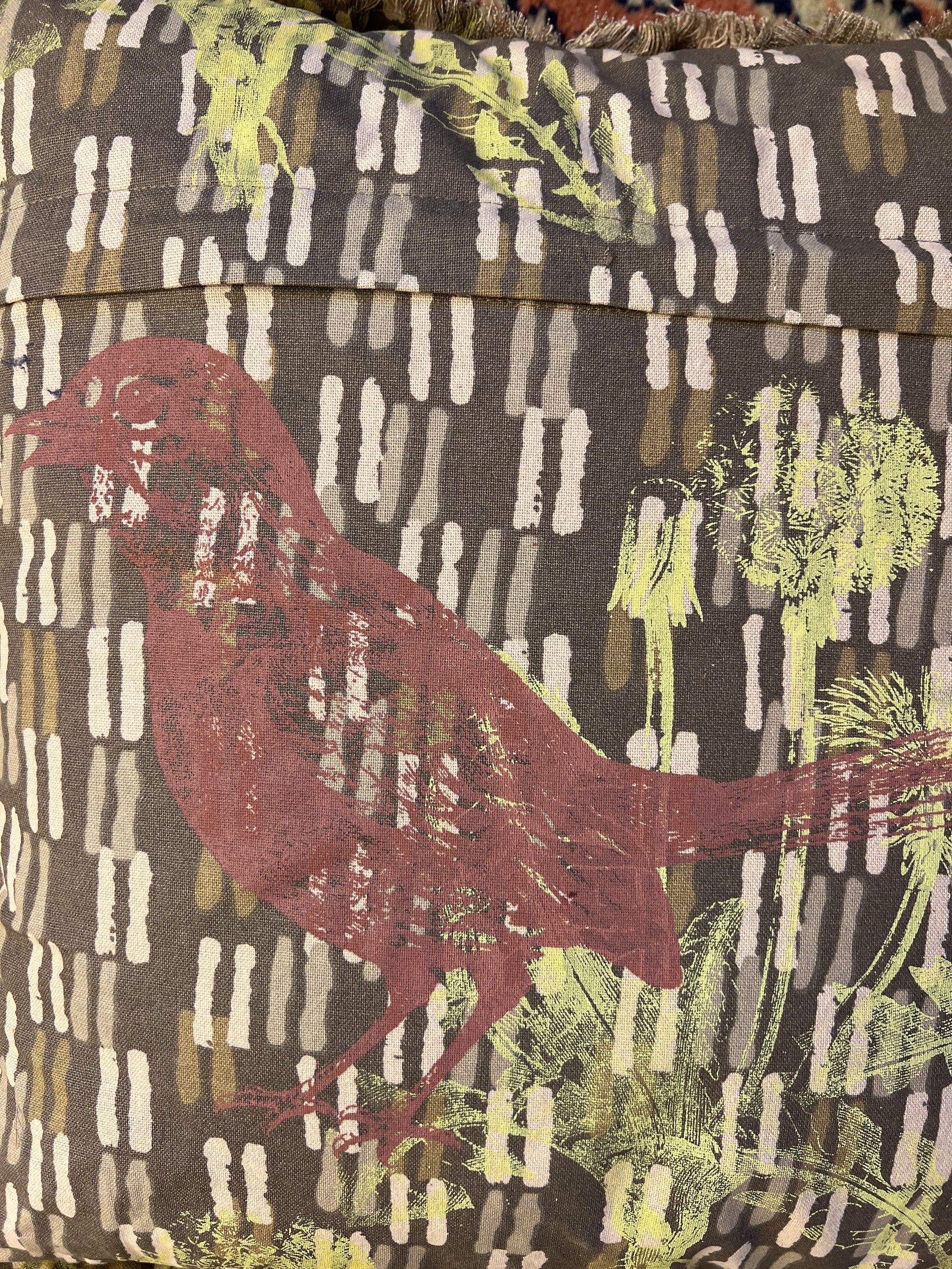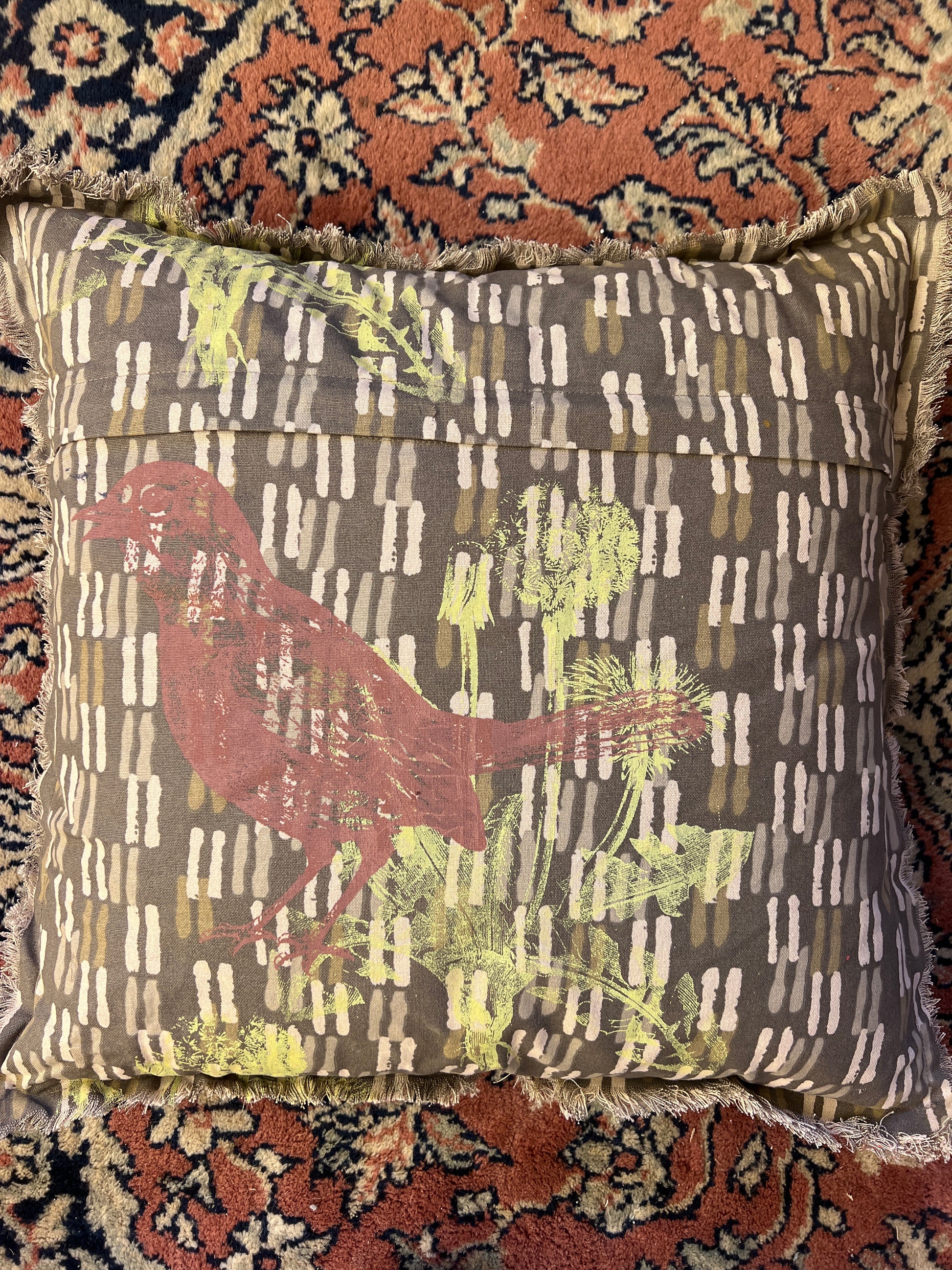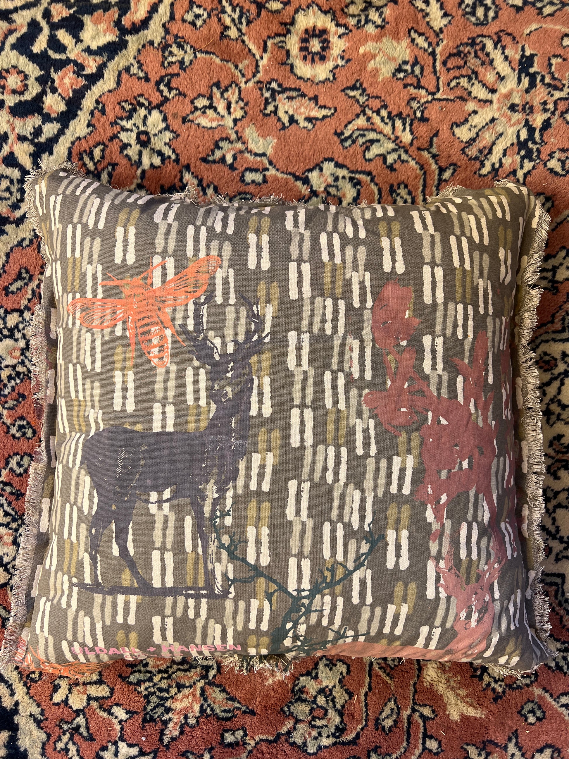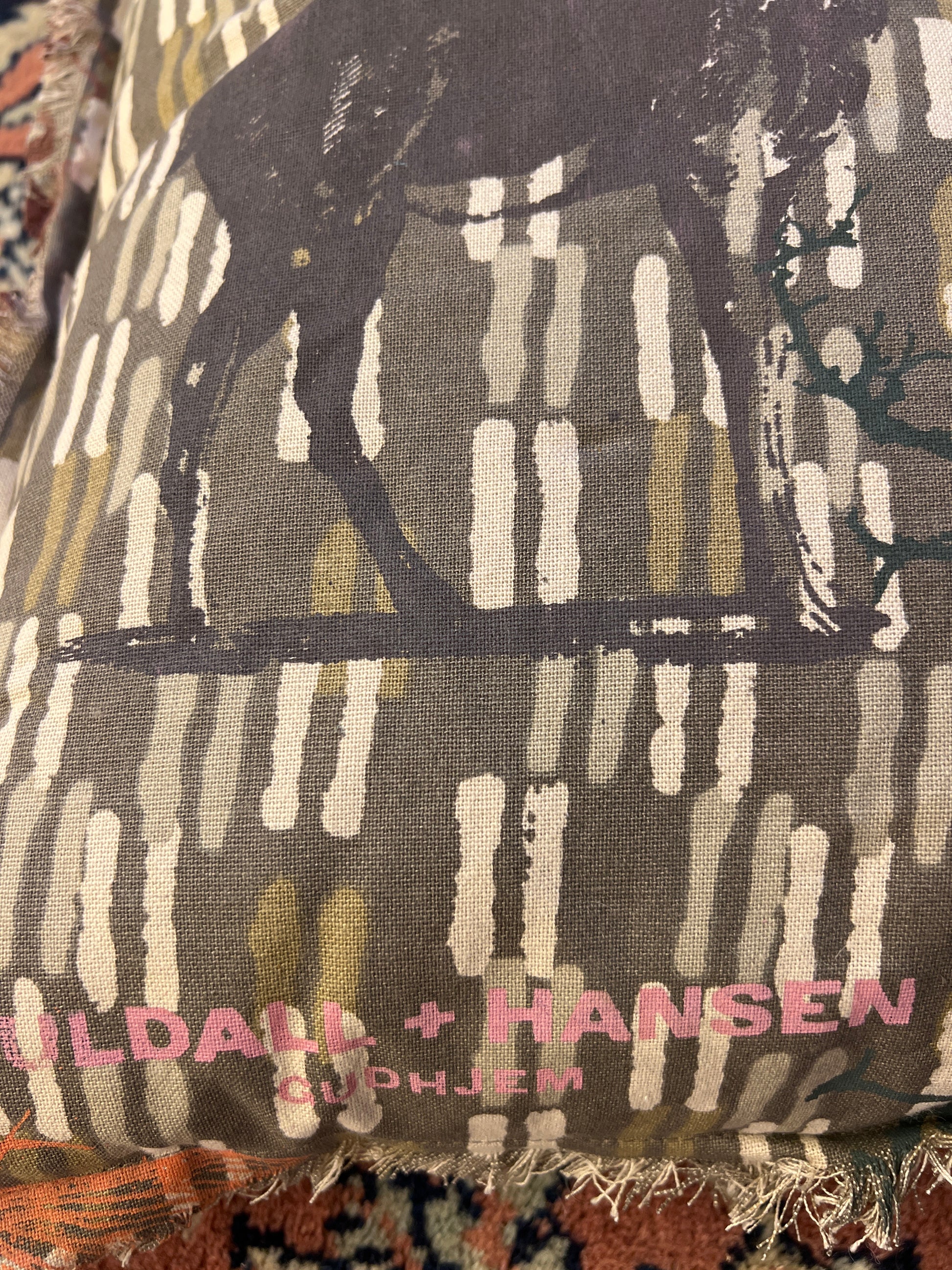 Håndtrykte pude på lækker bomuld. Har to forskellige sidder. Mål: 50x50 cm