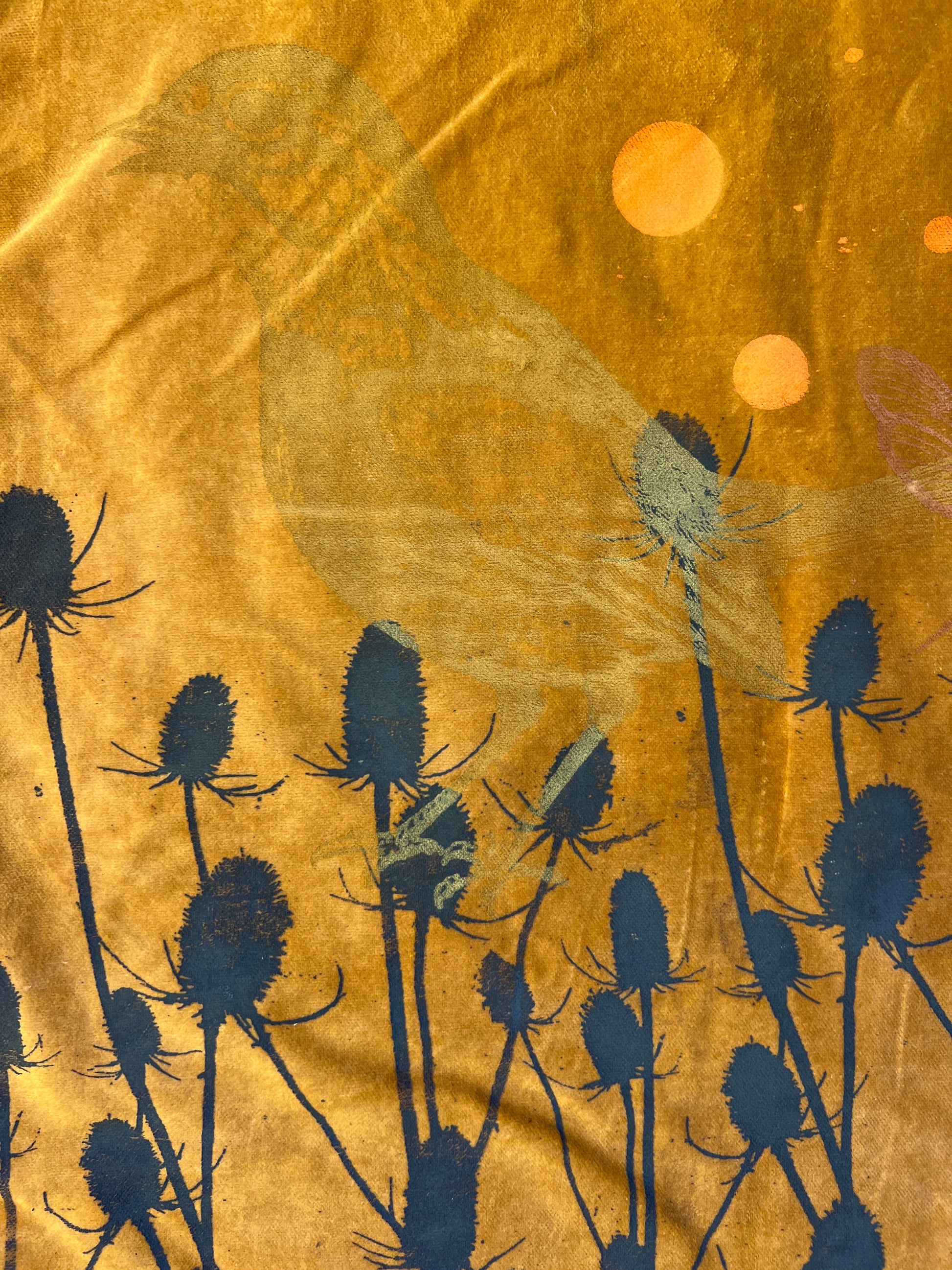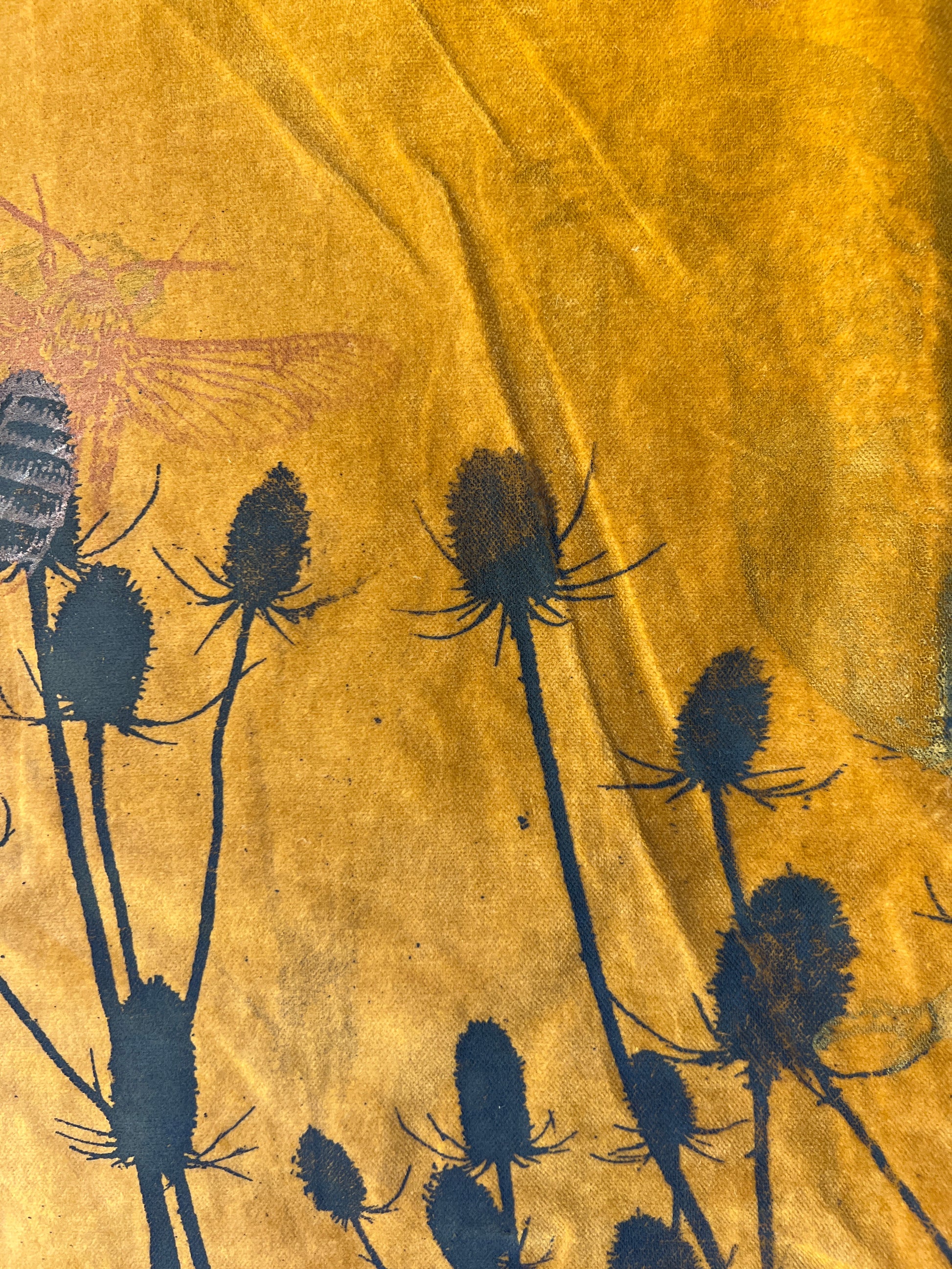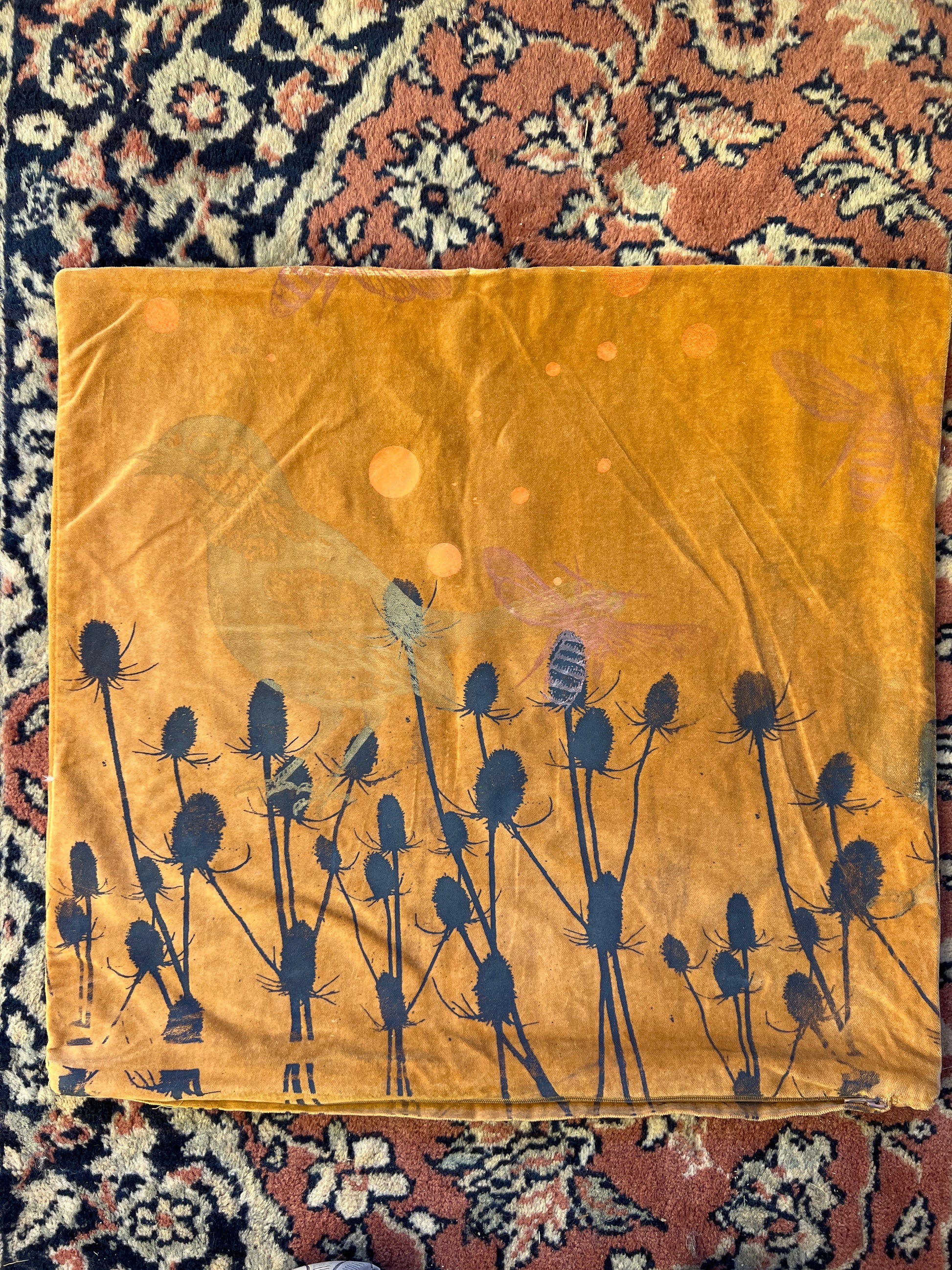 Håndtrykte pude på lækker bomuld. Har to forskellige sidder. Mål: 50x50 cm