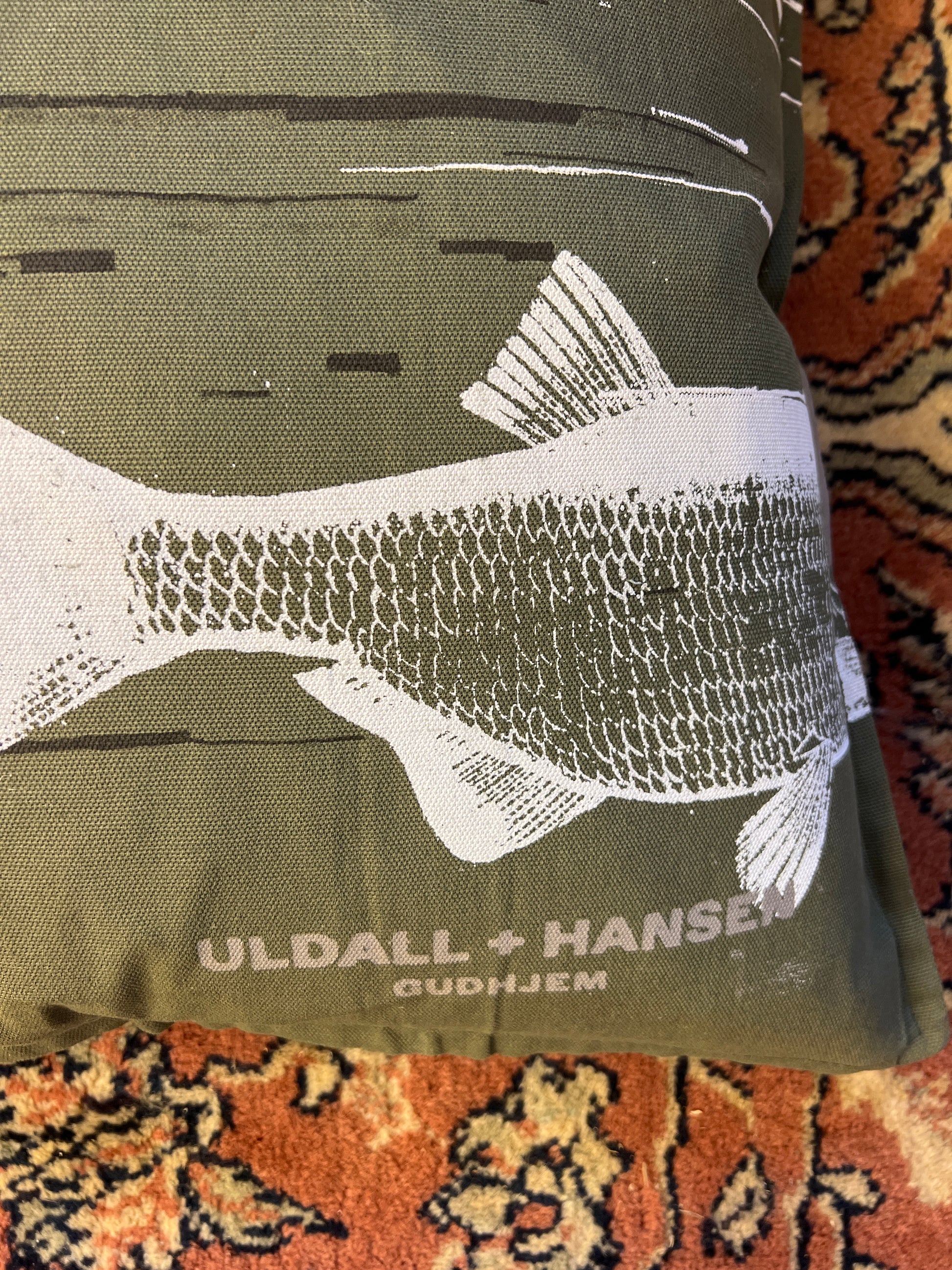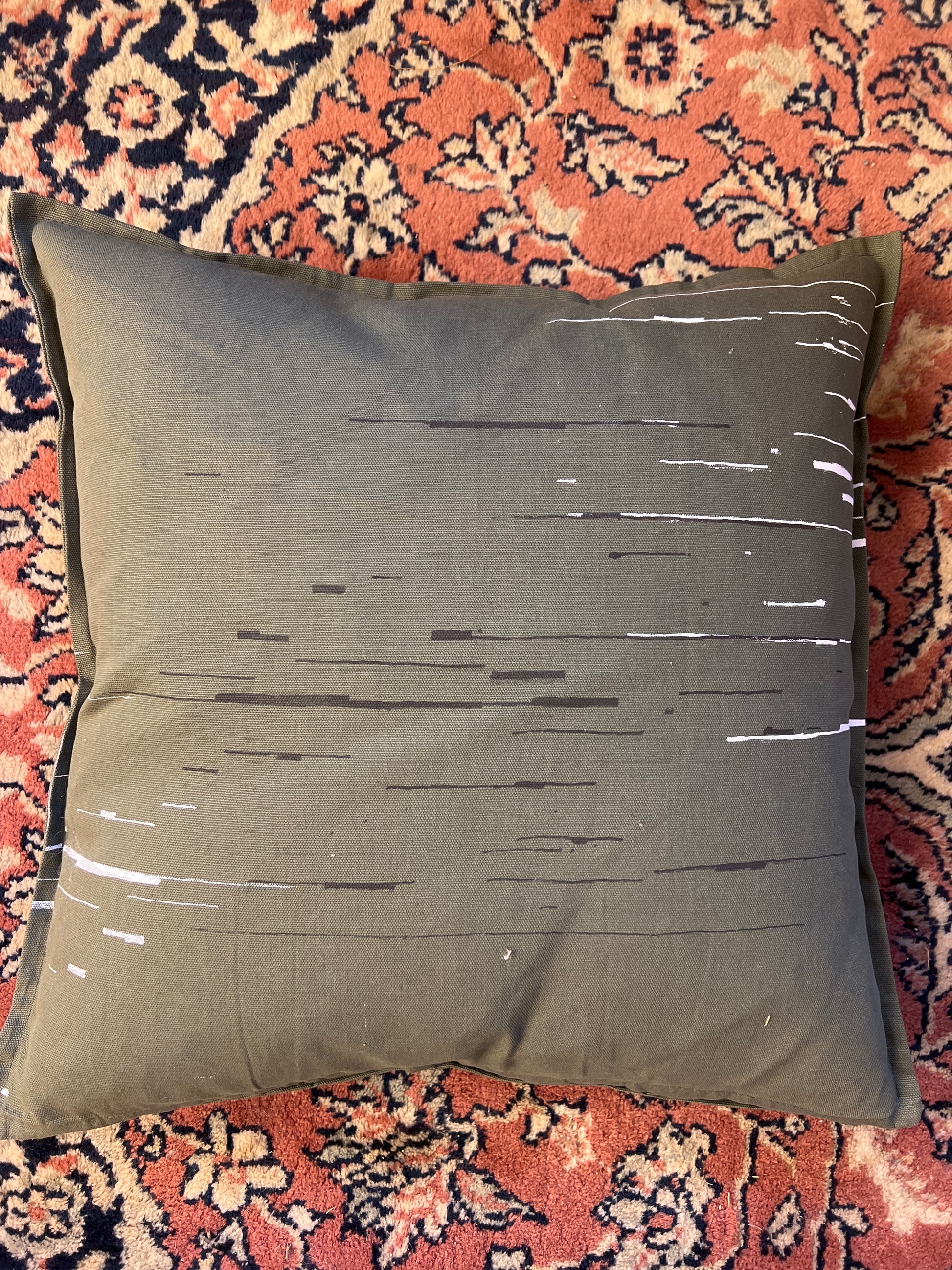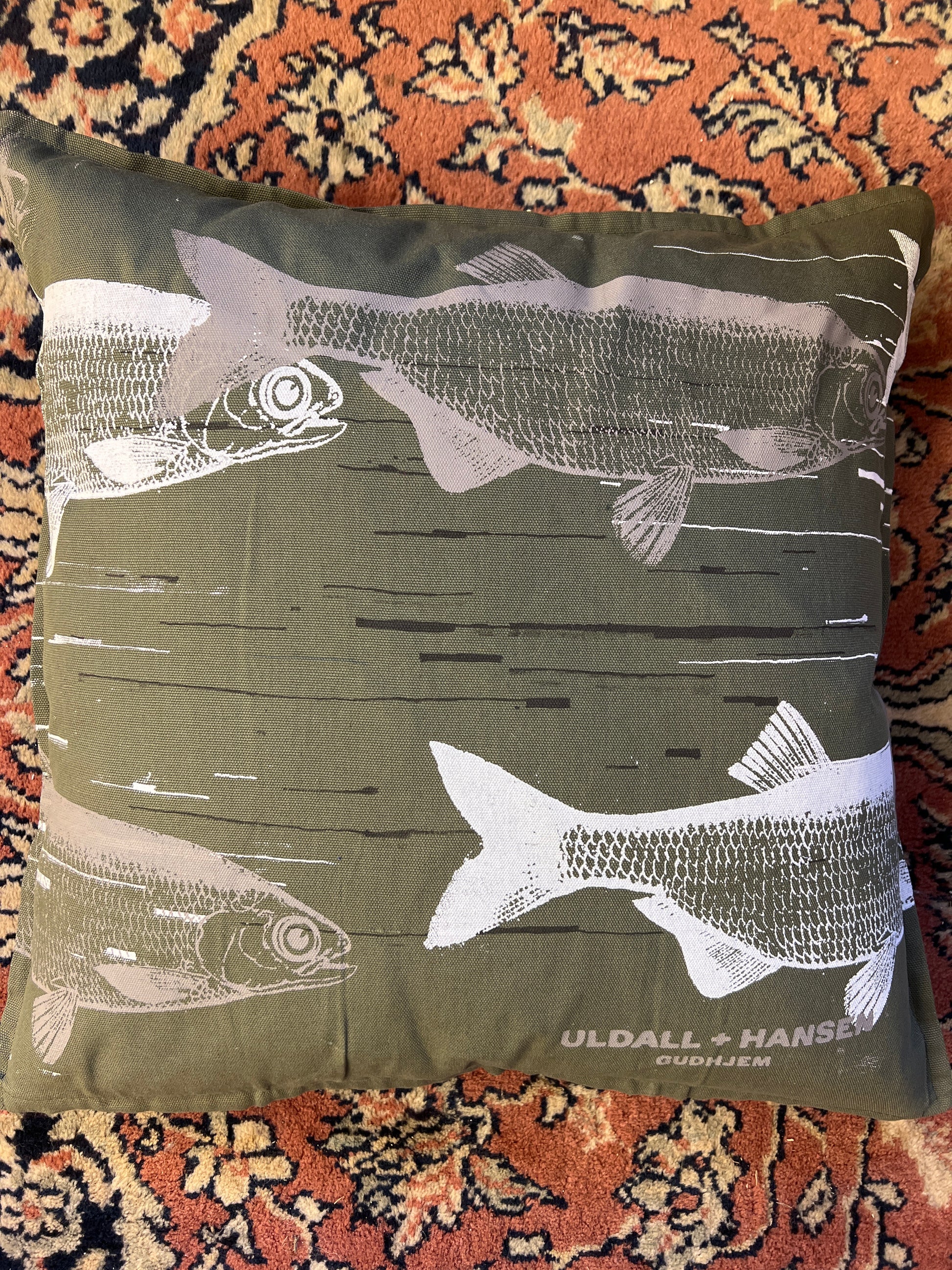Håndtrykte pude på lækker bomuld. Har to forskellige sidder. Mål: 50x50 cm