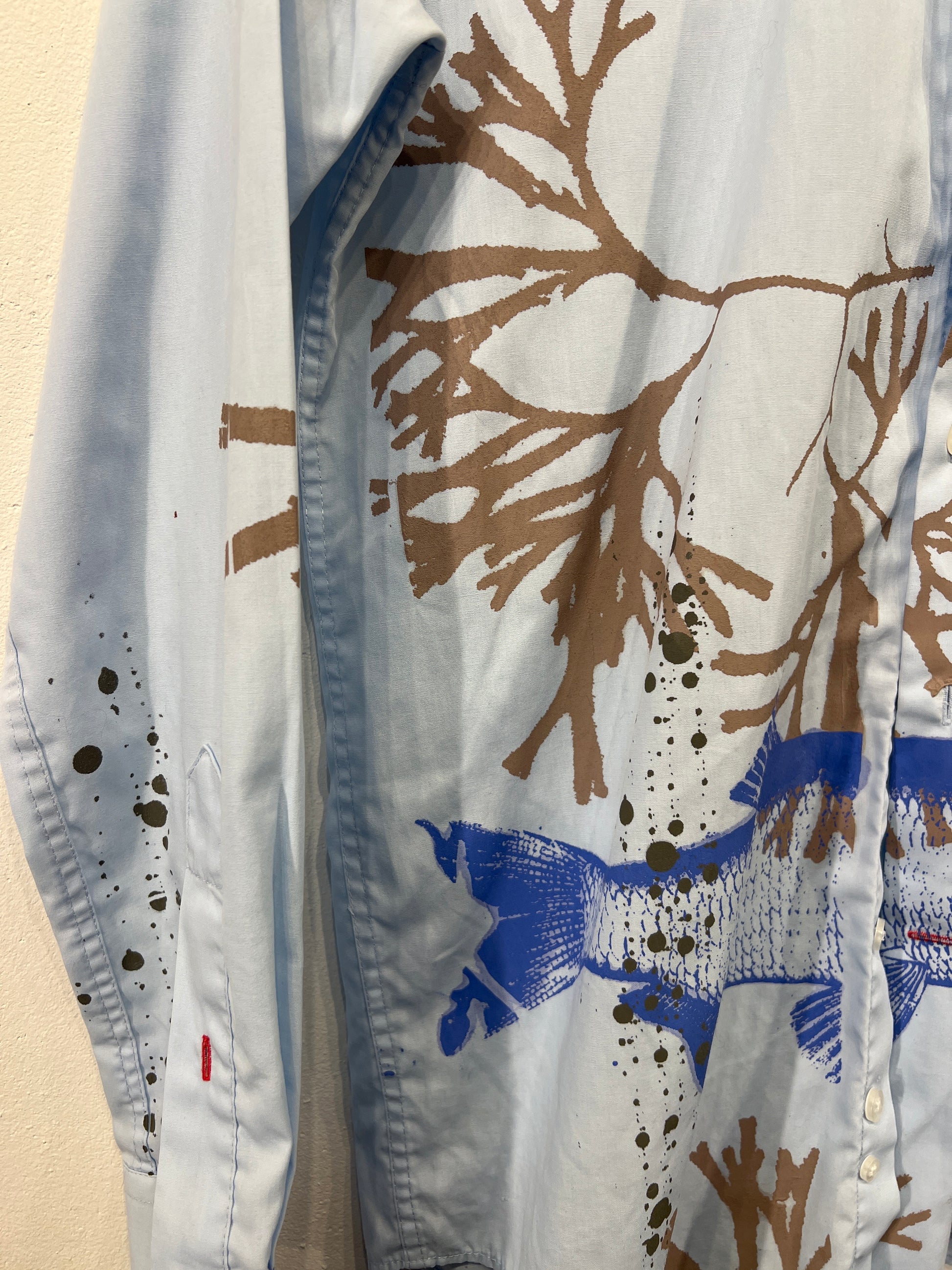 Hos ULDALL+HANSEN giver vi udtjente skjorter nyt liv gennem serigrafisk tryk. Vi arbejder med eksisterende tekstiler og tilfører dem nye udtryk, nye mønstre og nye fortællinger – lag på lag af både historie og håndværk.