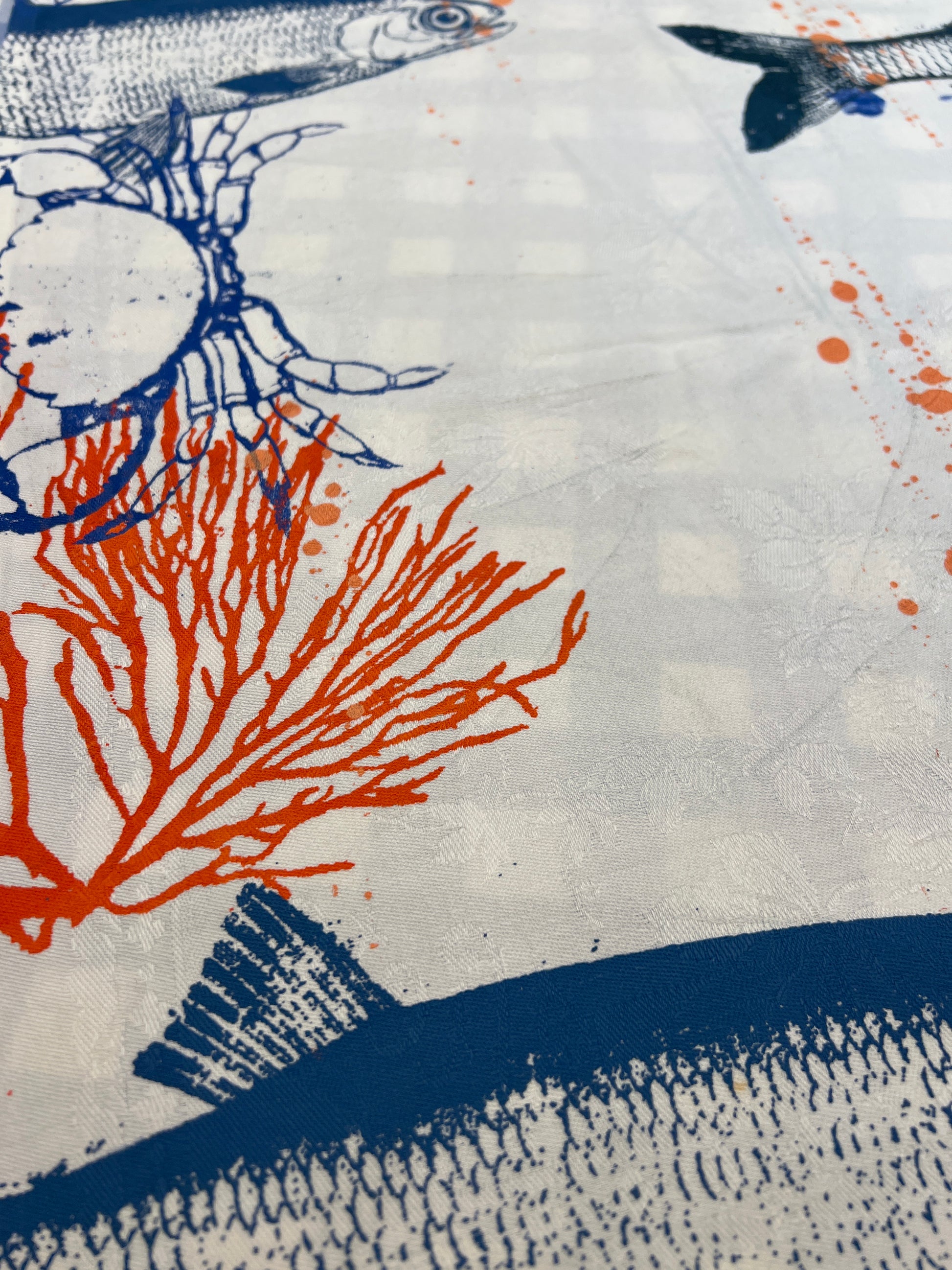 Unikke stofservietter skabt gennem upcycling og håndtryk. Inspireret af havets former og nordiske farver, hvor hvert stykke bærer sit eget særpræg. Et bæredygtigt og æstetisk alternativ til engangsservietter.