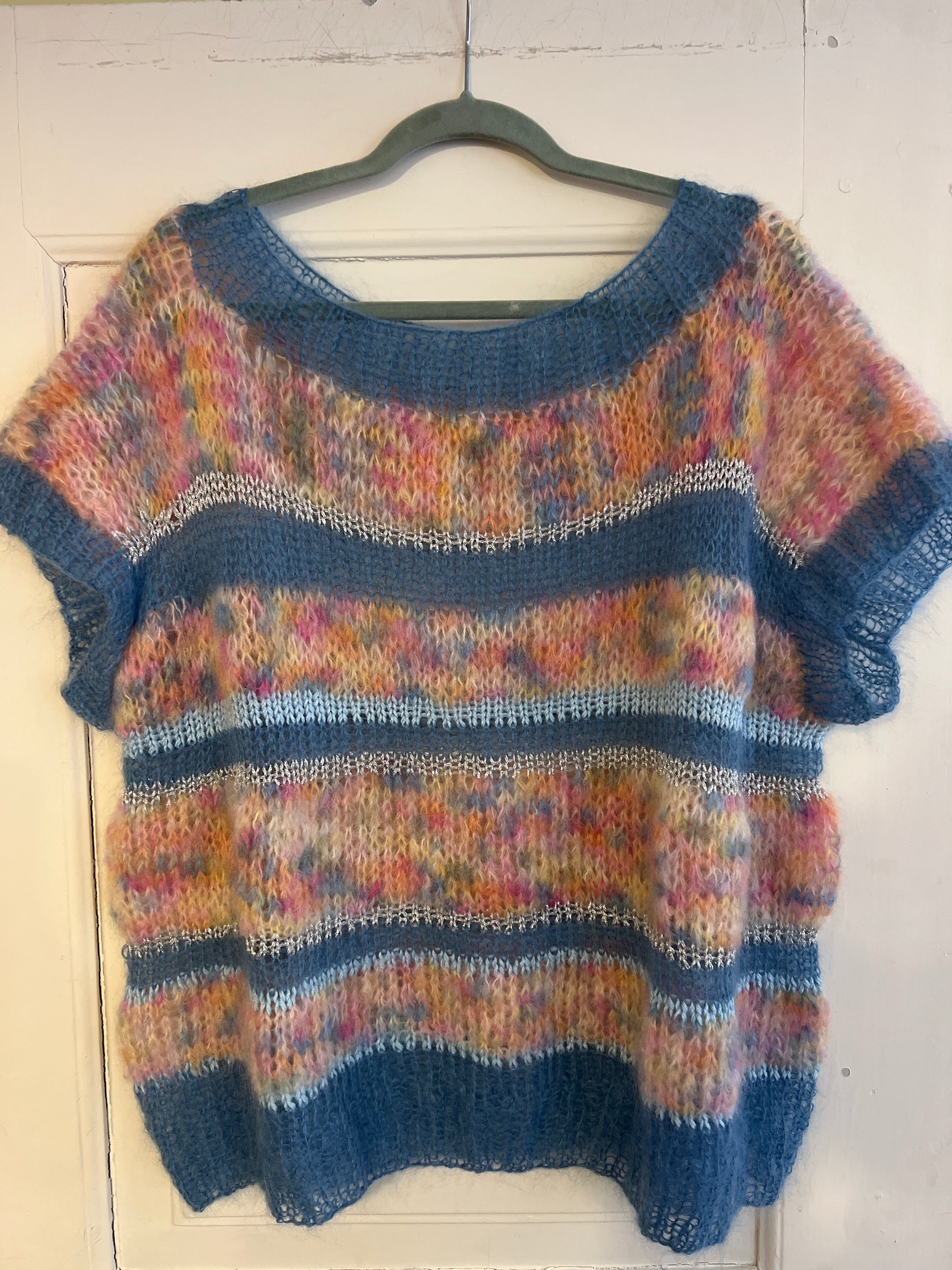 Unikt håndstrikket design, lavet af overskuds uld nøje udvalgt af mig, Jeanette.