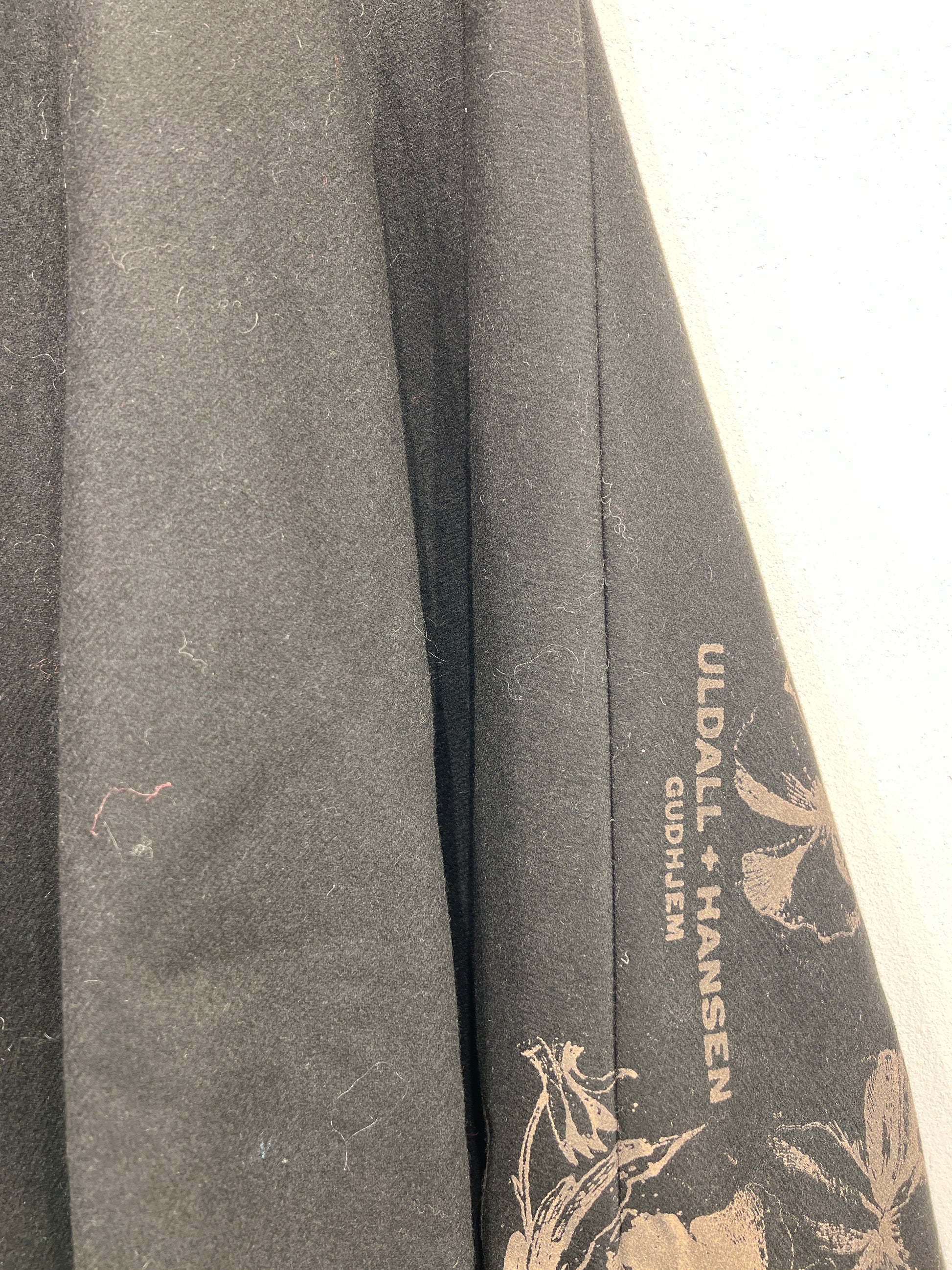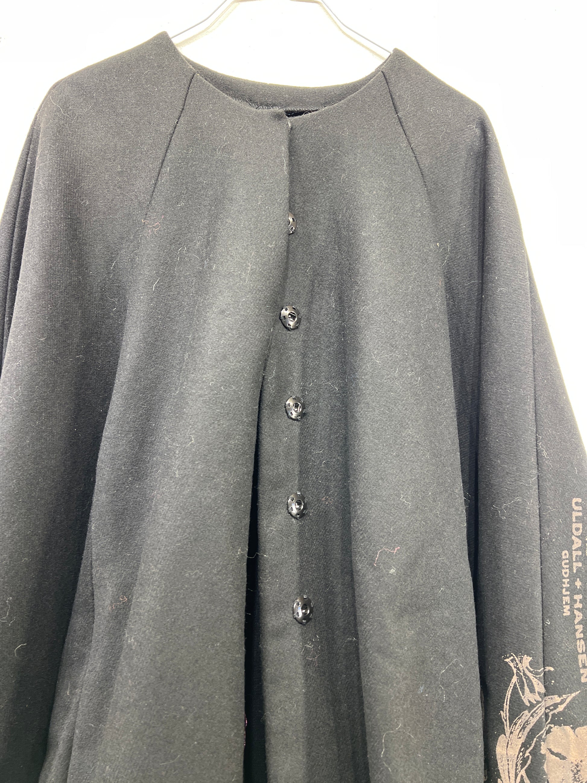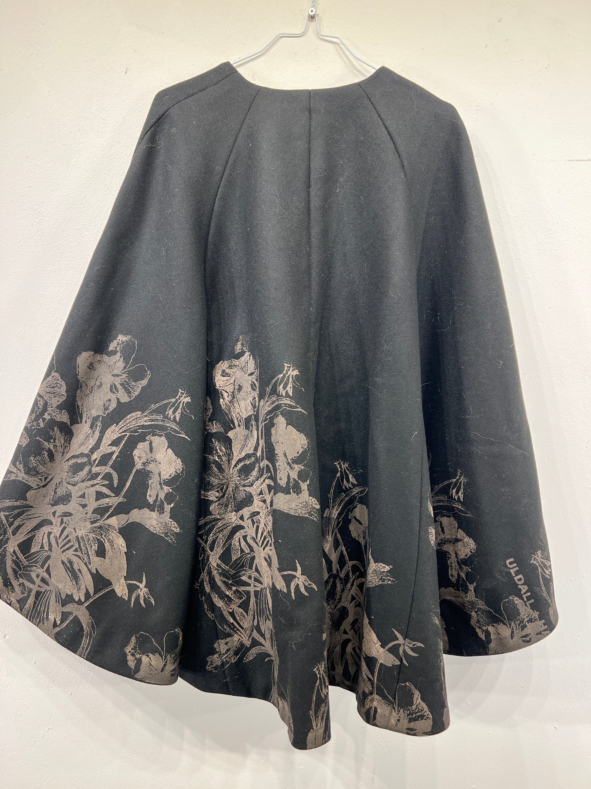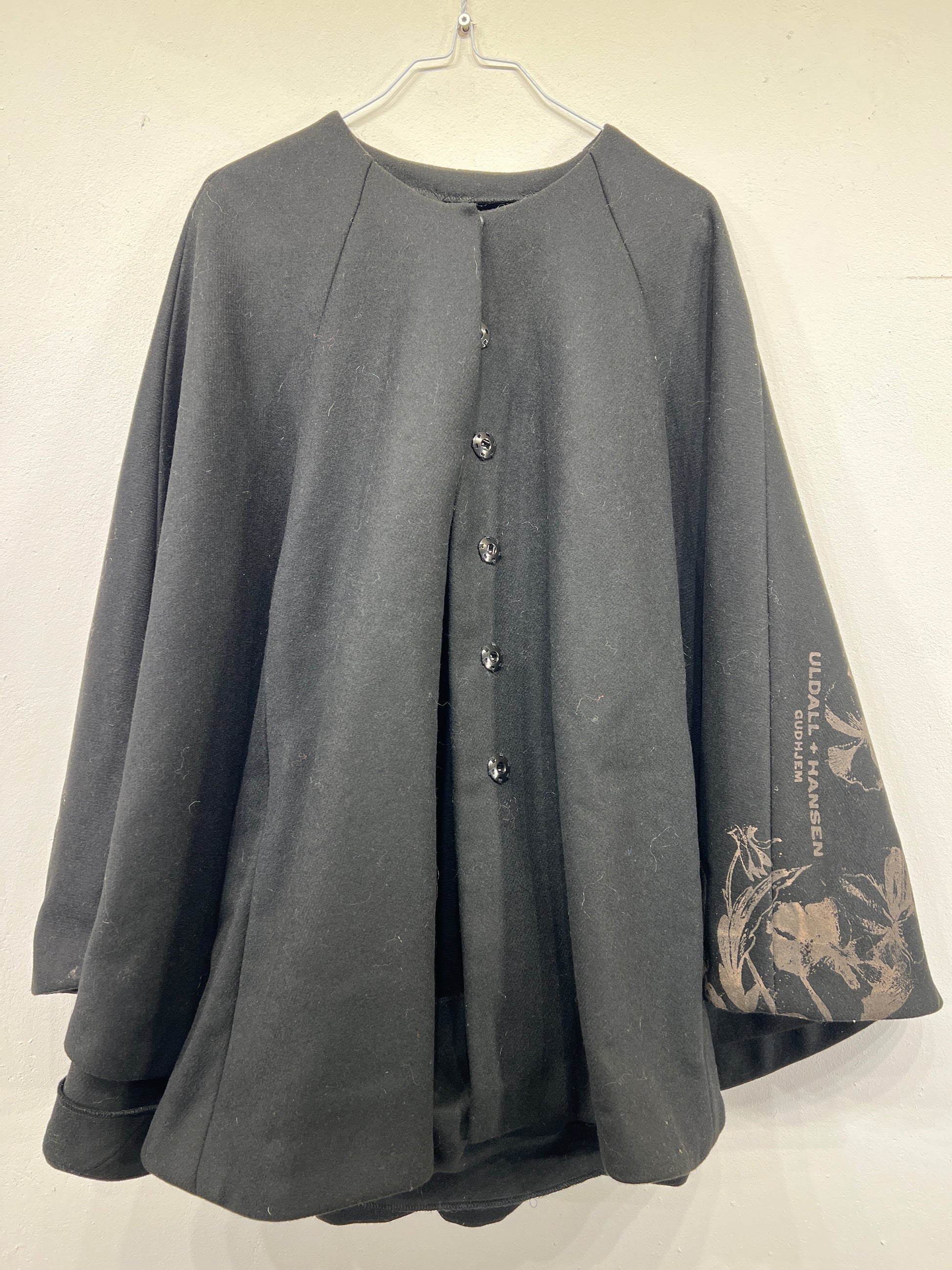 Sort skræddersyet poncho i ren sort uld, med vores serigrafi på