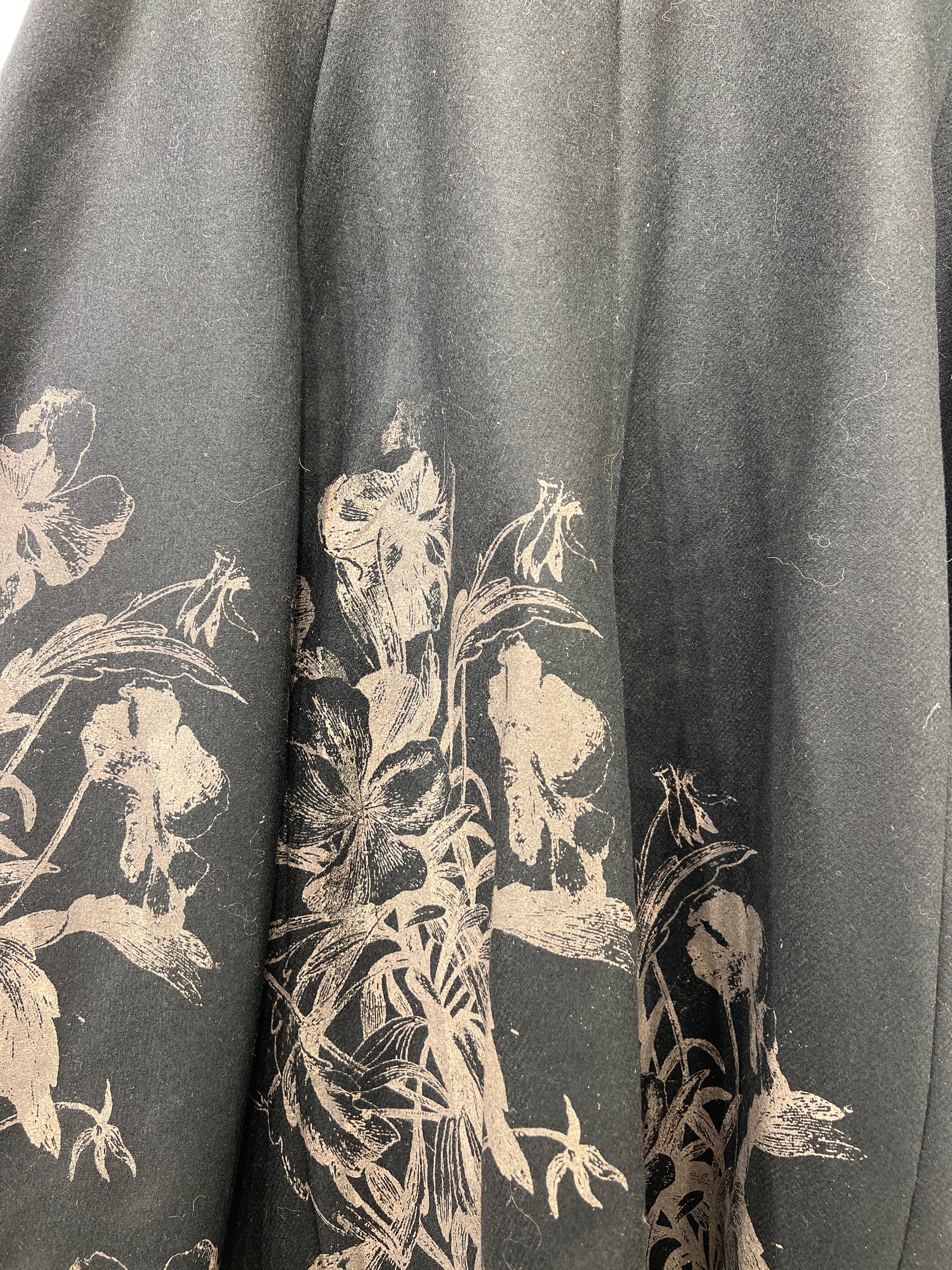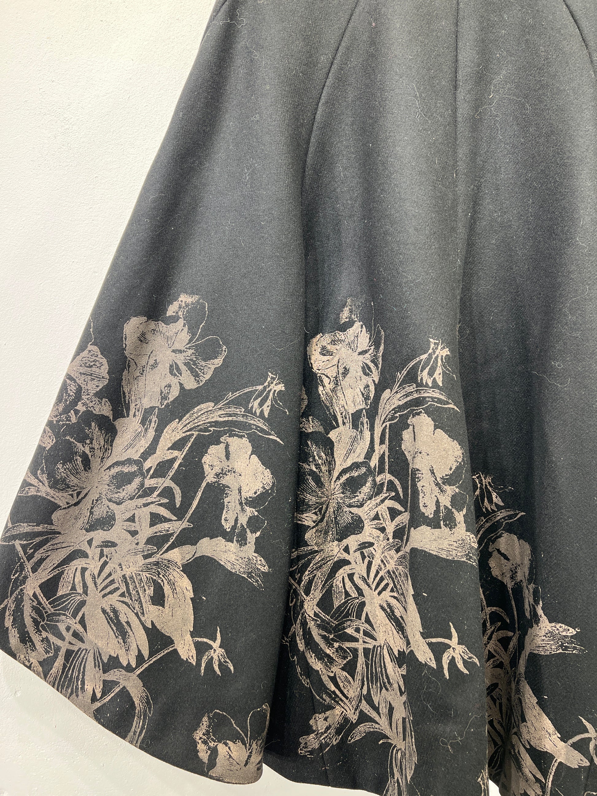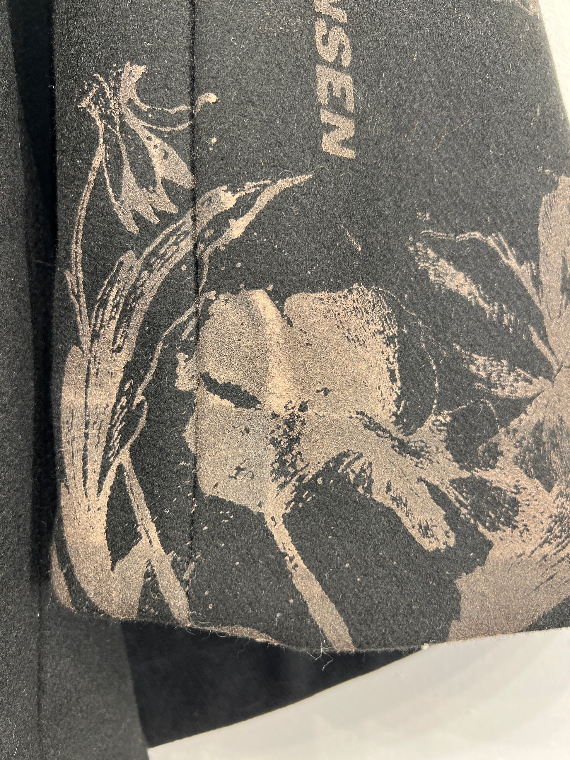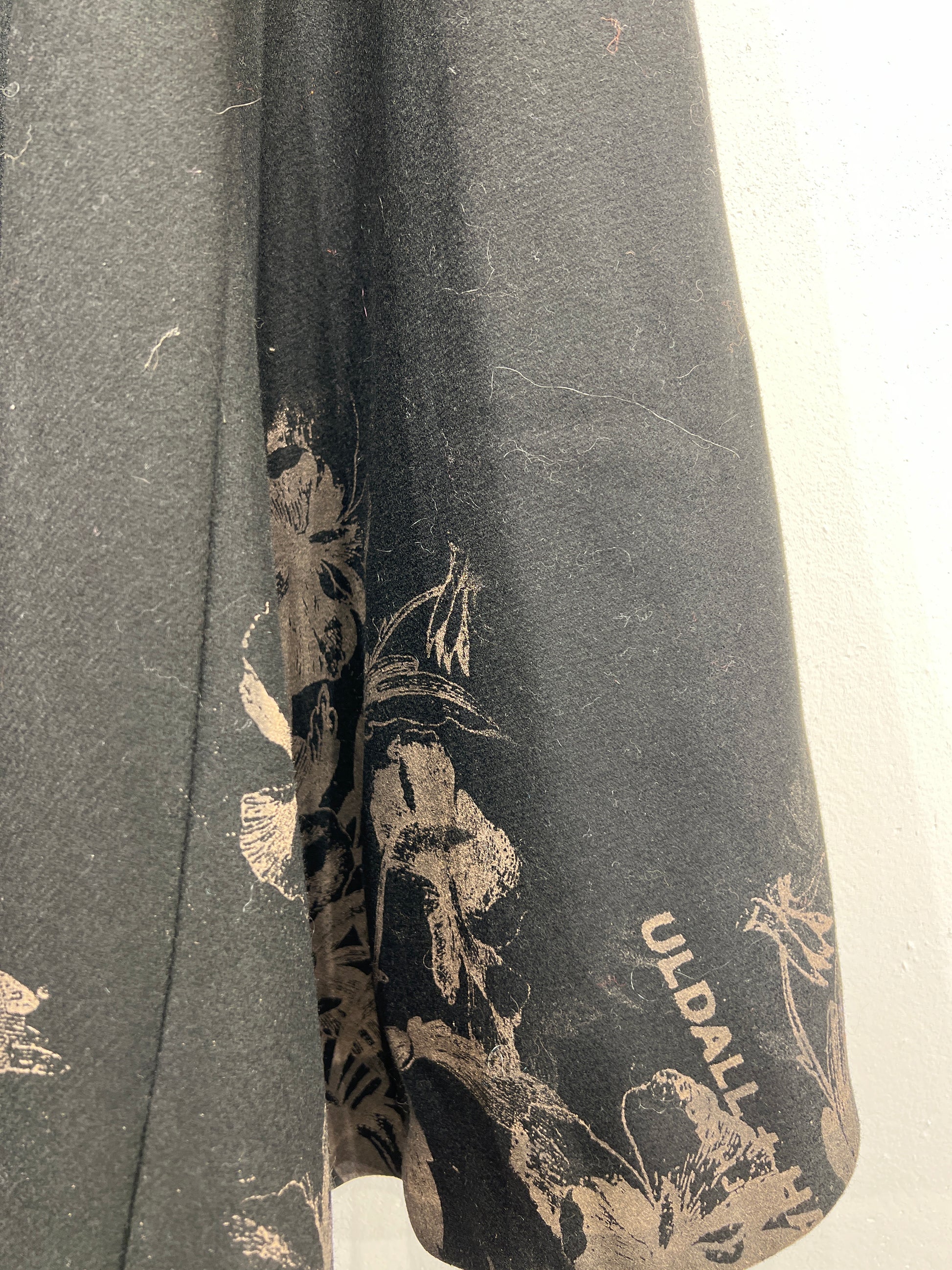 Sort skræddersyet poncho i ren sort uld, med vores serigrafi på